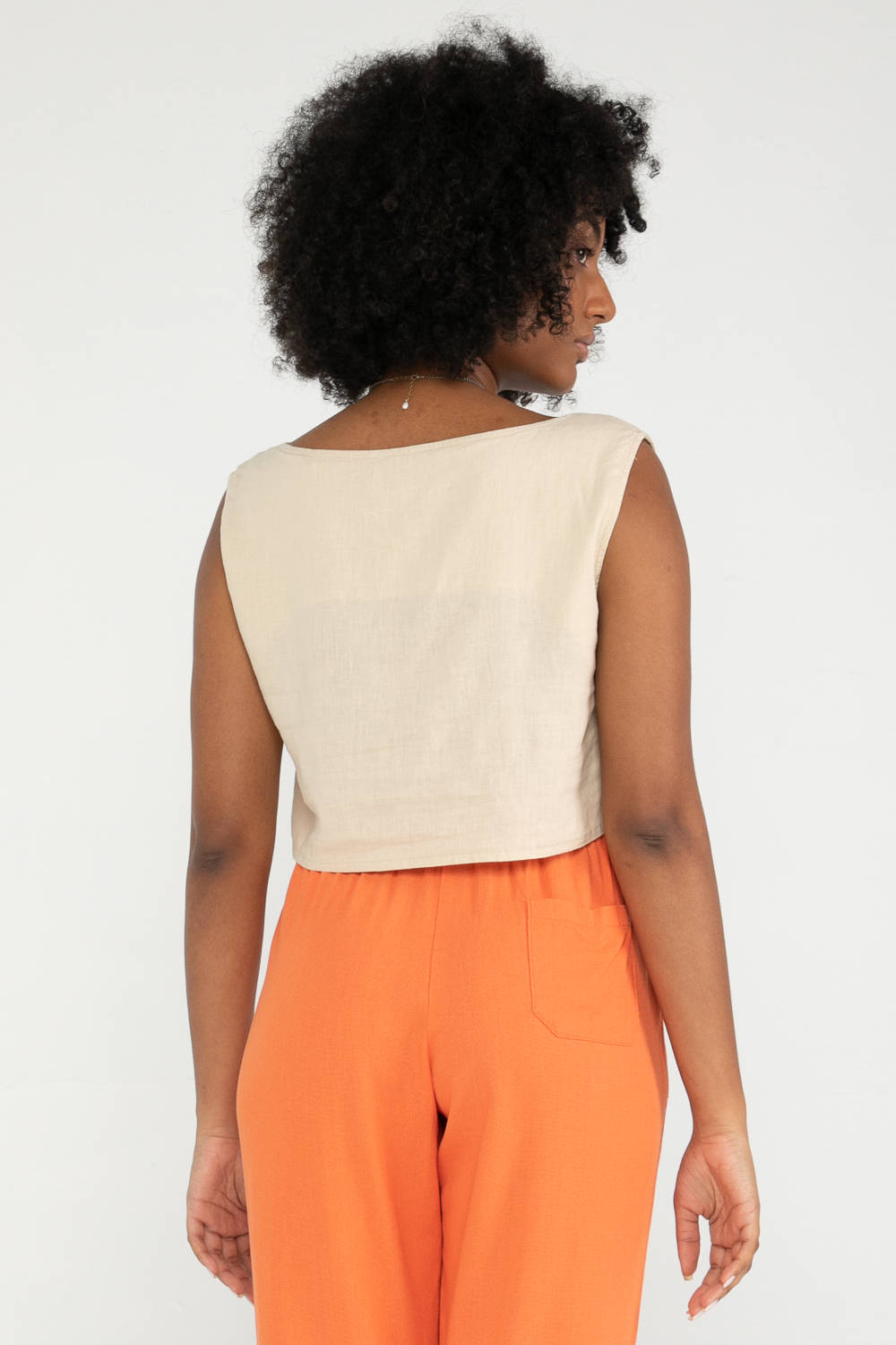 Linho, sempre deixa uma aparência mais refinada. A junção com viscose, deixa a peça mais leve e fluida, com um caimento perfeito. Além de ser uma fibra natural sustentável, de cultivo renovável.