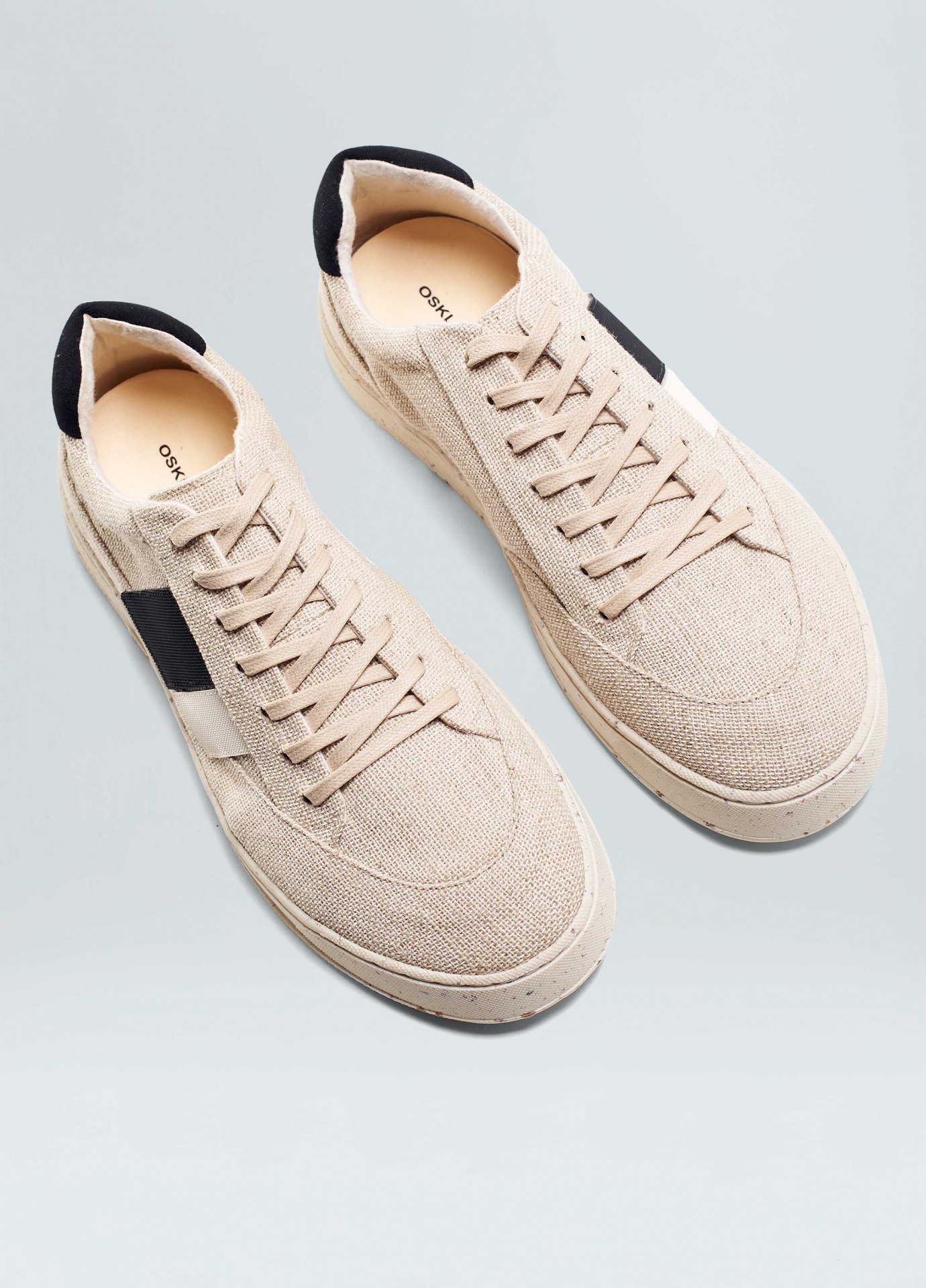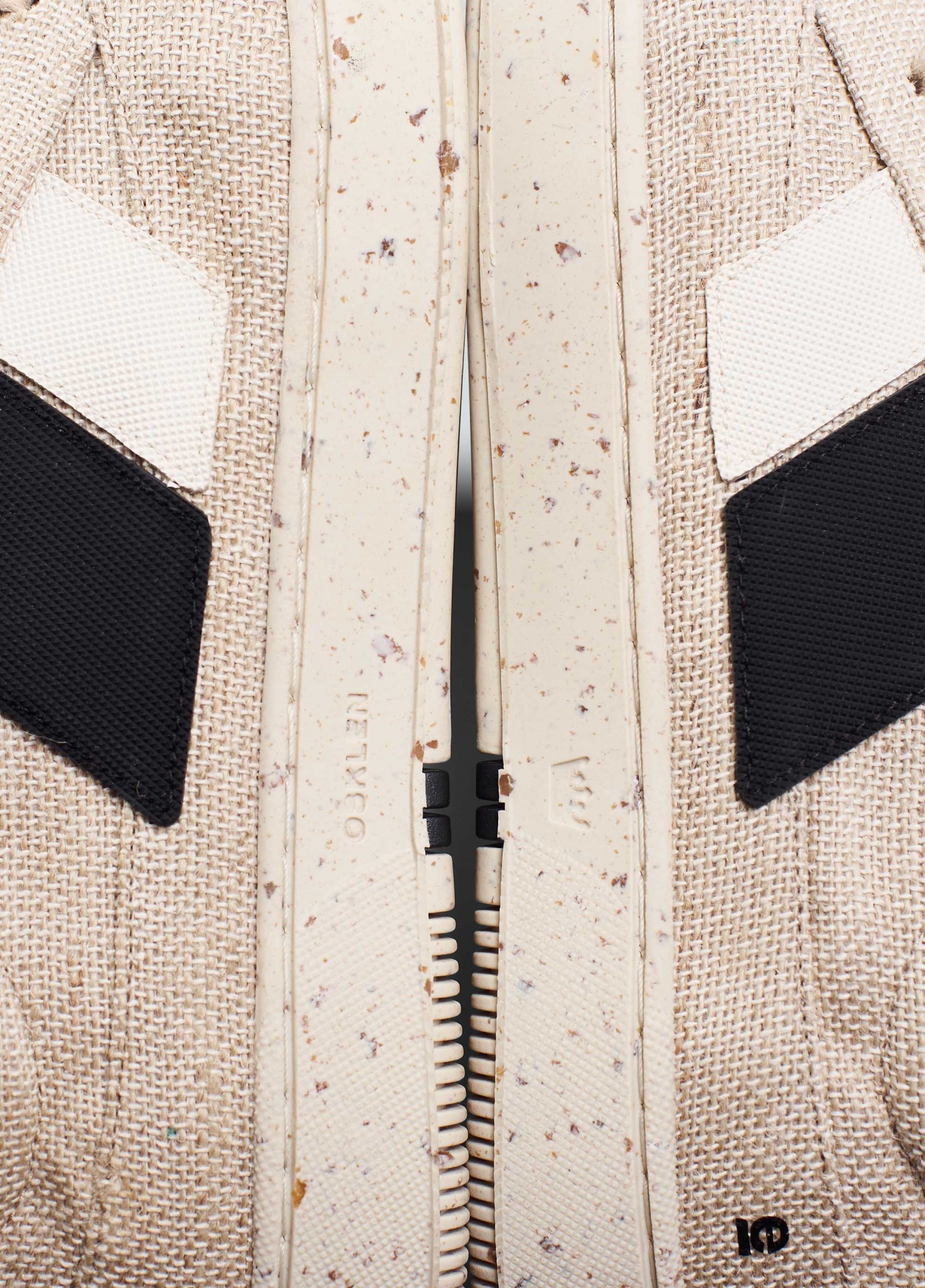 Tênis em juta da amazônia com detalhe traseiro em lona de algodão reciclado. Assinatura lateral em borracha texturizada feita com látex natural da amazônia. Modelo de amarração com cadarço de algodão. Forro em sarja de algodão reciclado e palmilha de eva verde. Solado soho de borracha feita com látex natural da amazônia e resíduos reciclados, design exclusivo osklen. Esse produto carrega as 3 bandeiras de sustentabilidade da marca: regenerate life, respect our people, e re-design waste.