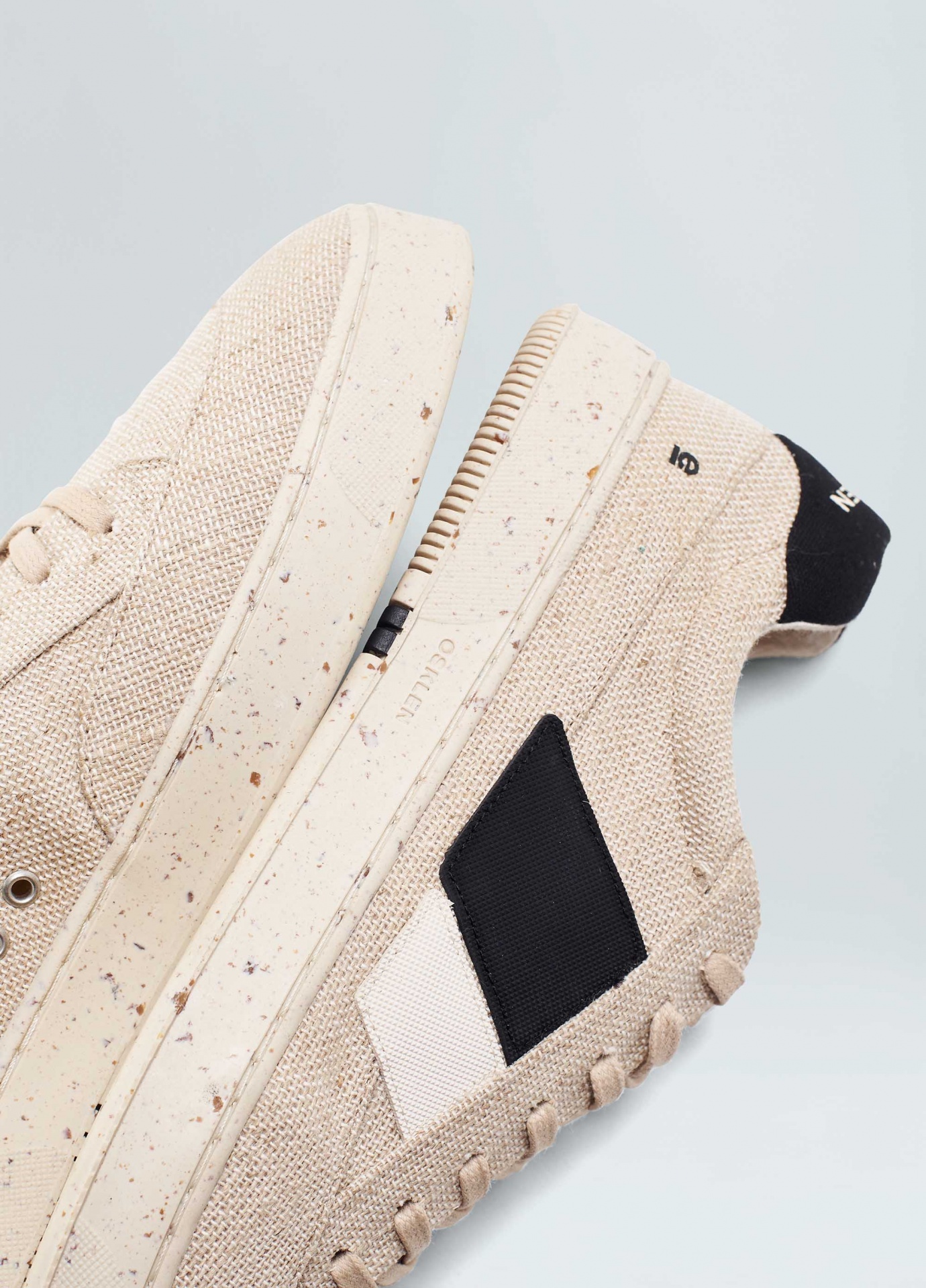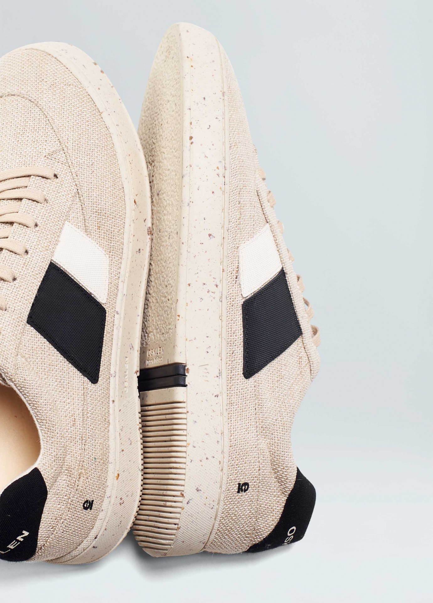 Tênis em juta da amazônia com detalhe traseiro em lona de algodão reciclado. Assinatu