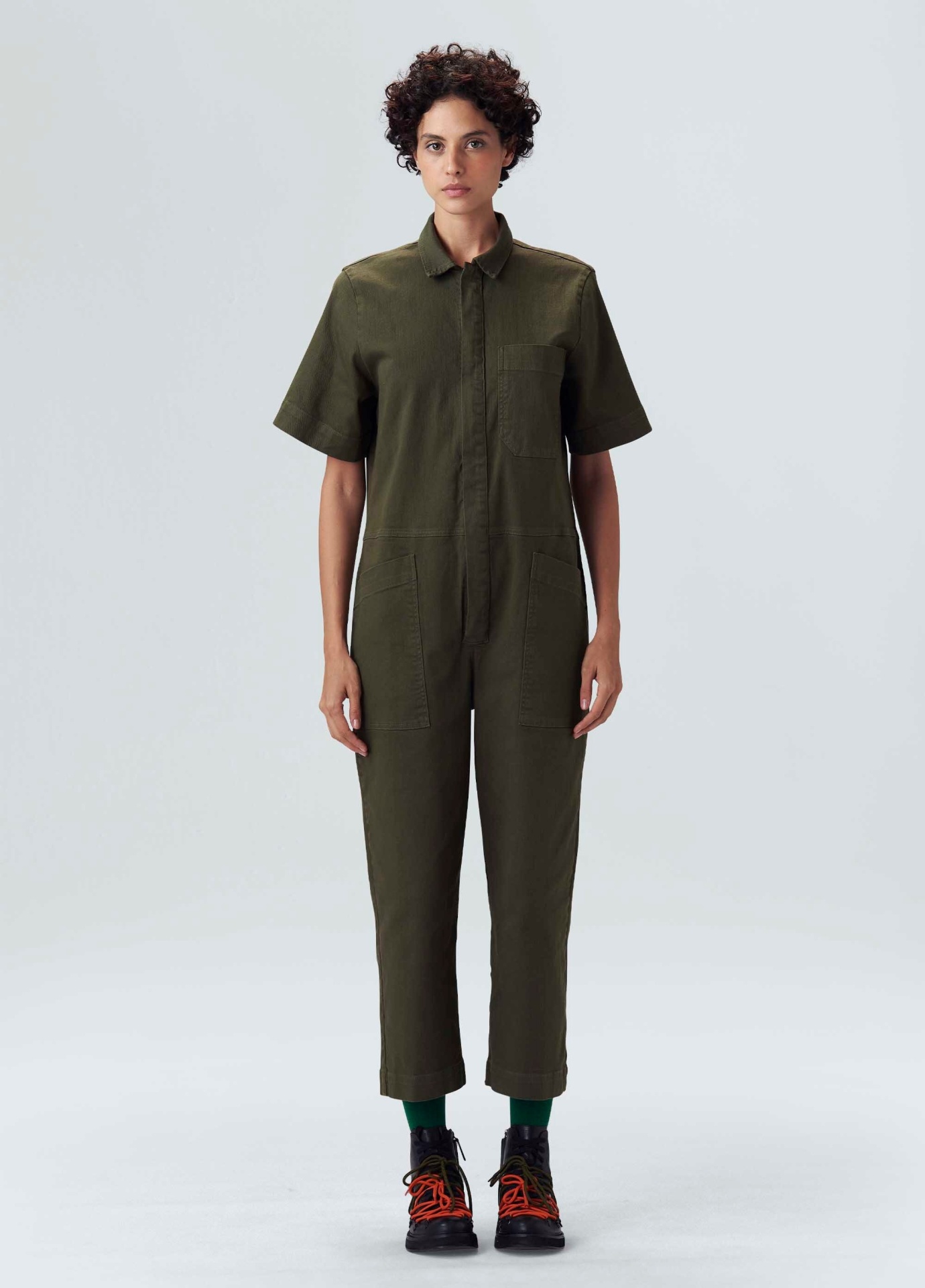 Macacão utilitário manga curta color. Modelo over Essa peça foi produzida com algodão nacional certificado seguindo critérios minuciosos de redução dos impactos ambientais e sociais durante seu cultivo. Seu processo produtivo utiliza energia renovável, reduz o consumo de água e fomenta as cadeias produtivas brasileiras. Bandeira Regenerate Life.