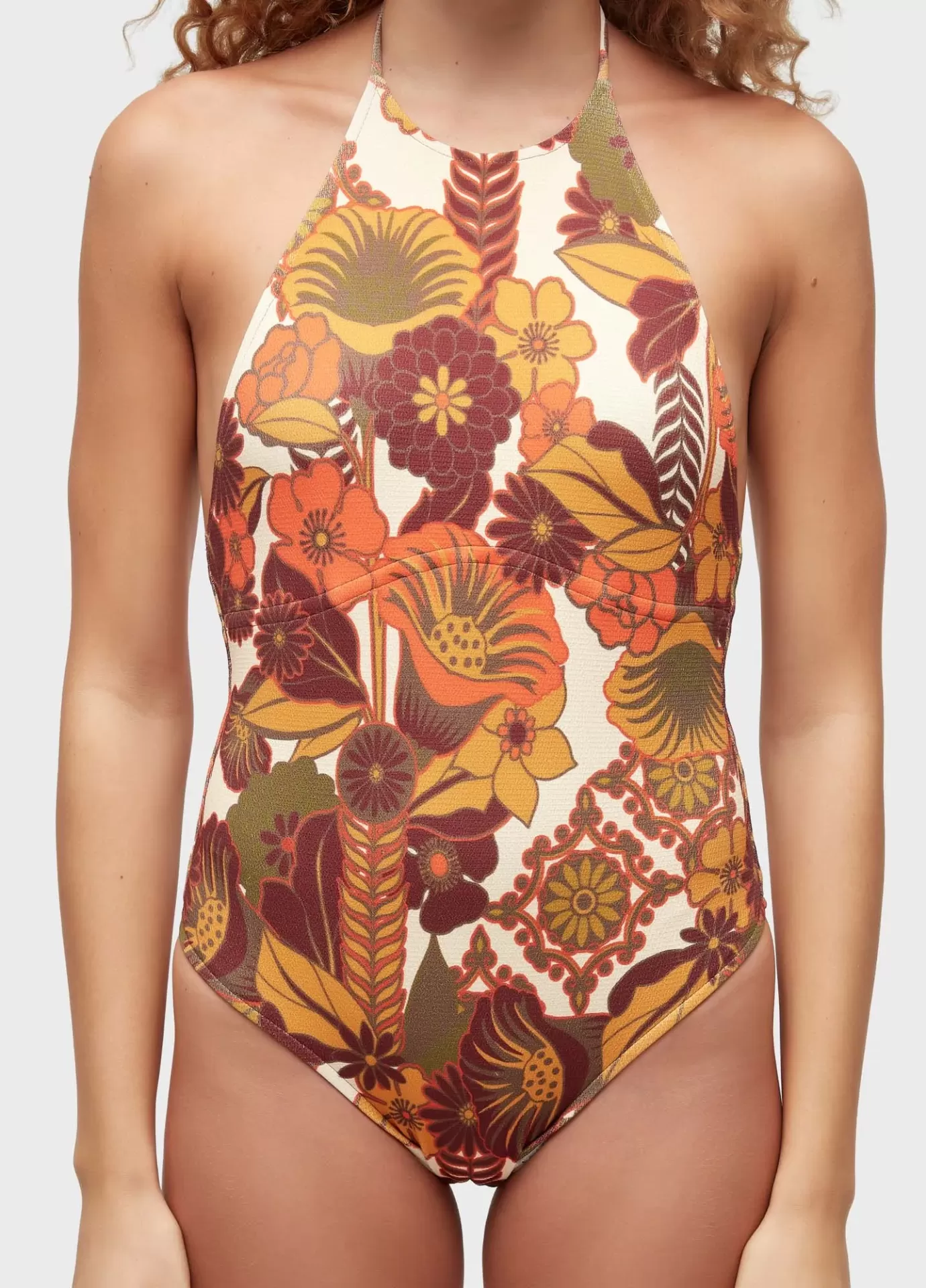 Maiô frente única desenvolvido na estampa Garden Party. Estampa exclusiva da Osklen.