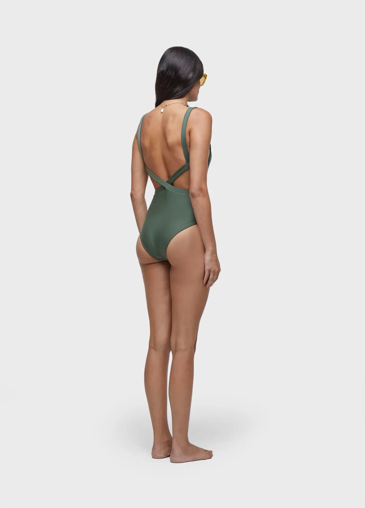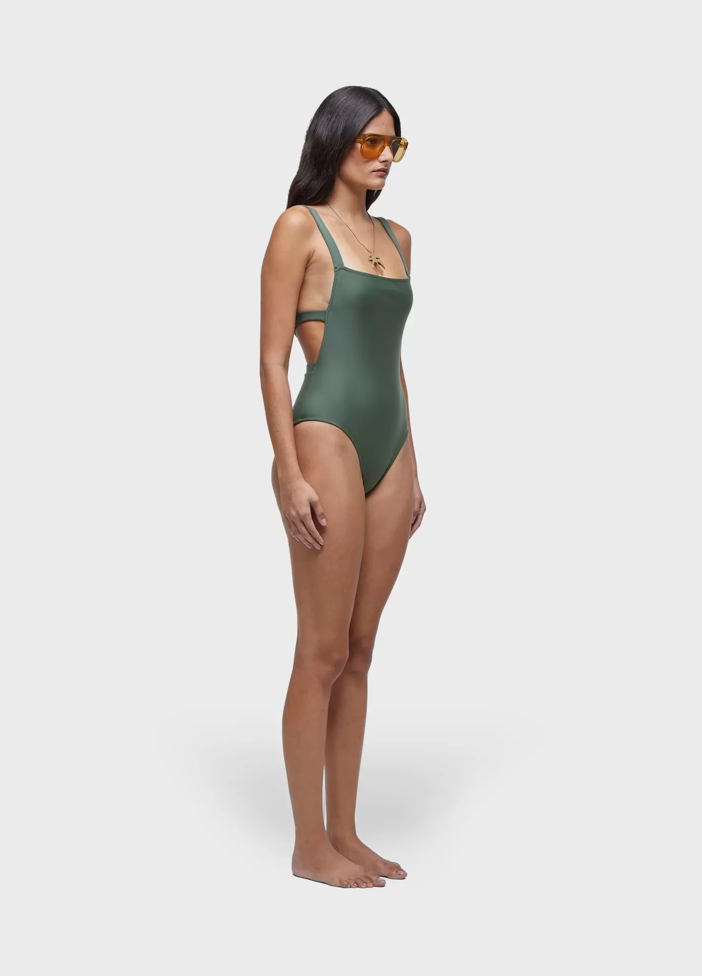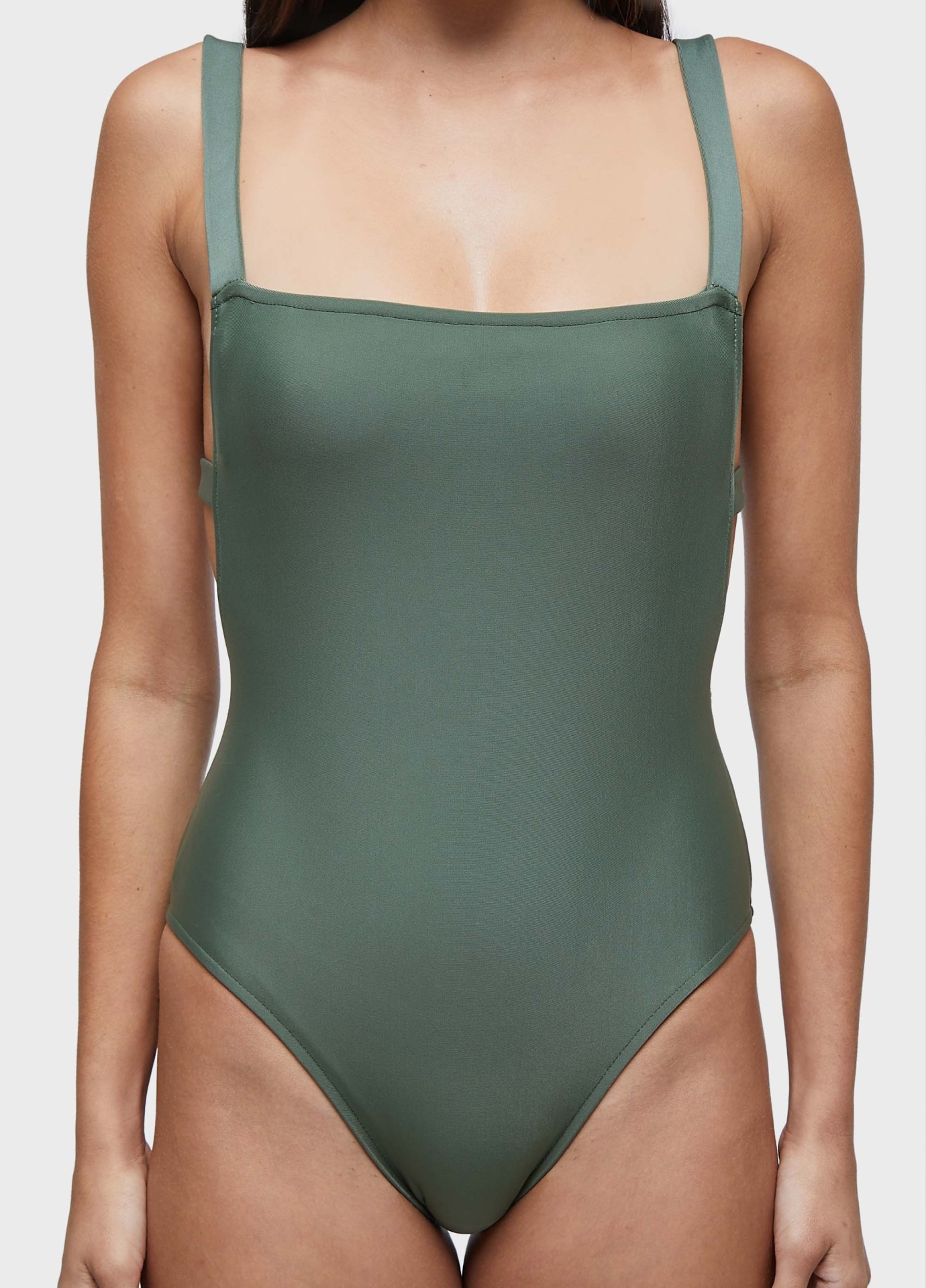 Maiô com decote reto e costas cruzadas, feitas com elástico embutido. alças regulavéi