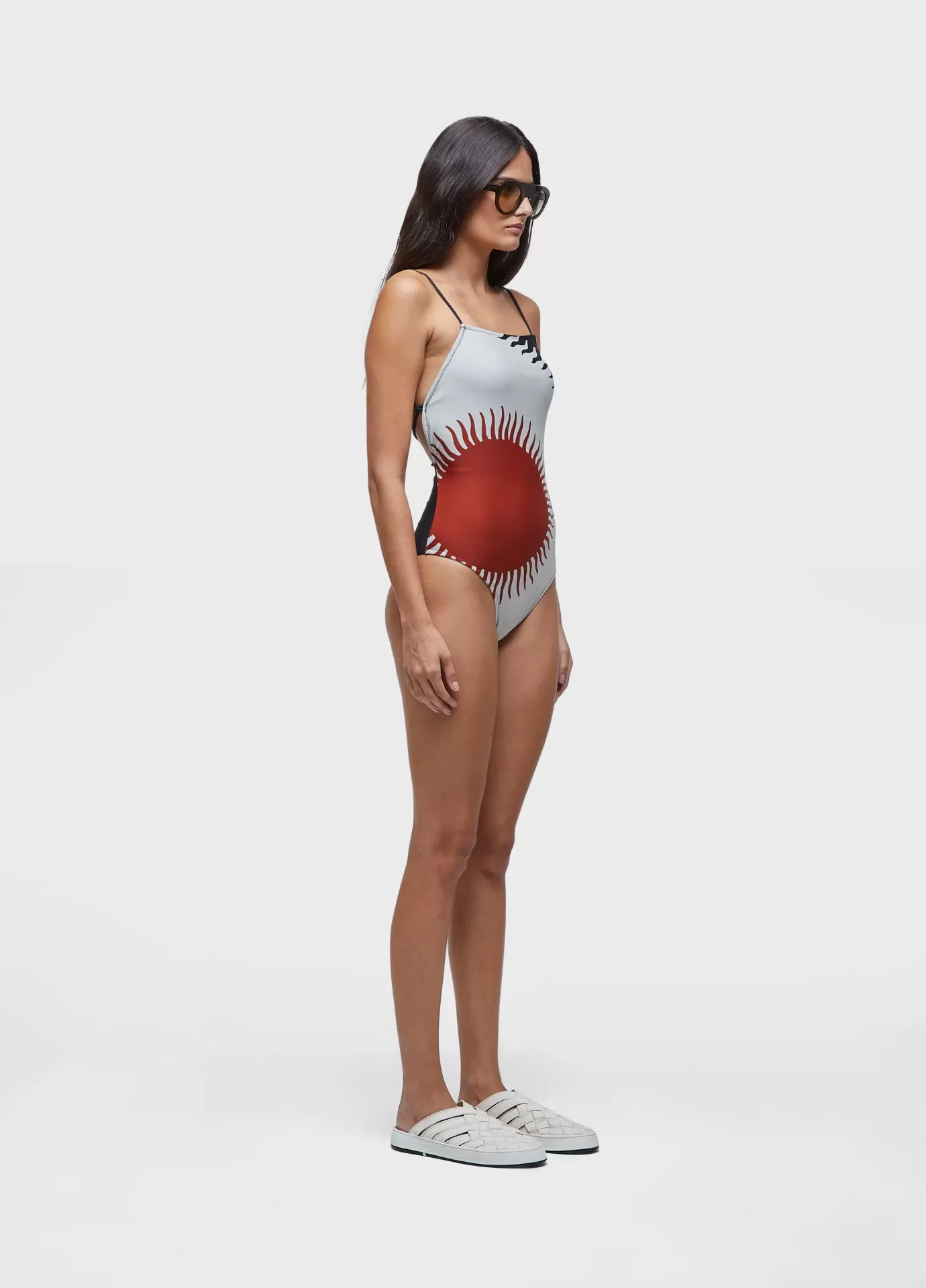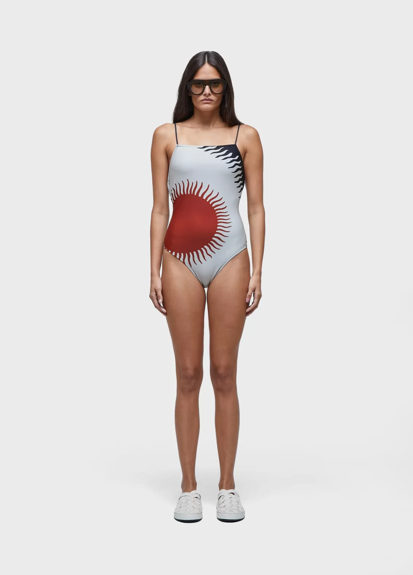 Maiô com decote reto e alças de rolotê cruzadas nas costas. estampa localizada "sol duo", exclusiva da osklen. desenvolvida em malha elástica com proteção uv50+. forro em malha elástica leve.