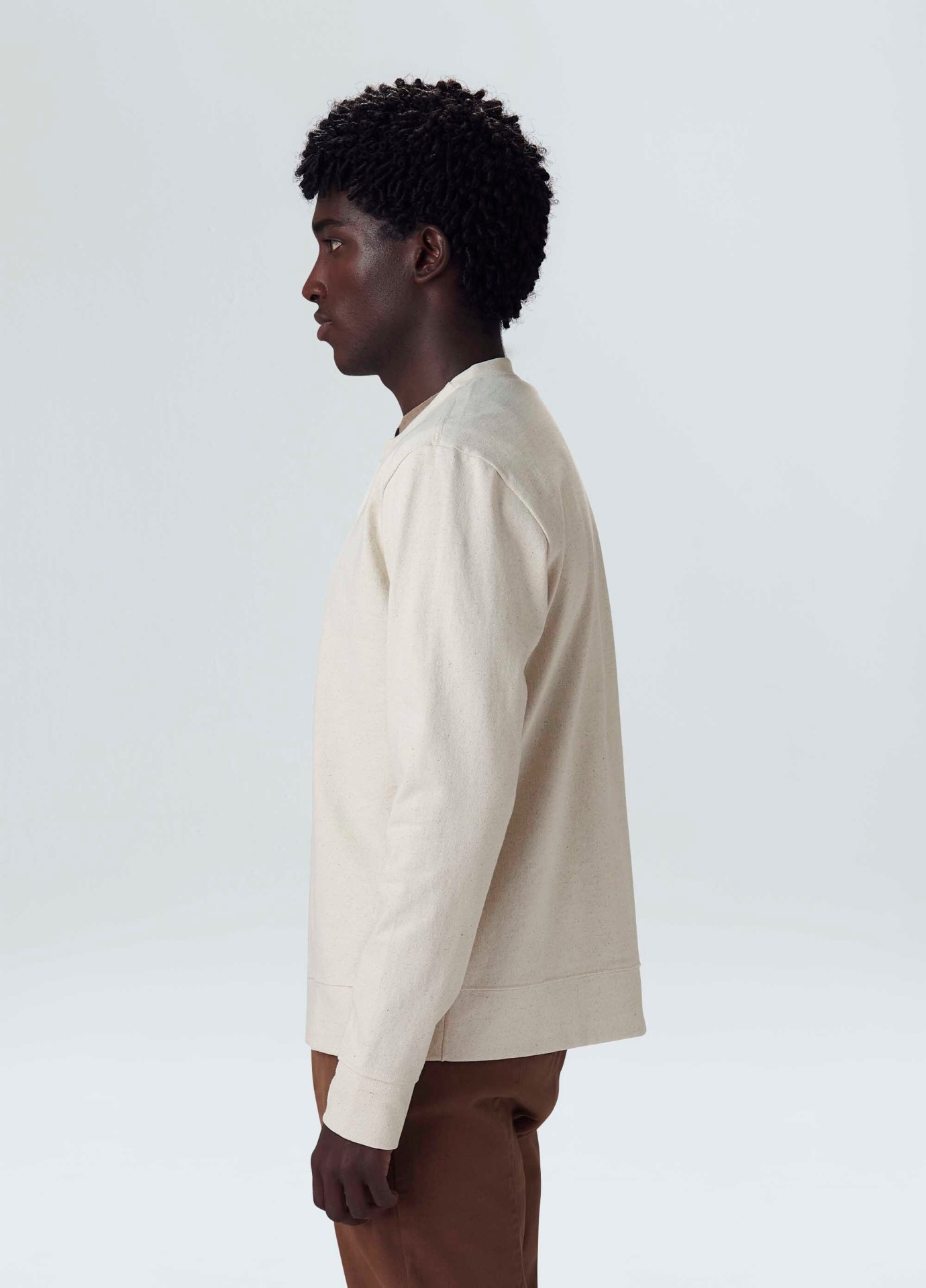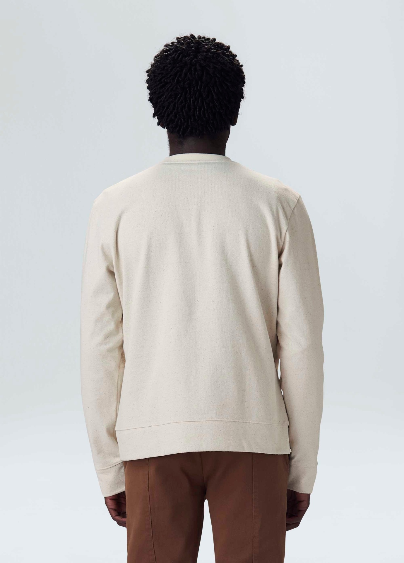 Overcoat masculina, E Fabric. Peça produzida com algodão reciclado, matéria-prima criada a partir do reaproveitamento de resíduo têxteis, processo que reduz os resíduos têxteis. Peça da linha E Basics. Bandeira: Regenerate Life.