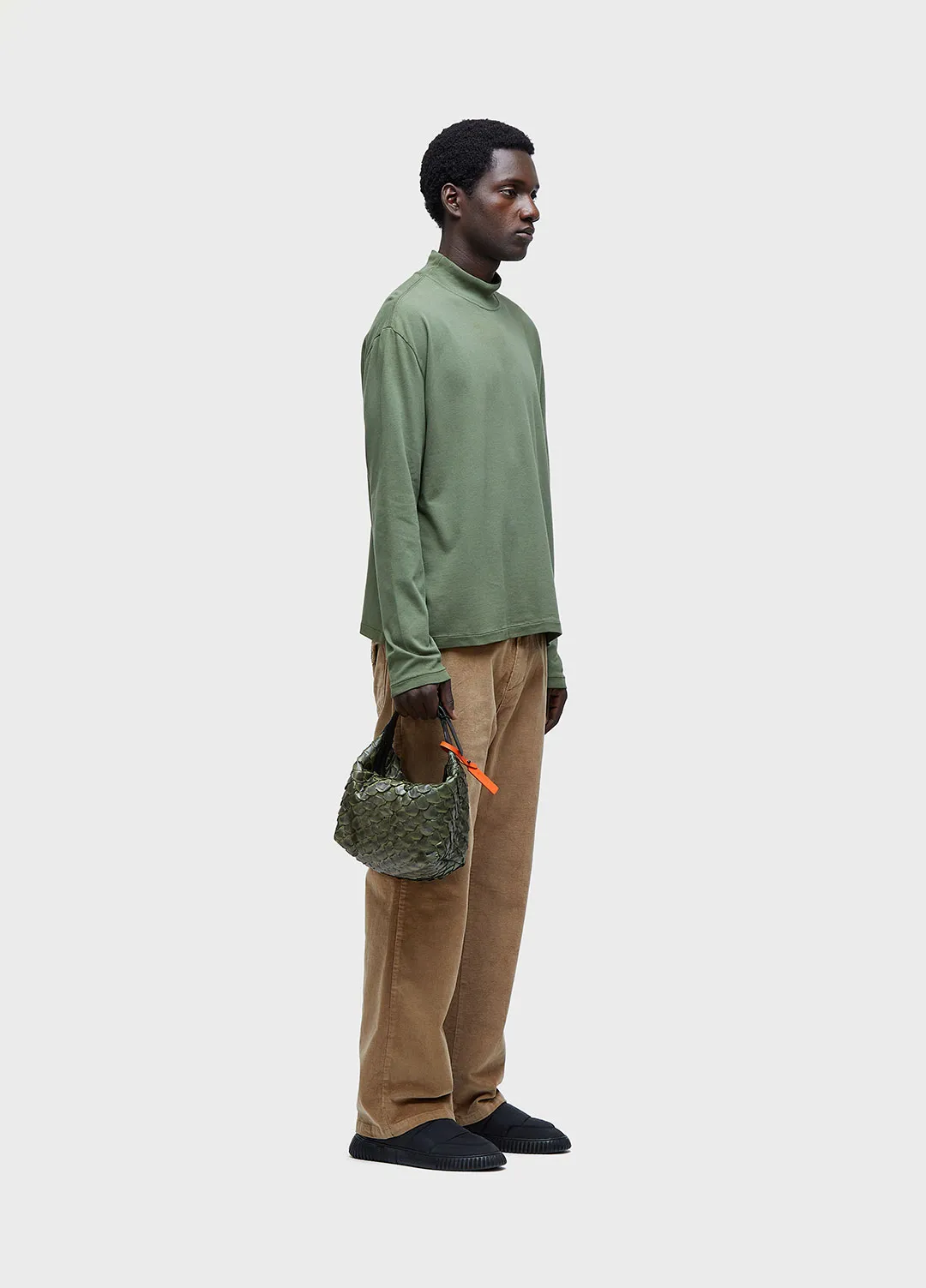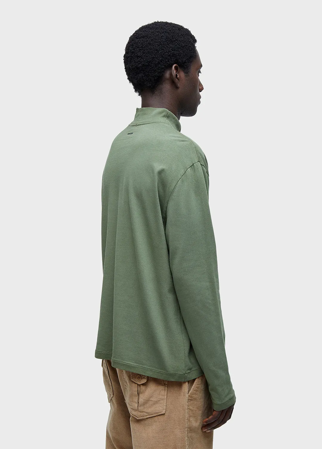 T-shirt masculina manga longa gola alta, modelagem Over, em malha 100% algodão certificado. A produção do algodão nacional certificado contribui para redução dos impactos ambientais, utiliza energia renovável, reduz o consumo de água e fomenta o aprimoramento social e ambiental das cadeias produtivas brasileiras. Além disso, a peça possui amaciamento Organic Mint Wash, um processo natural formulado à base do óleo essencial da menta orgânica, cultivada em pequenas hortas que fazem parte de um projeto social que promove a recuperação e ressocialização de dependentes químicos. Bandeira: Respect Our People.