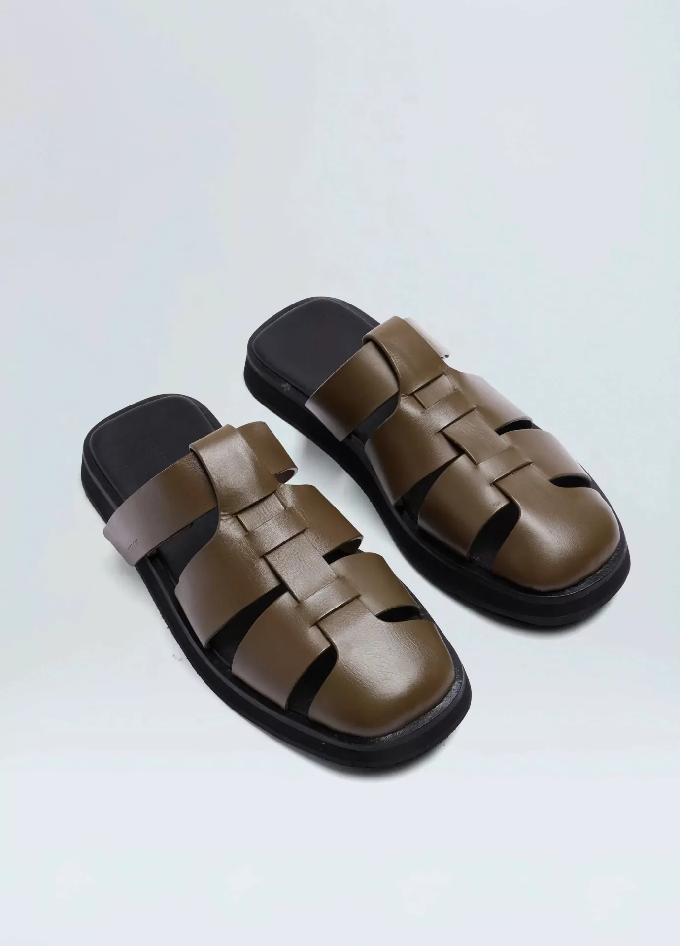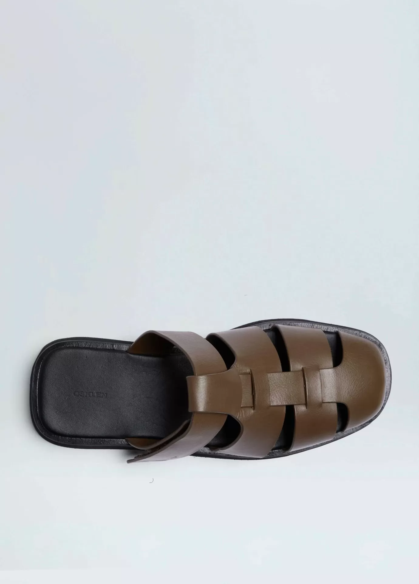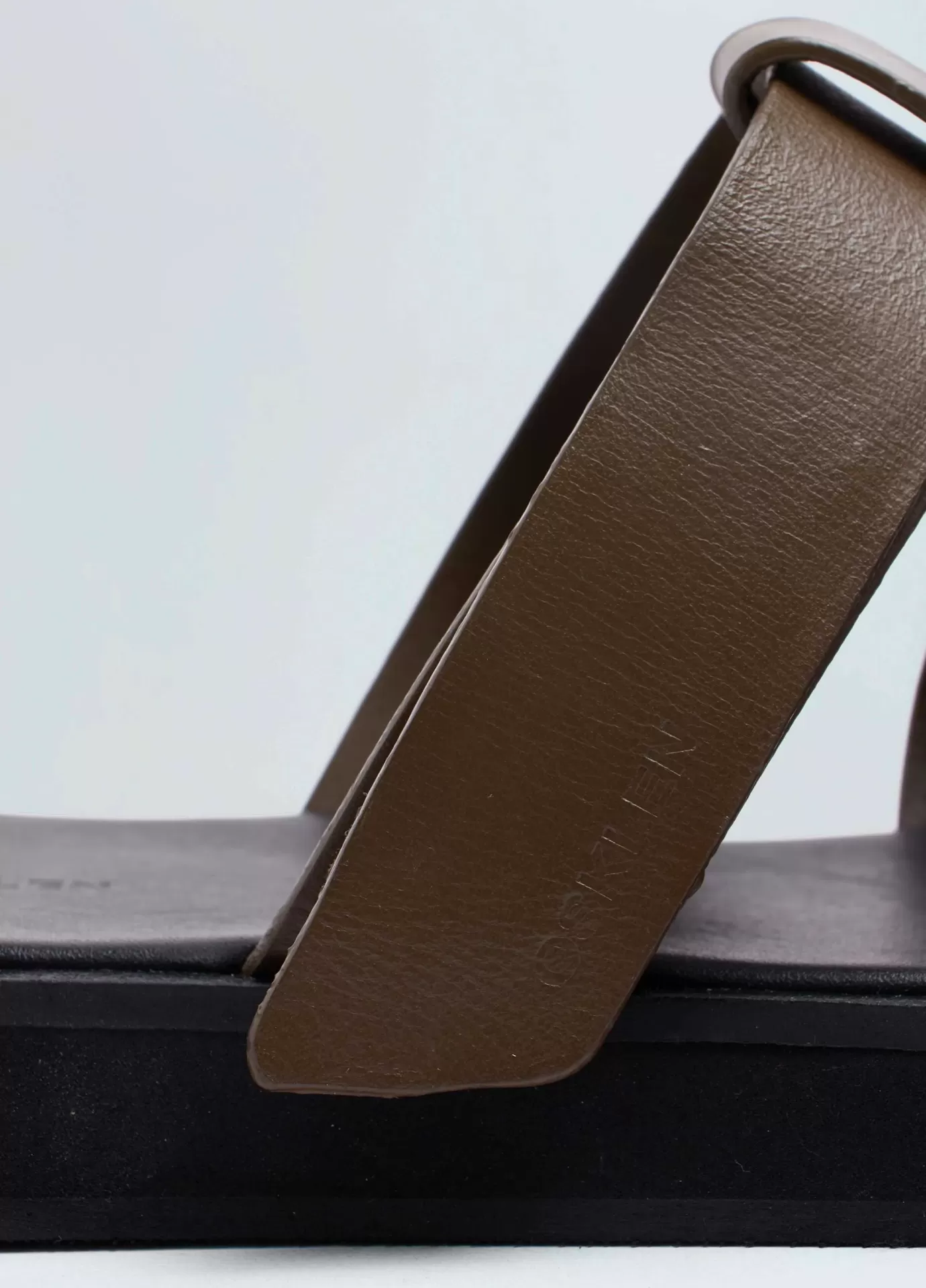 Mule em couro bovino. fechamento regulavel com tira em velcro. solado de eva e borracha reciclada, produzida com no mínimo 10% de material reciclado e design exclusivo osklen. produto re-design waste.
