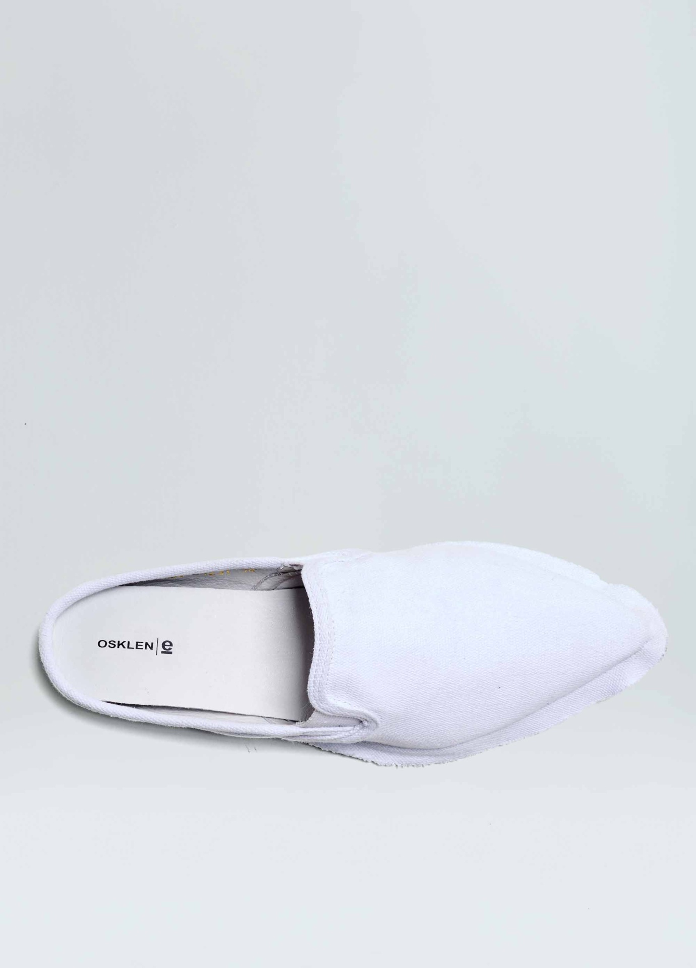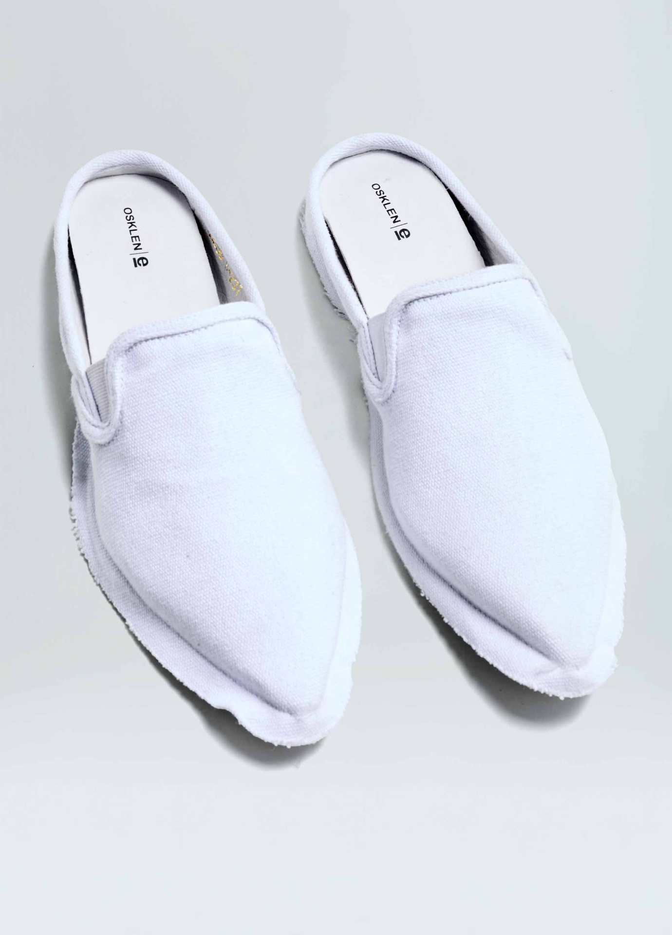 Tênis mule em lona de algodão. Modelo slip on com elásticos para facilitar o calce. Forro e palmilha em couro bovino. Solado de borracha costurado ao cabedal com design exclusivo Osklen, produzido com no mínimo 10% de material reciclado. Produto Re-Design Waste.