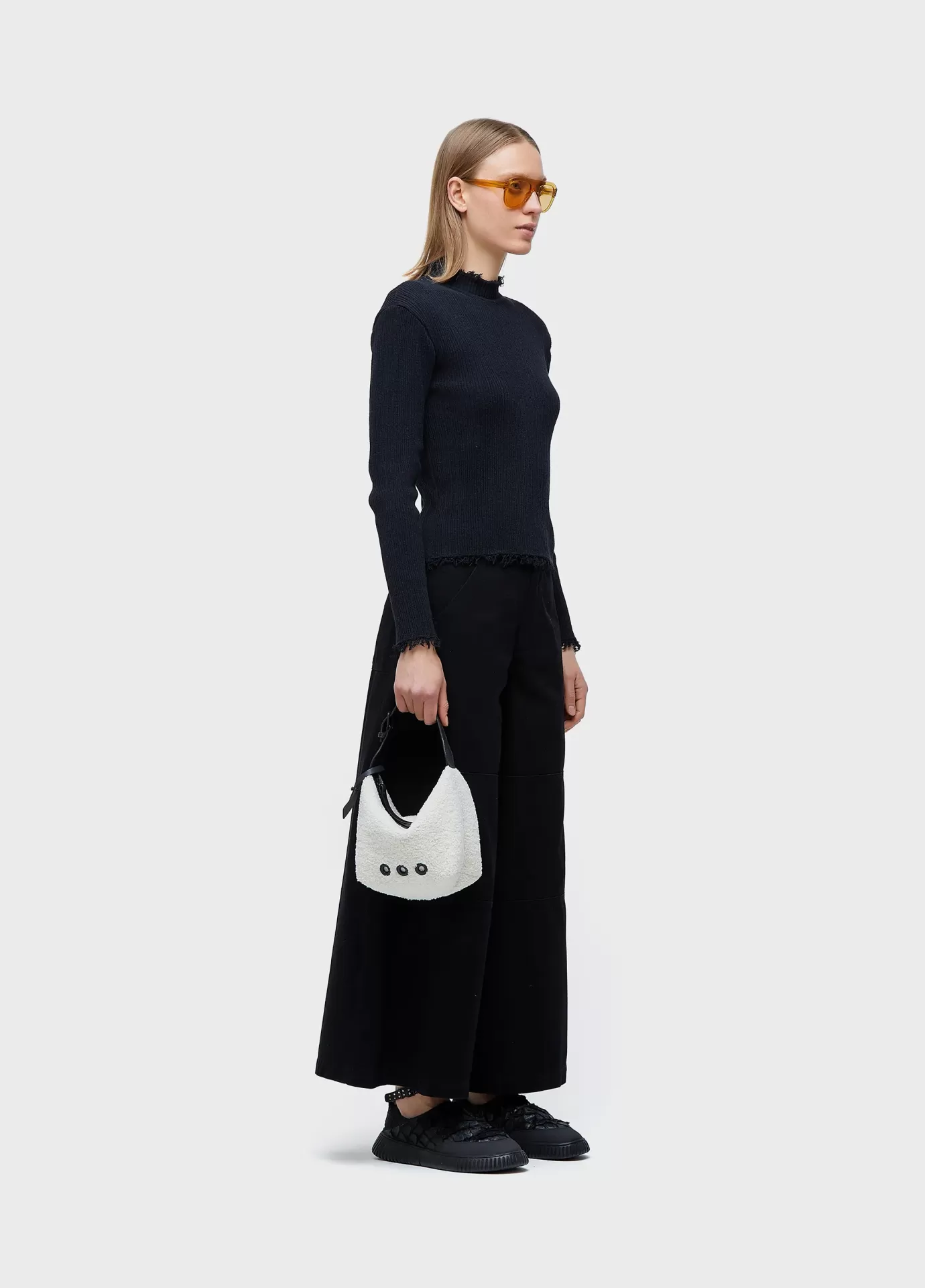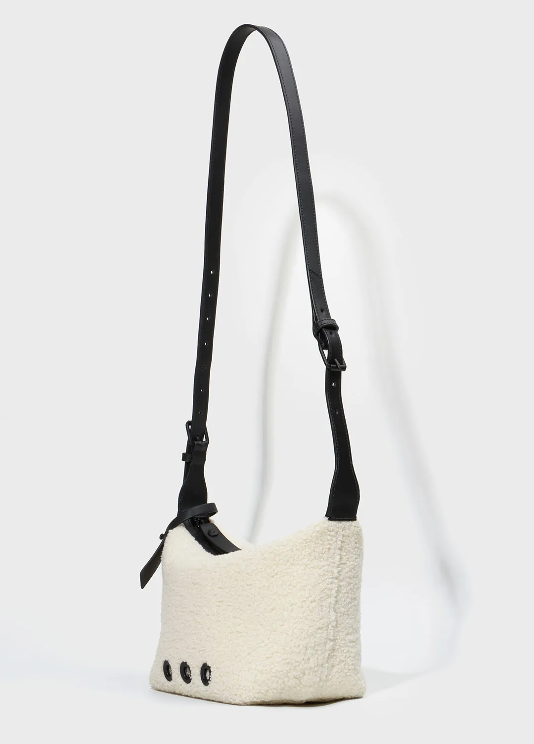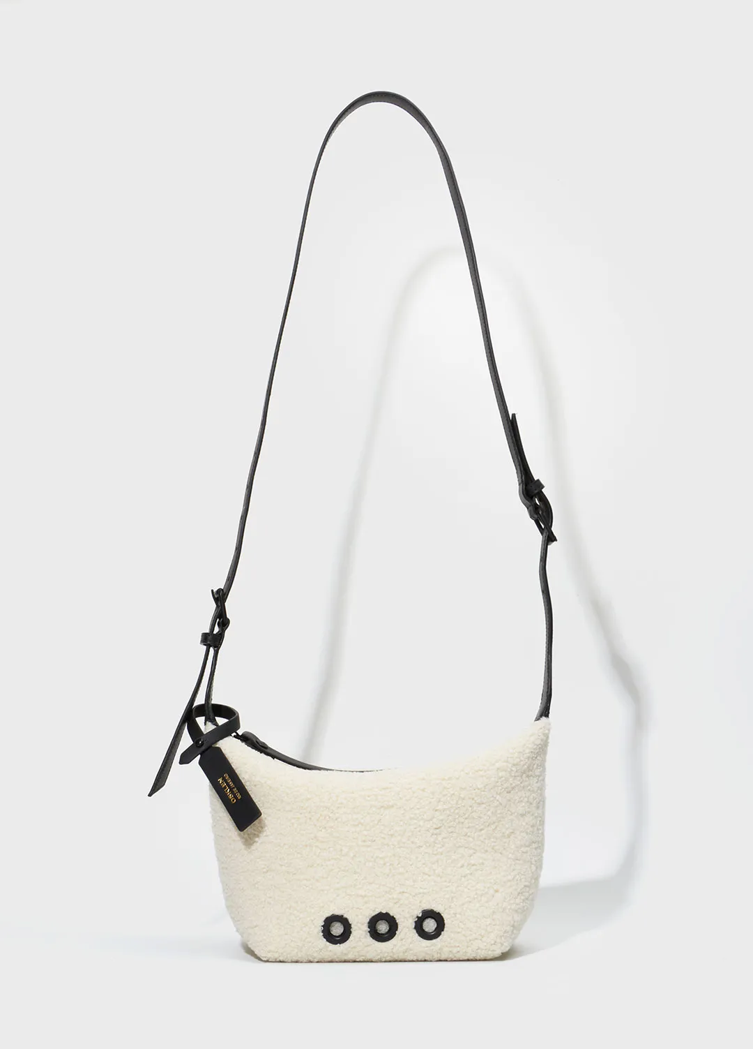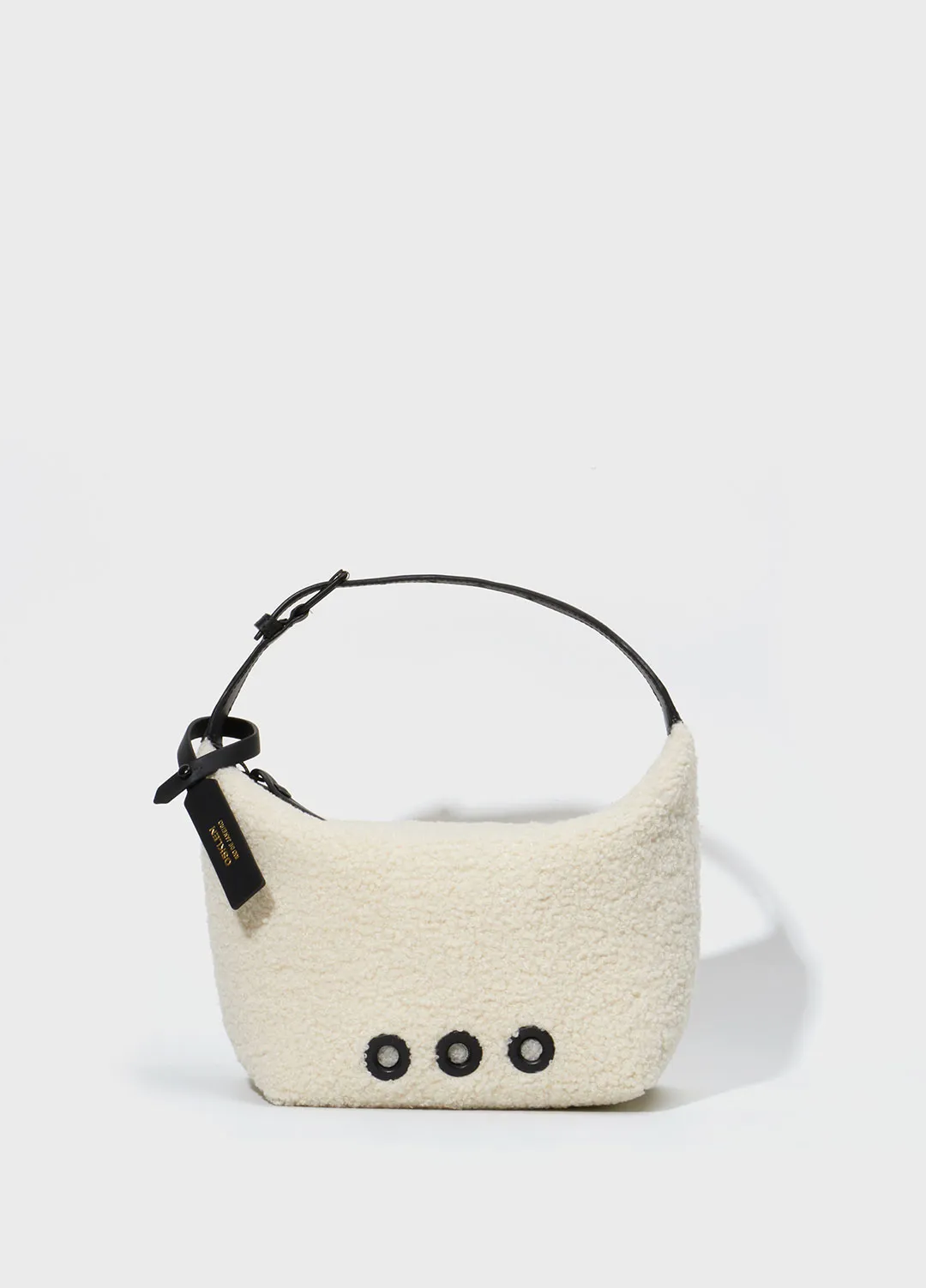 Bolsa de tamanho médio feita em malha felpuda, com detalhes em couro 100% bovino. for