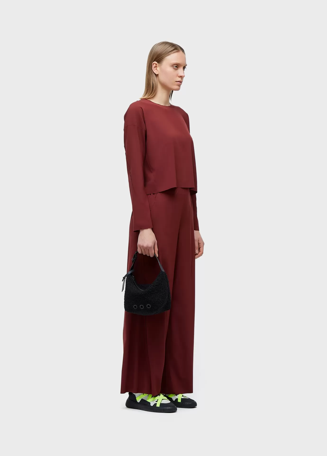 Bolsa de tamanho médio feita em malha felpuda, com detalhes em couro 100% bovino. for