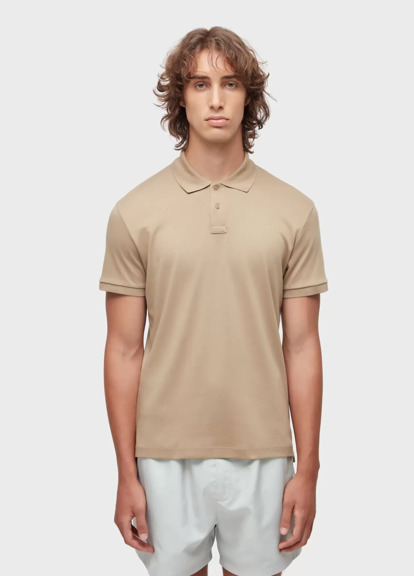 Polo masculina com modelagem fit, ajustada ao corpo. feita em malha de algodão pima,