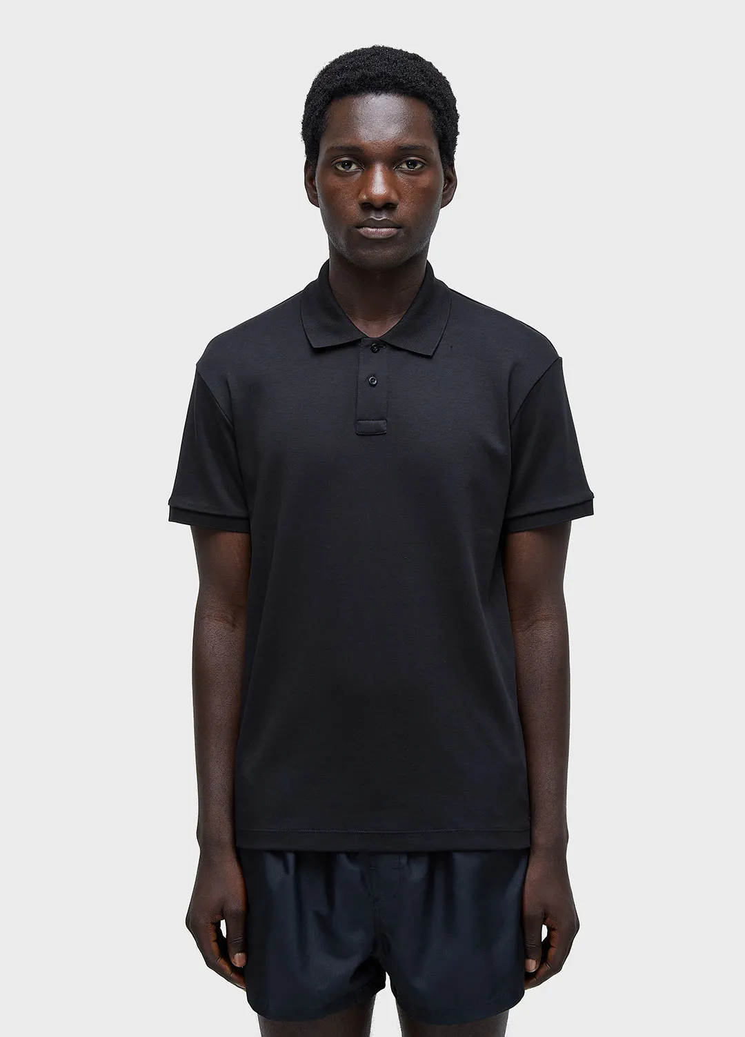 Polo masculina com modelagem fit, ajustada ao corpo. feita em malha de algodão pima,