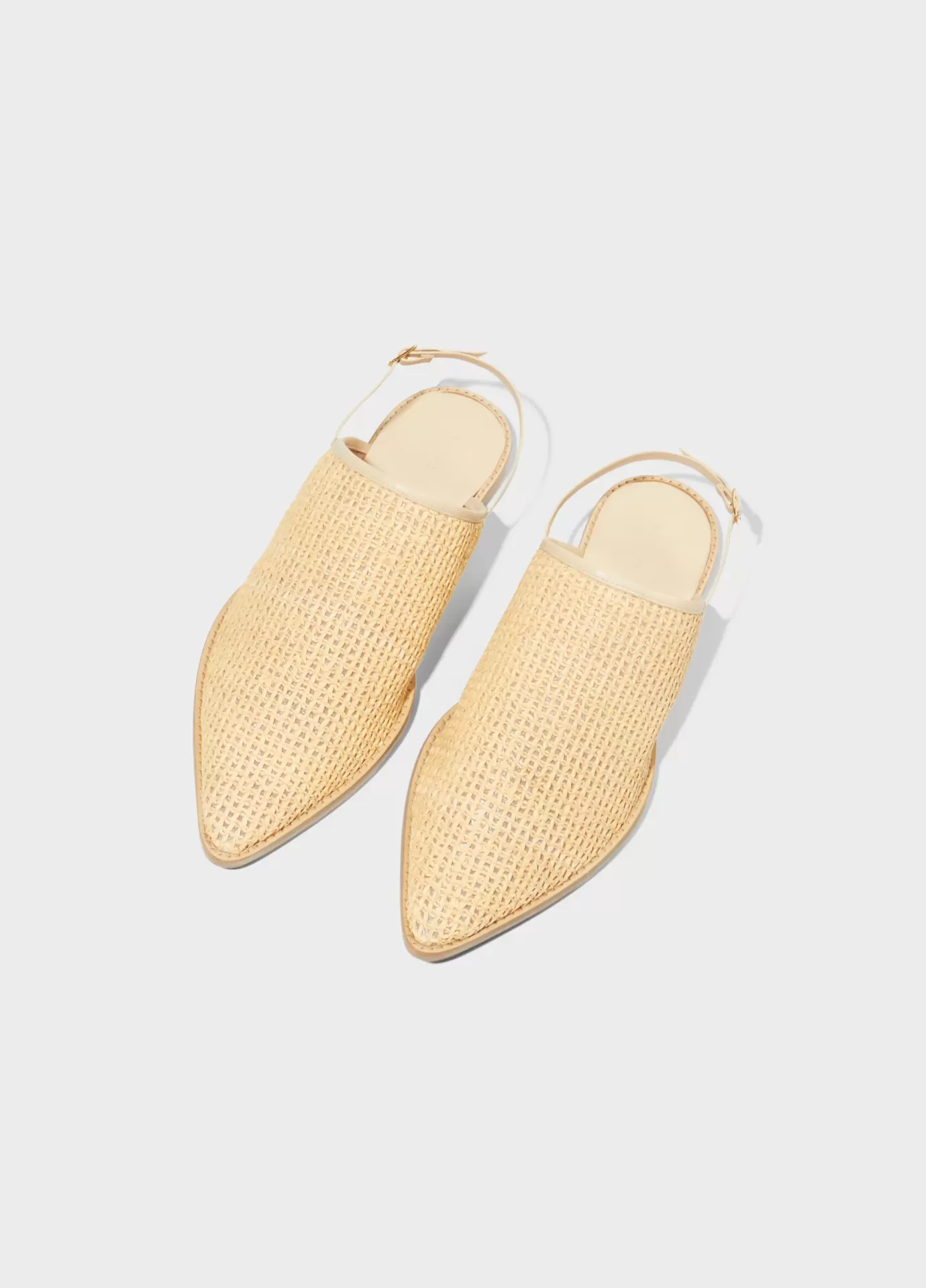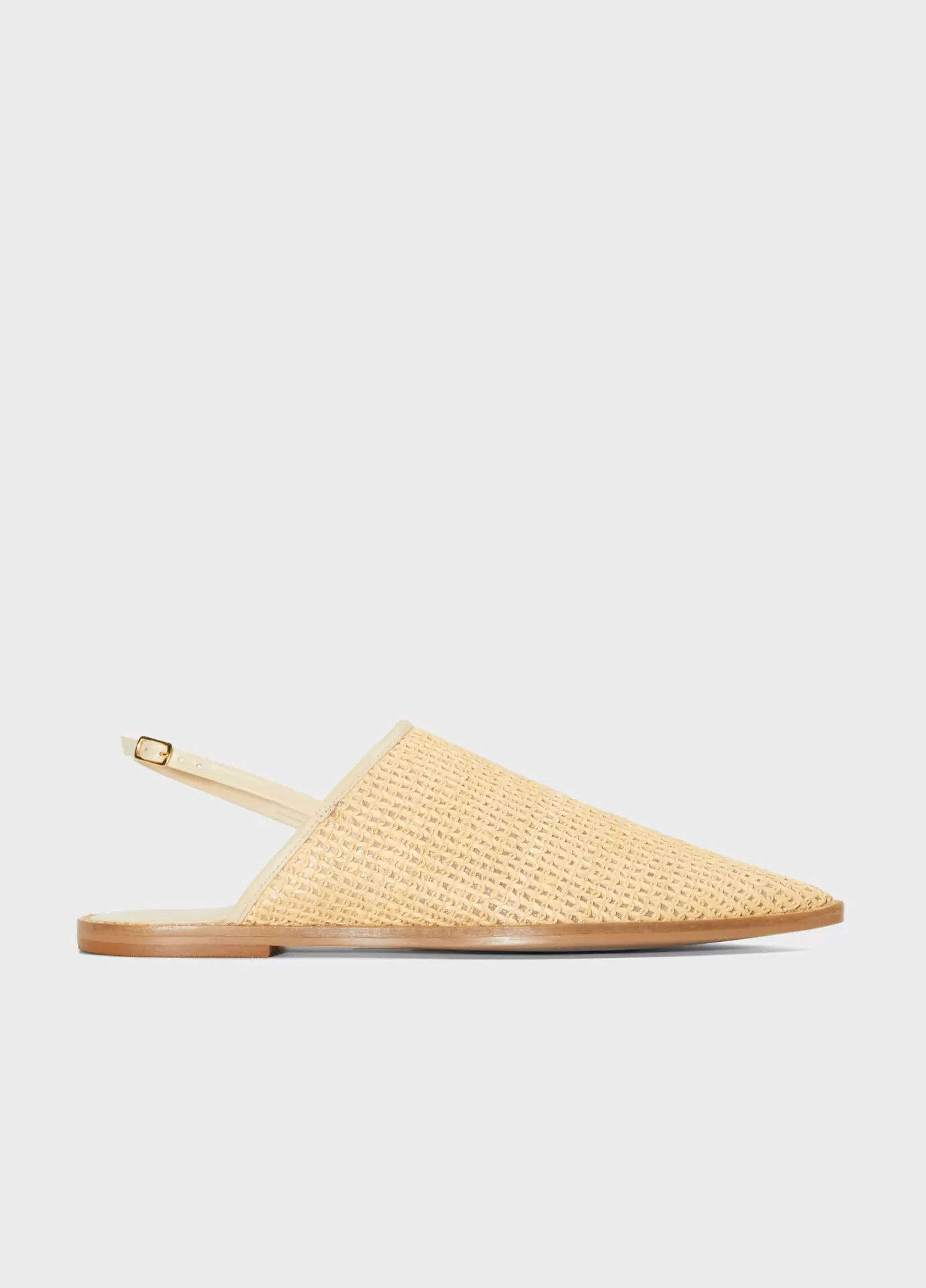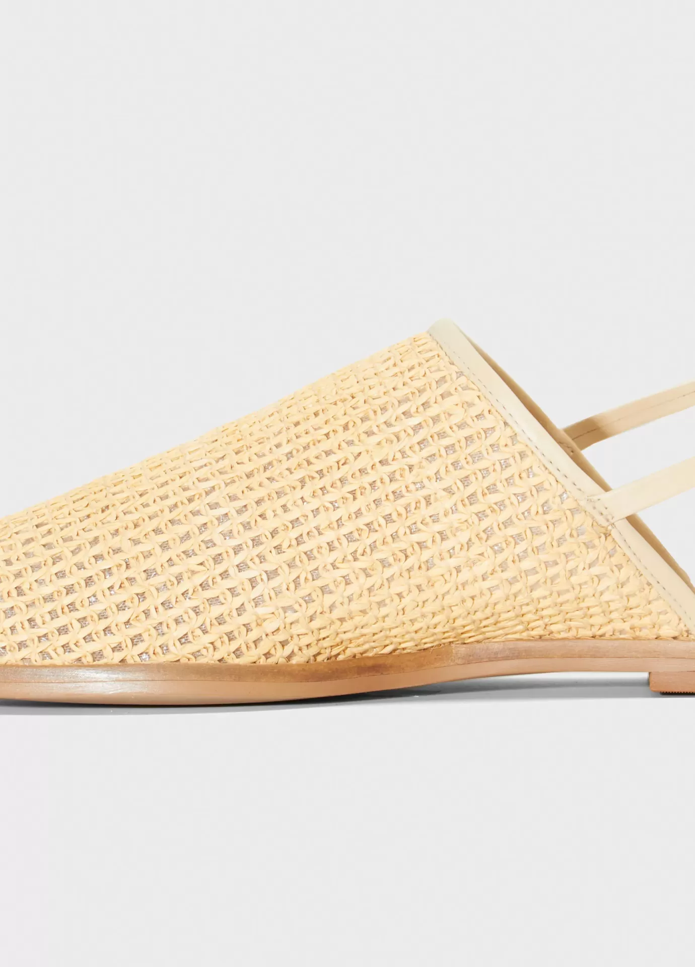 Babouche com cabedal em ráfia cor natural, acabamentos e palmilha em couro bovino na