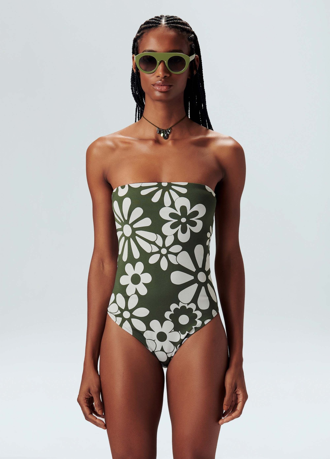 Maiô com decote reto e alças fixas com regulador. estampa exclusiva da osklen. a estampa pode sofrer alteração, dependendo do corte do tecido. forro em malha elástica leve.