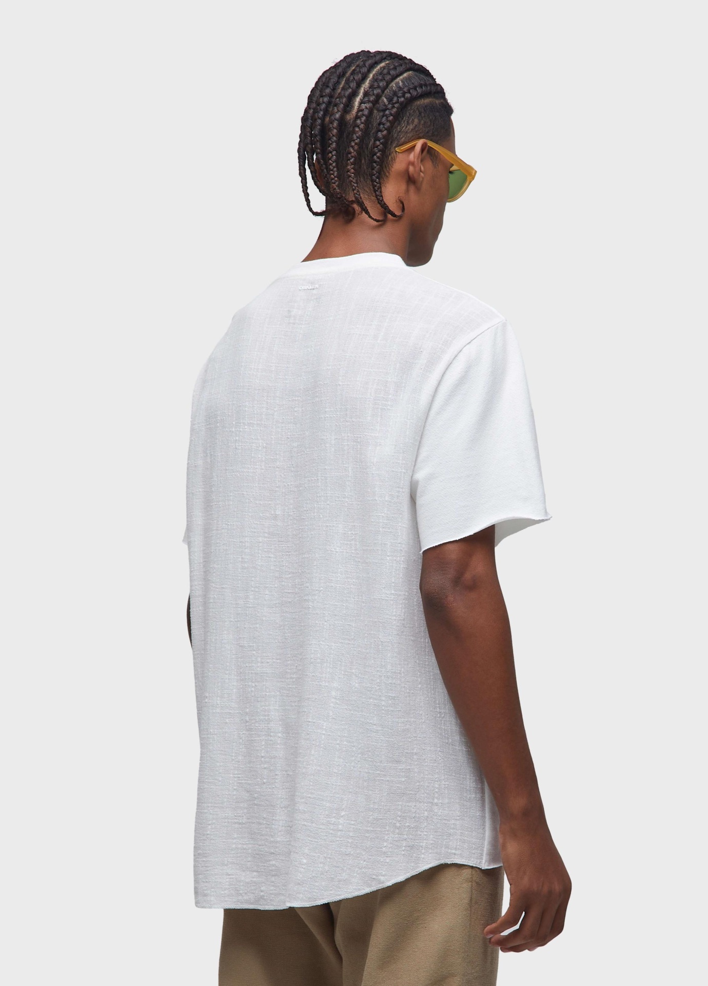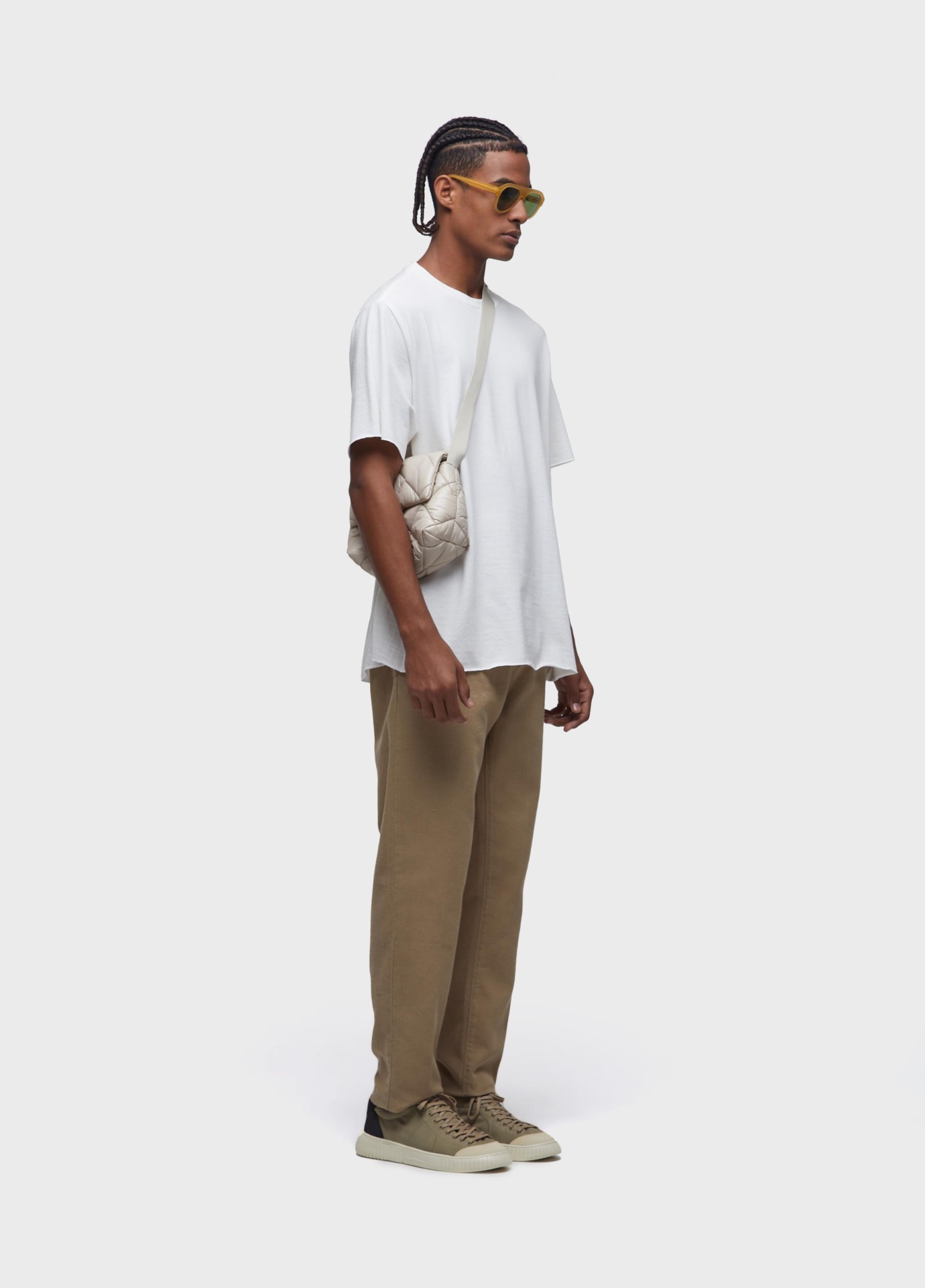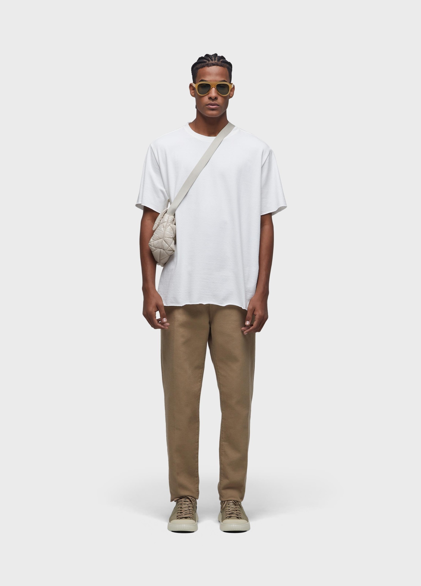 T-shirt masculina com tecido algodão rústico nas costas. base de modelagem over. peça