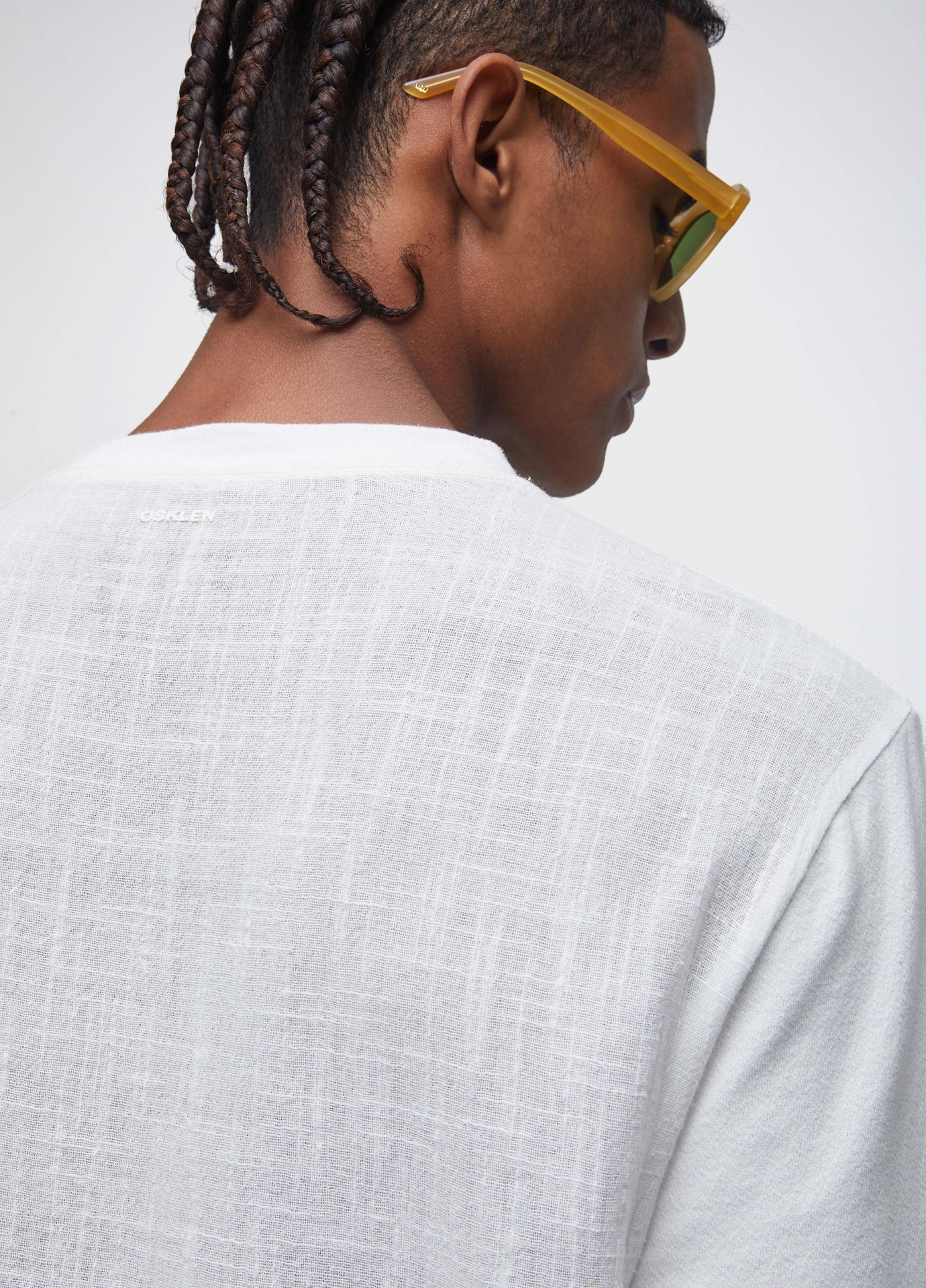 T-shirt masculina com tecido algodão rústico nas costas. base de modelagem over. peça possui 2 materiais, um 100% algodão e o outro 94% algodão 6% viscose. produzida com algodão nacional certificado que segue critérios minuciosos de redução dos impactos ambientais e sociais, seu processo produtivo utiliza energia renovável, reduz o consumo de água em relação aos processos tradicionais e fomenta as cadeias produtivas brasileiras. bandeira regenerate life.