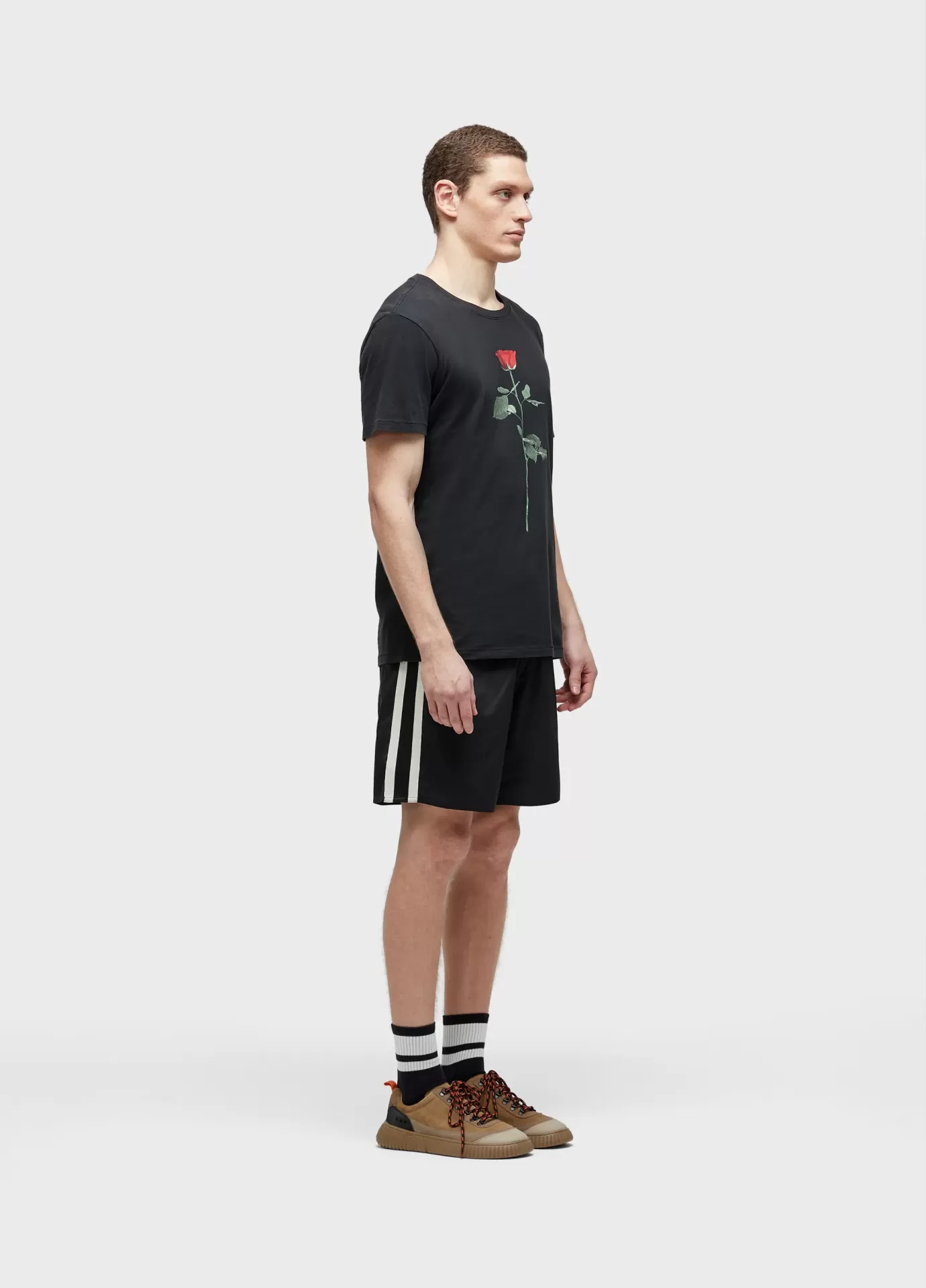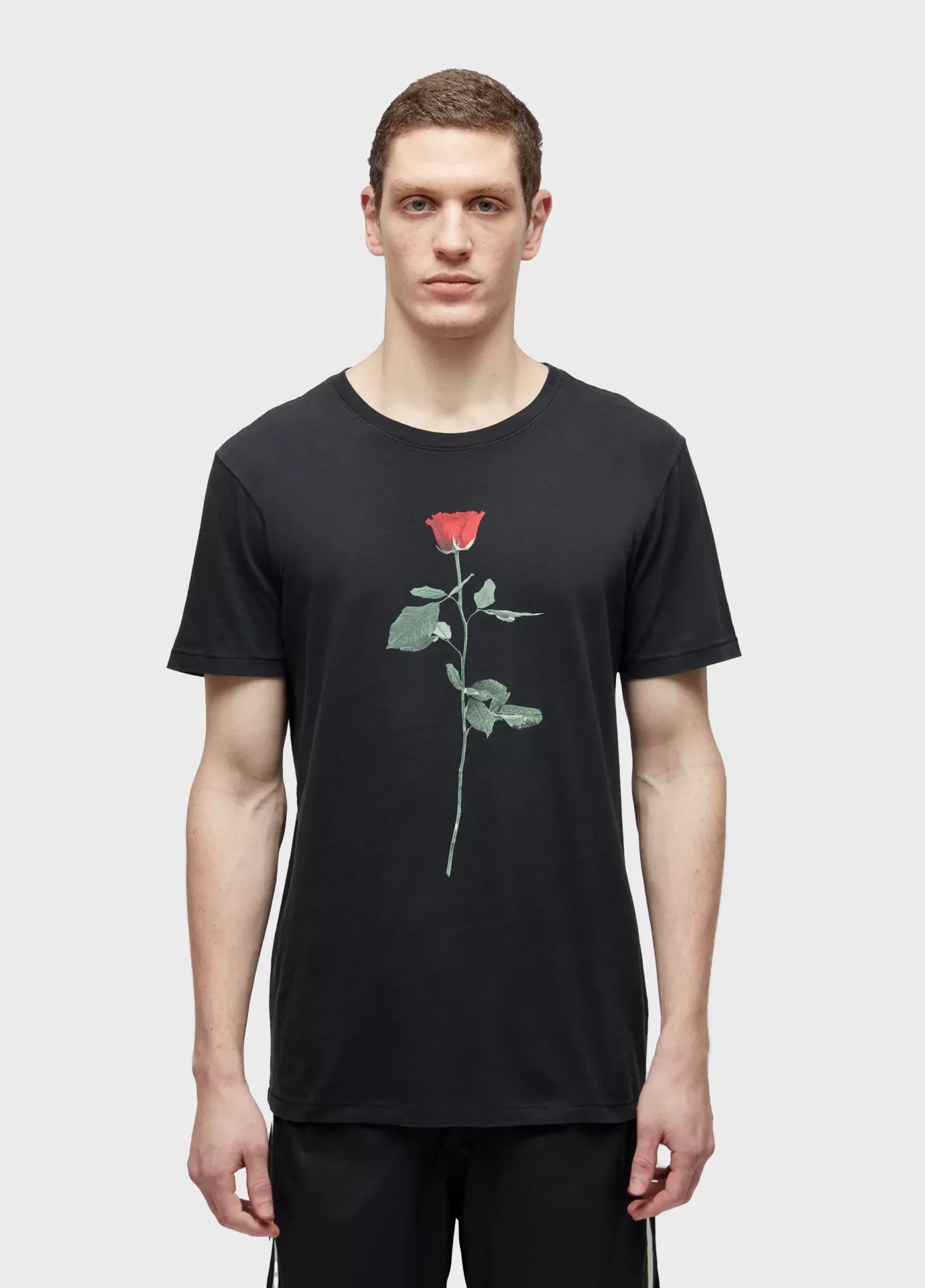 T-shirt masculina de modelagem fit, ajustada ao corpo. malha leve de algodão peruano com lavagem especial para dar aspecto envelhecido e toque macio. estampa exclusiva rose. peça delicada sujeita a variação de medida, atenção aos cuidados informados na etiqueta de composição. lavar peça na água fria e não usar secadora.