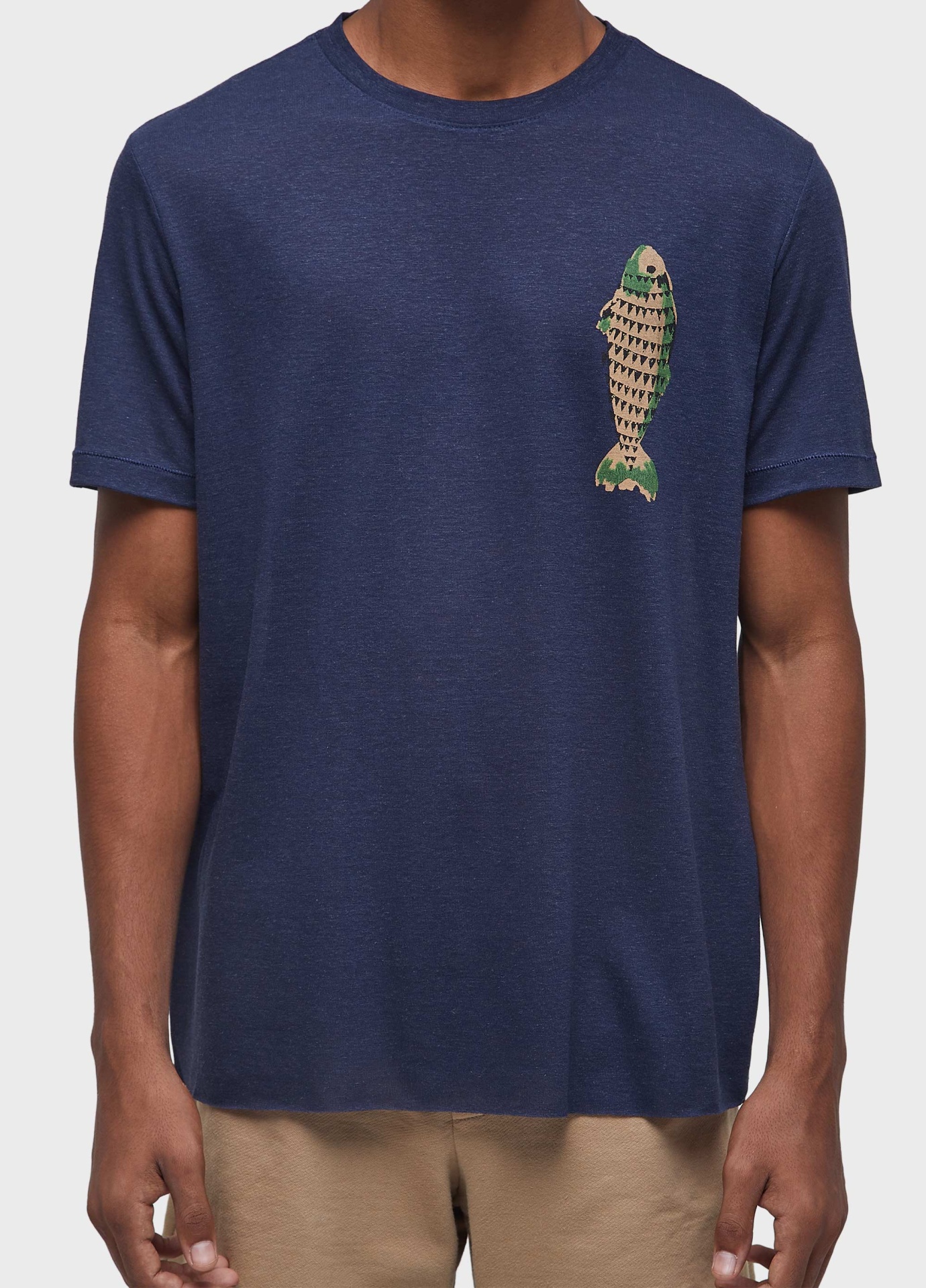 T-shirt masculina em modelagem regular, produzida em matéria prima 50% viscose 30% linho 20% poliéster reciclado (pet). estampa exclusiva fish. a peça é feita com viscose-e produzida a partir de madeiras oriundas de reflorestamento e manejo sustentável certificadas pelo forest stewardship council (fsc), programme for the endorsement or forest certification (pefc) e eu ecolabel. por seguir esses critérios, a produção desse material reduz 50% o uso de água e a emissão de co2 quando comparada com a viscose tradicional. bandeira regenerate life. peça delicada sujeita a variação de medida, atenção aos cuidados informados na etiqueta de composição. lavar peça na água fria e não usar secadora.