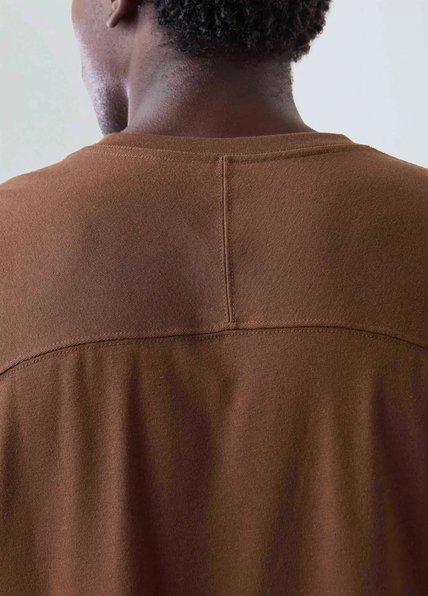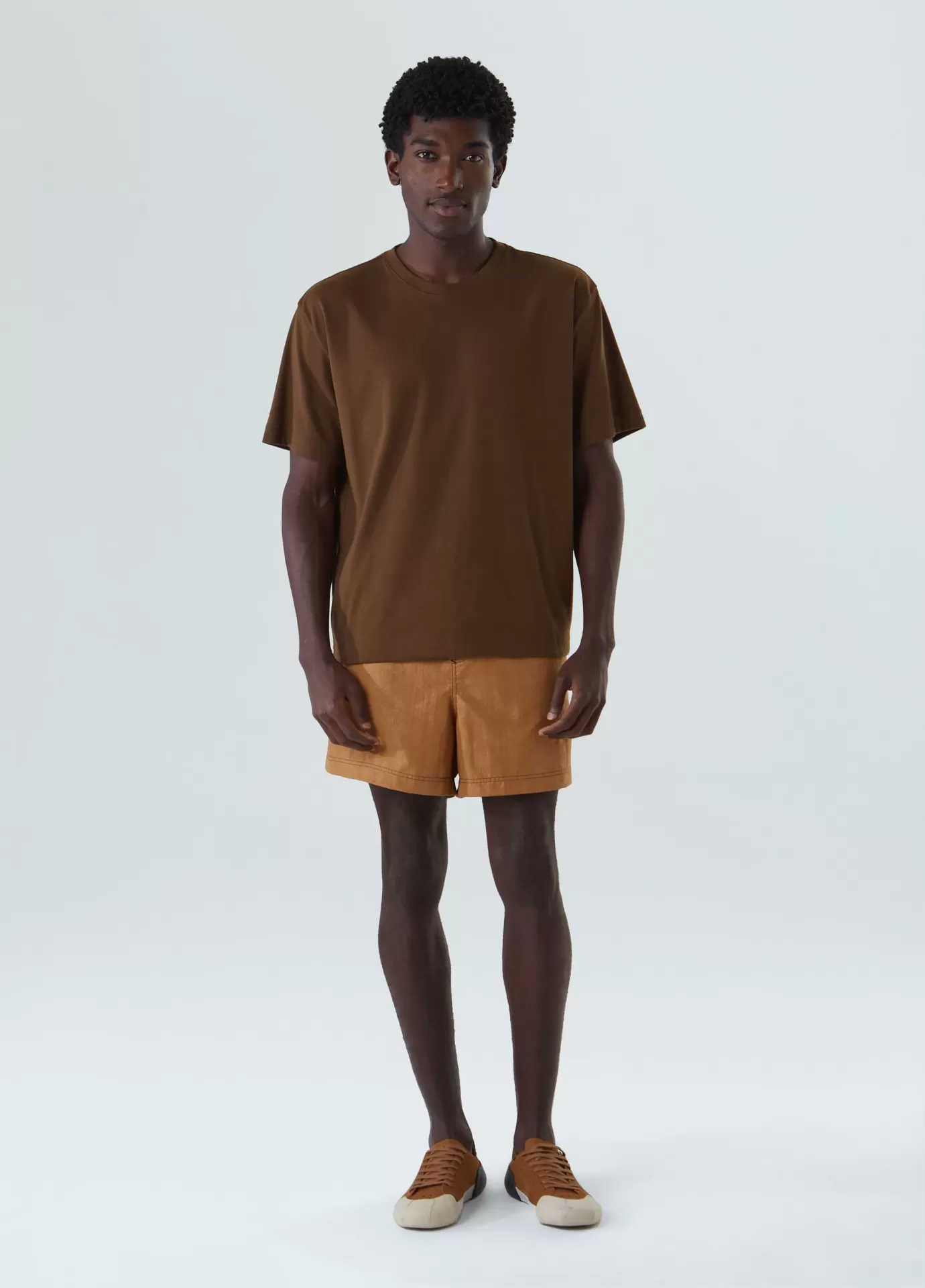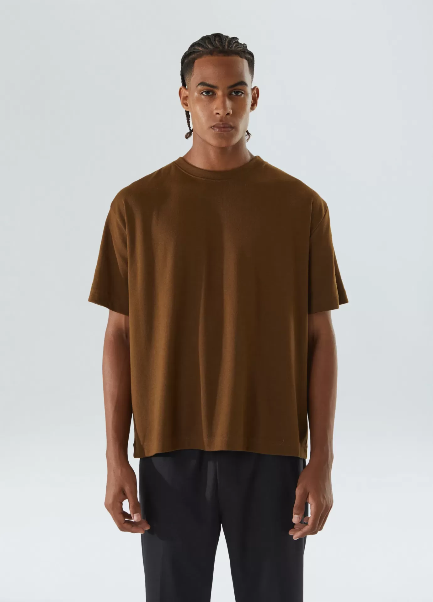 T-shirt masculina com modelagem over. esta peça foi produzida com algodão certificado, produzido a partir de critérios socioambientais e econômicos. sua produção utiliza energia renovável, reduz o consumo de água e fomenta a sustentabilidade das cadeias produtivas.