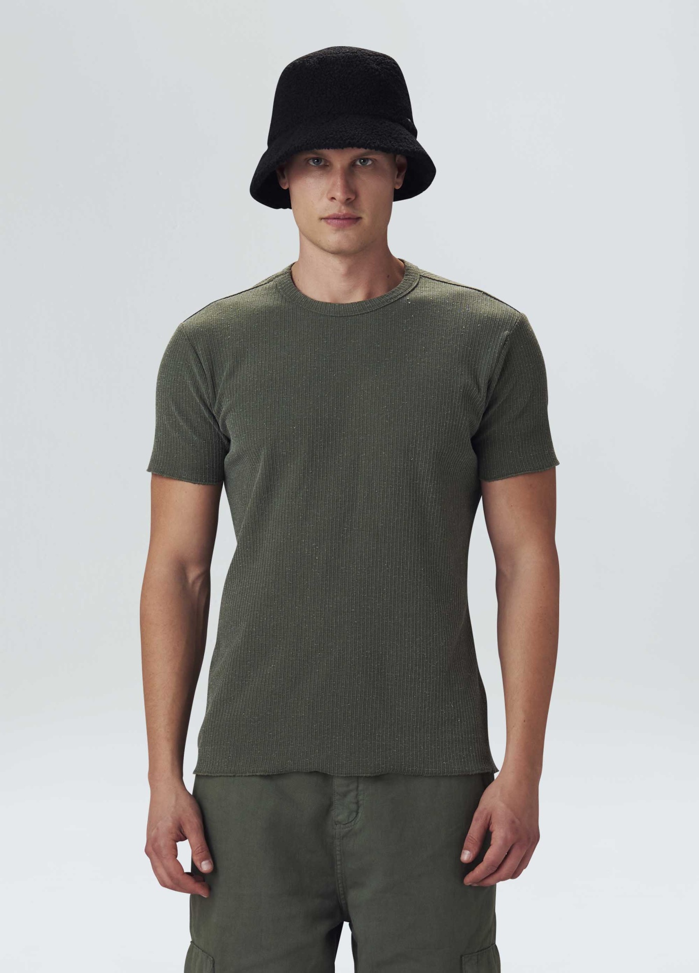 descriçãoT-shirt masculina, base de modelagem Slim. A peça é feita através do reaprov