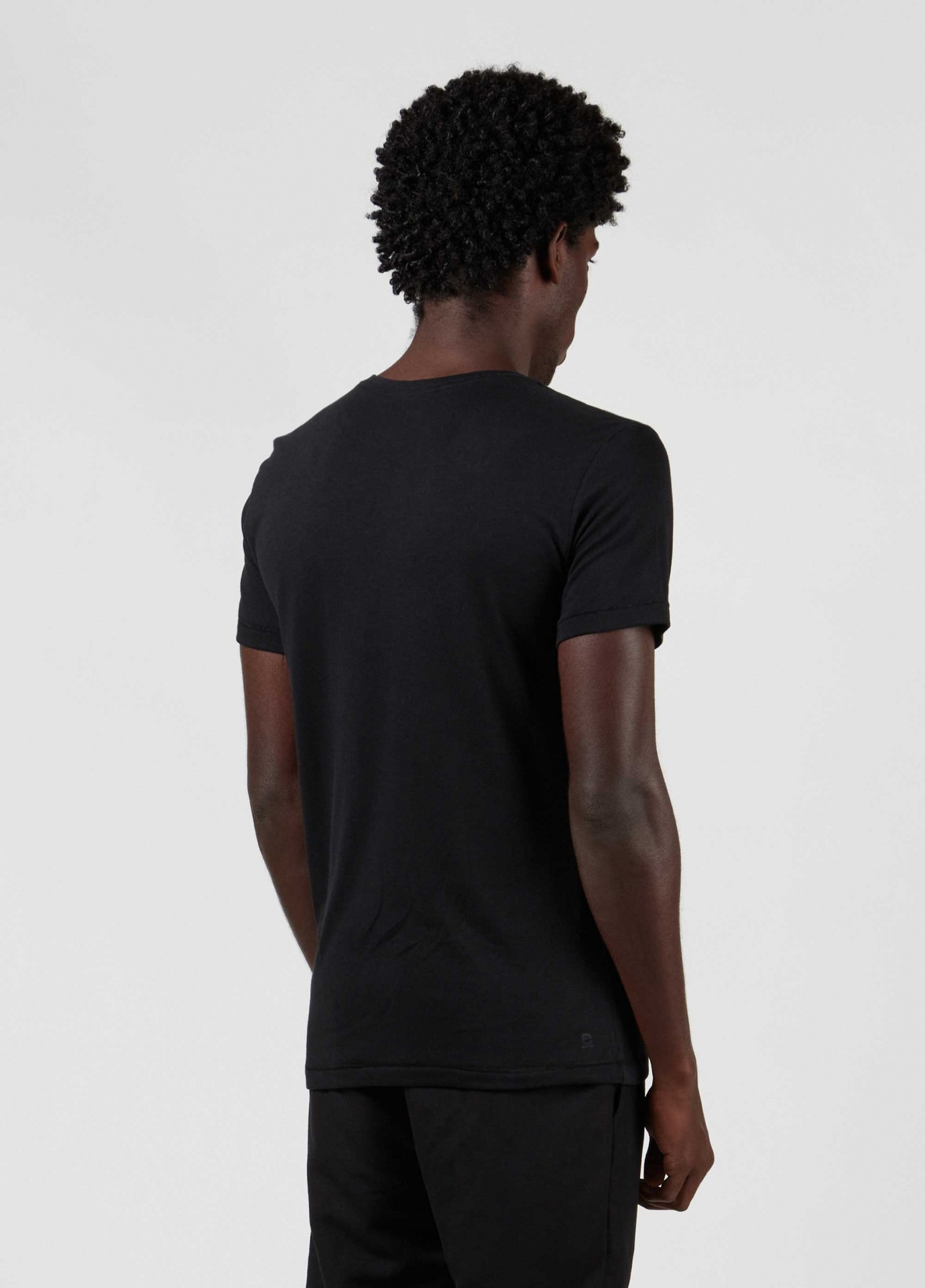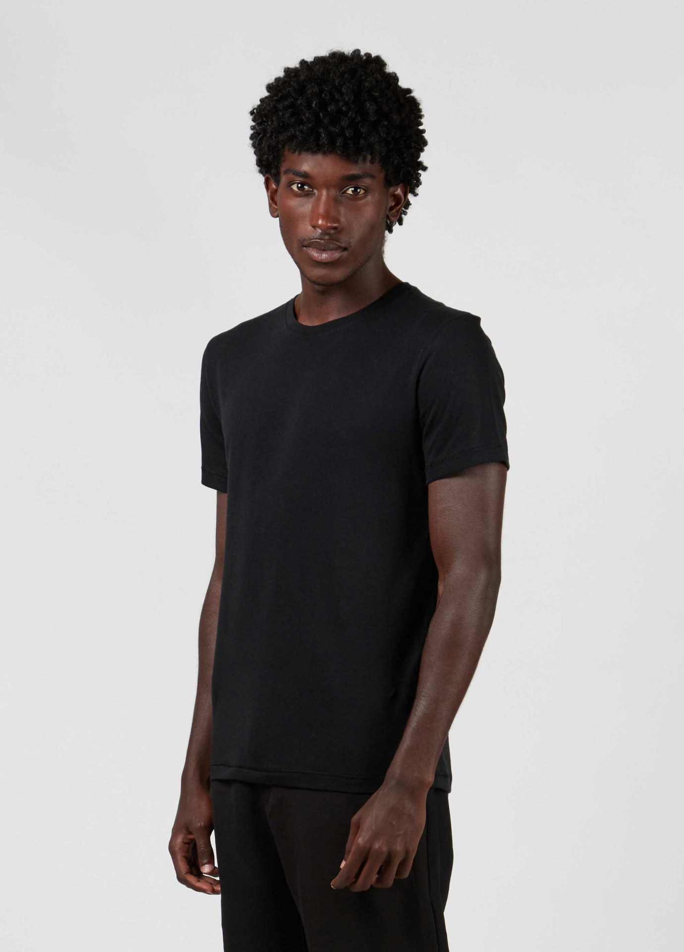 Travel T-shirt em malha E-fabrics de algodão com poliéster reciclado. Base slim, ajustada ao corpo. Com polygiene, que é um tratamento antibacteriano que garante que você use mais vezes a peça, sem precisar lava-lá, ou seja, menos lavagens, mais durabilidade da peça, economia de água, produtos químicos e energia. Faz parte da linha E-basics.