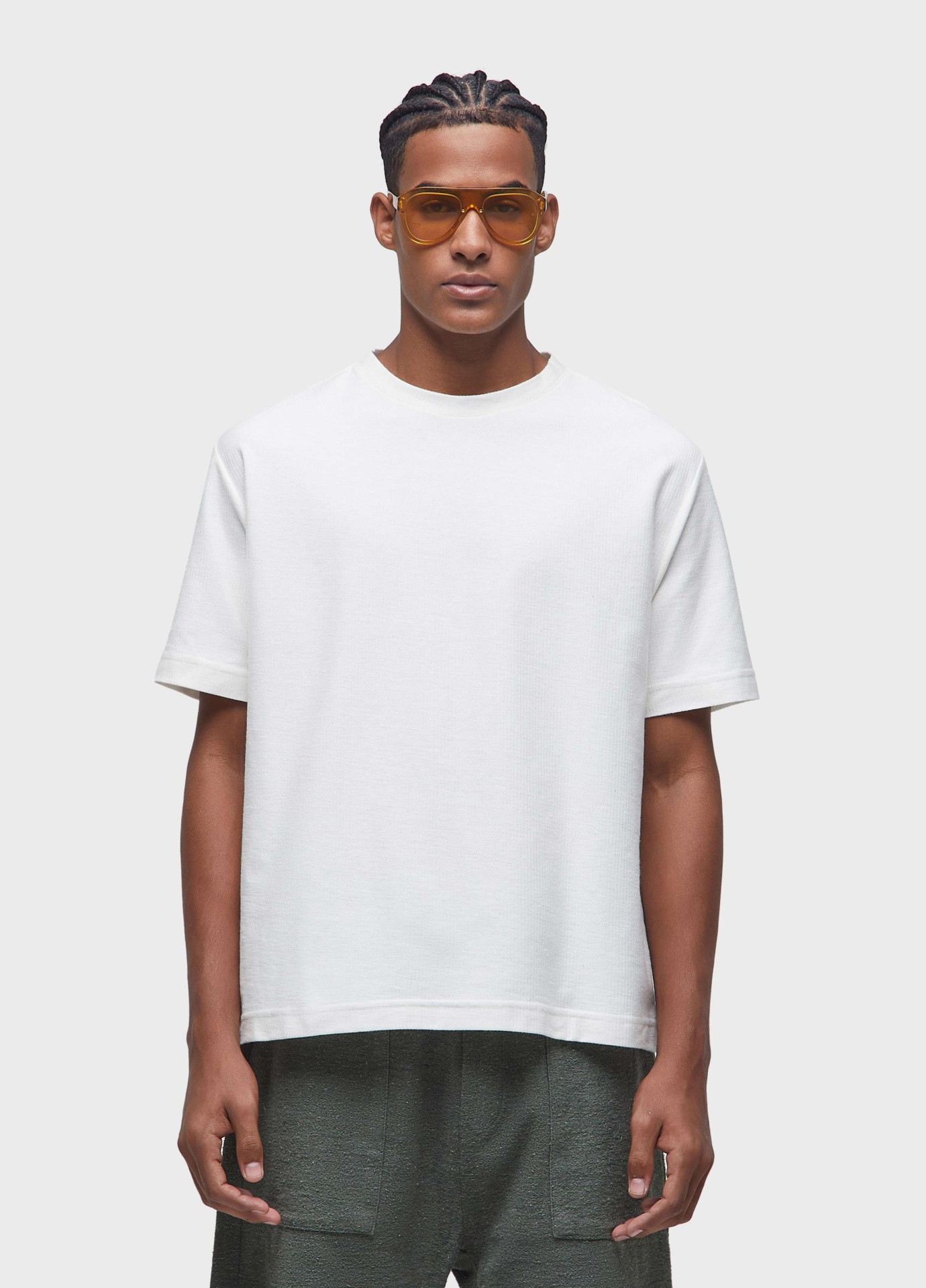 T-shirt masculina em modelagem over. feita em malha canelada 100% algodão. produzida