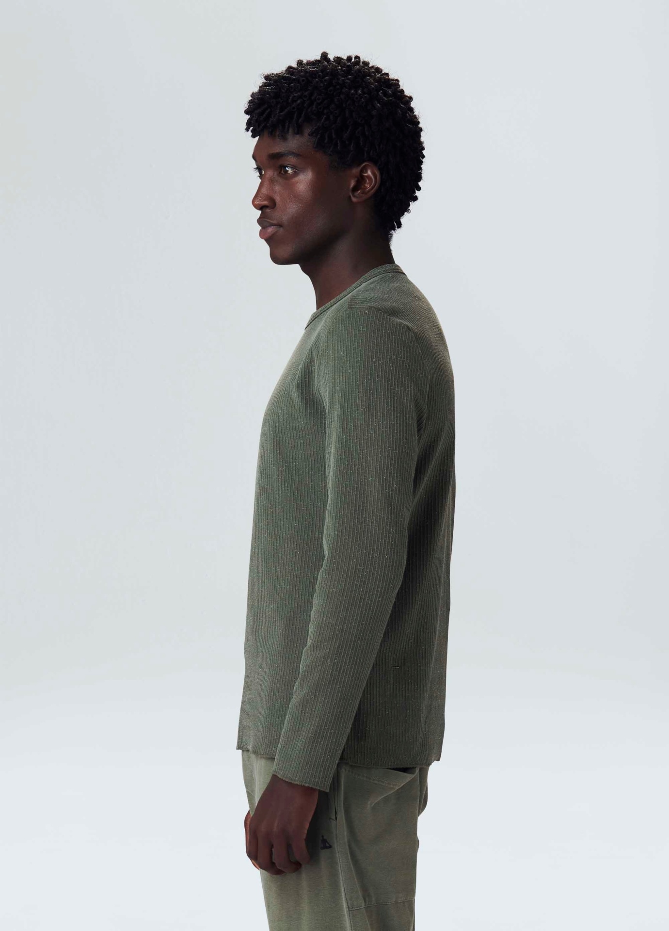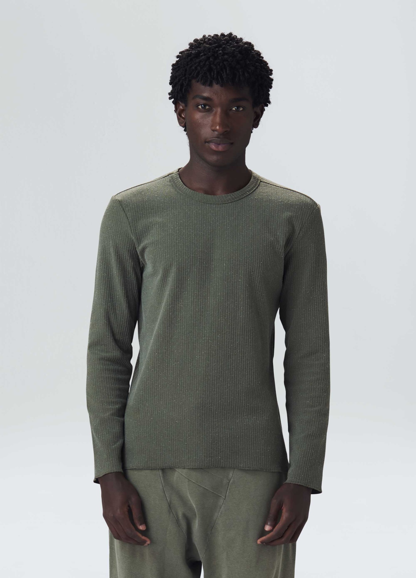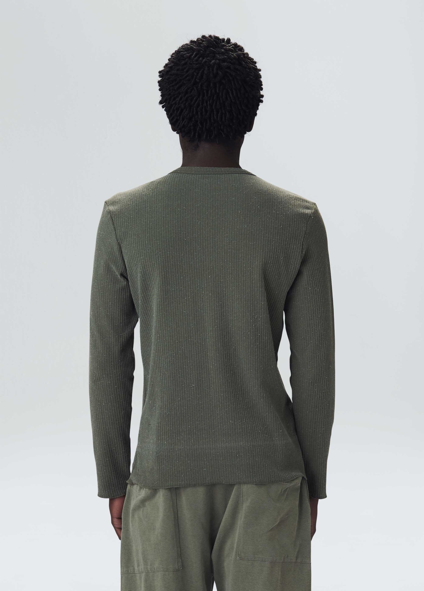 T-shirt manga longa masculina, base de modelagem Slim. A peça é feita através do reaproveitamento de resíduos têxteis, processo que promove o upcycling e economia circular. O amaciamento da fibra é feita com óleo de andiroba cultivado e extraído em um processo orgânico e sustetável, sua produção contribui para a proteção da floresta e beneficia dezenas de pesssoas na região da ilha do Marajó, no Pará. Bandeira Regenerate Life.