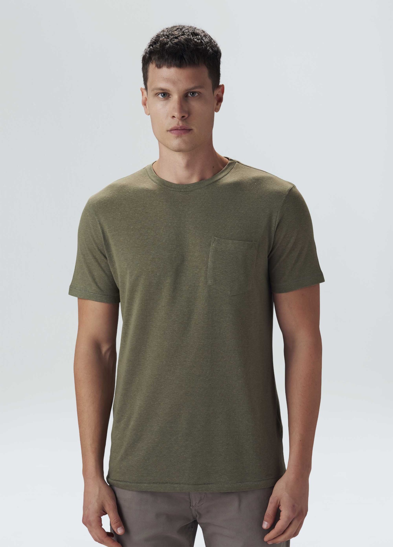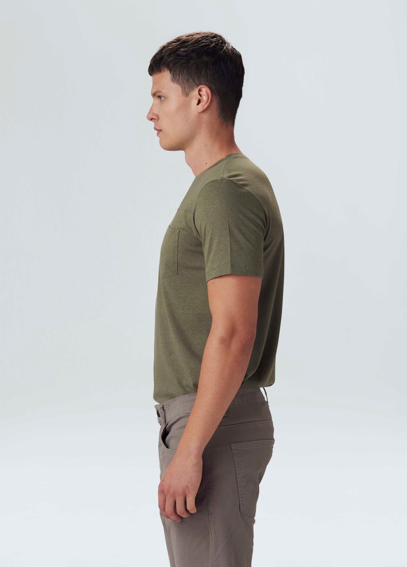 Travel T-shirt em malha E-Fabrics de algodão com poliester reciclado. Modelagem Slim, ajustada ao corpo. Com polygiene, que é um tratamento antibacteriano que garante que você use mais vezes a peça, sem precisar lava-lá, ou seja, menos lavagens, mais durabilidade da peça, economia de água, produtos químicos e energia. Parte da linha E-Basics.