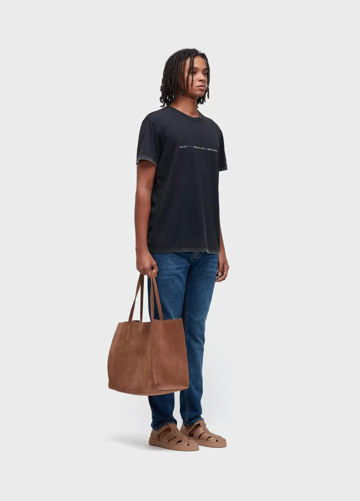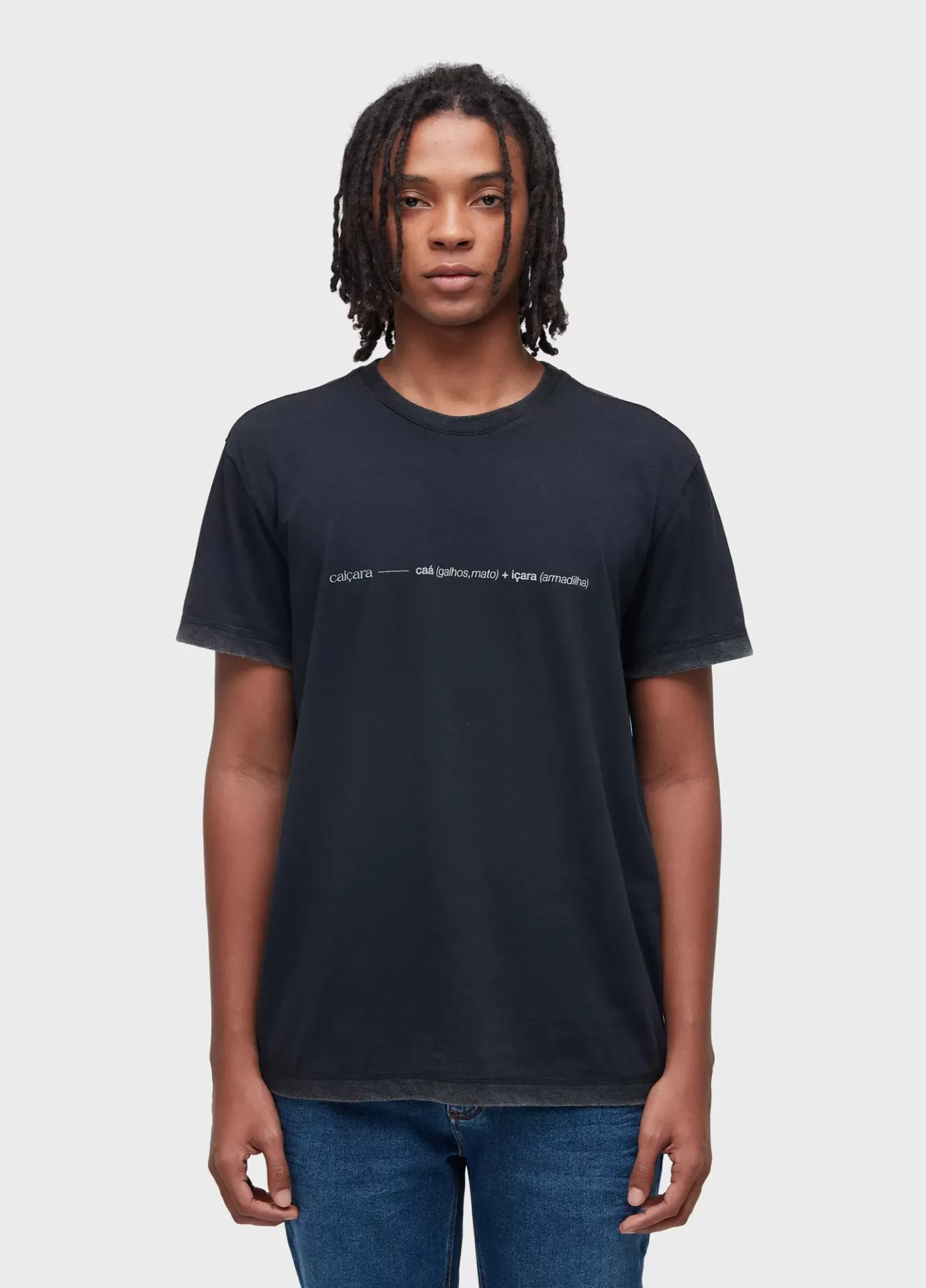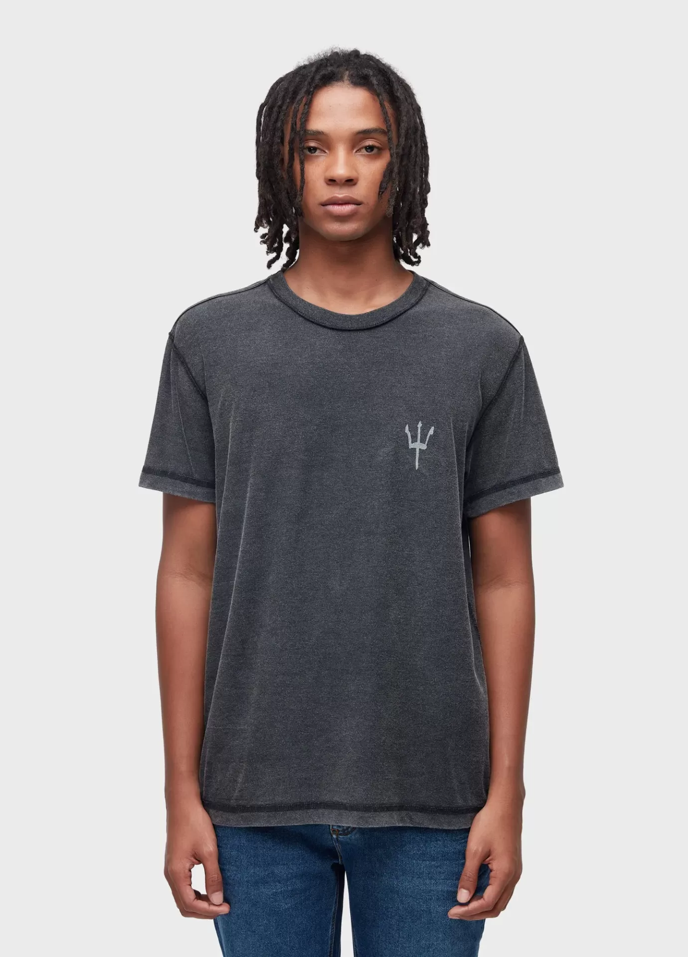 T-shirt masculina double face, com efeito lavanderia marmorizado no lado avesso, mode