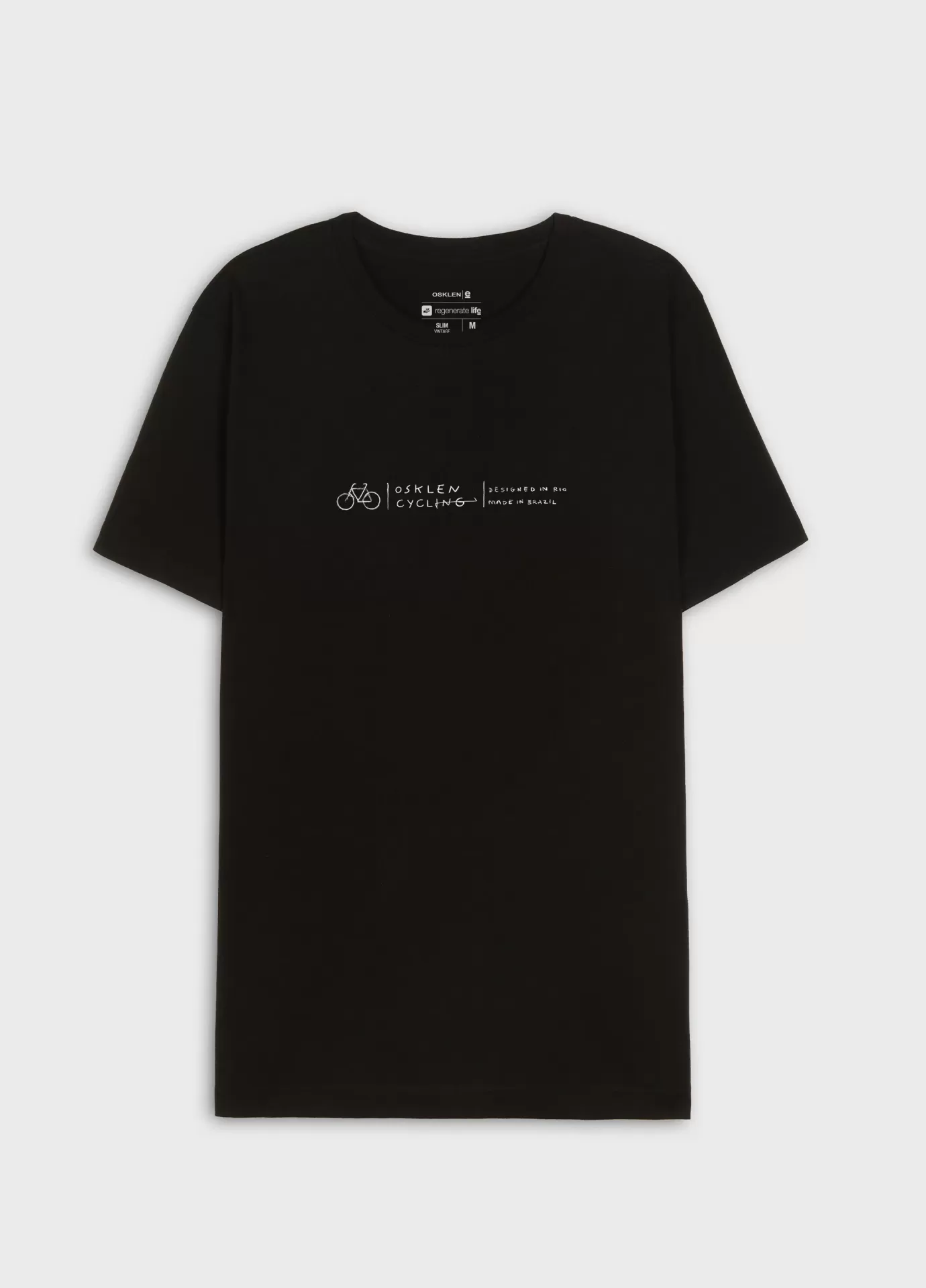T-shirt masculina 1/2 malha 100% algodão certificado, base de modelagem slim, com visual gastinho, feito manualmente, peça a peça. a produção do algodão nacional certificado contribui para redução dos impactos ambientais, utiliza energia renovável, reduz o consumo de água e fomenta o aprimoramento social e ambiental das cadeias produtivas brasileiras. bandeira regenerate life.