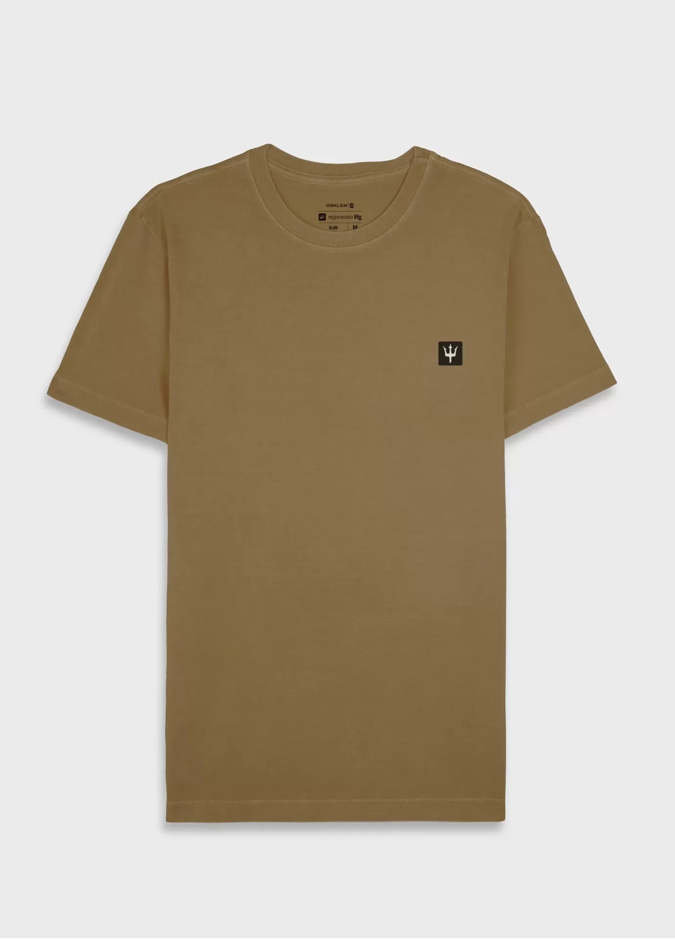t-shirt masculina 1/2 malha 100% algodão certificado, base de modelagem slim. bandeira regenerate life. a produção do algodão nacional certificado contribui para redução dos impactos ambientais, utiliza energia renovável, reduz o consumo de água e fomen