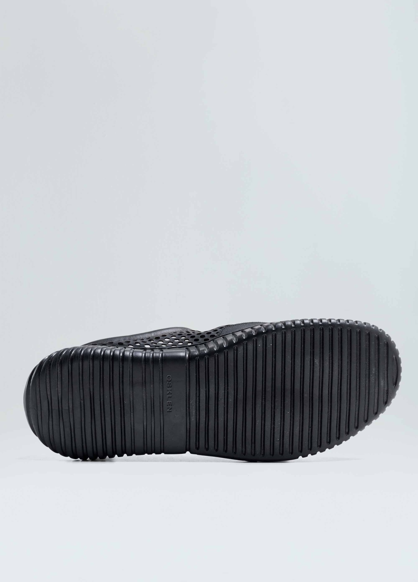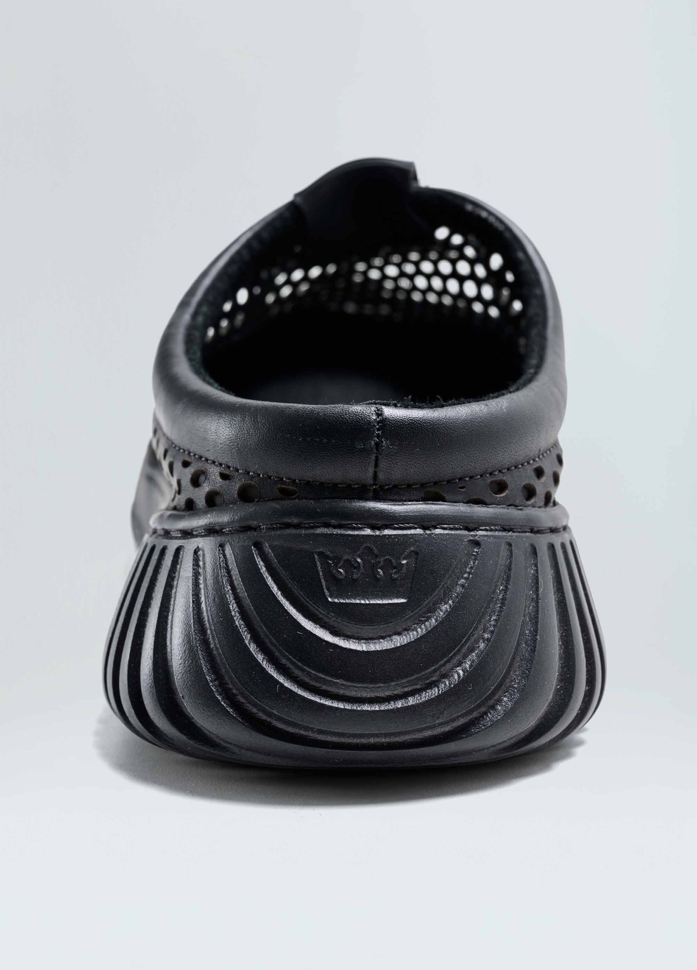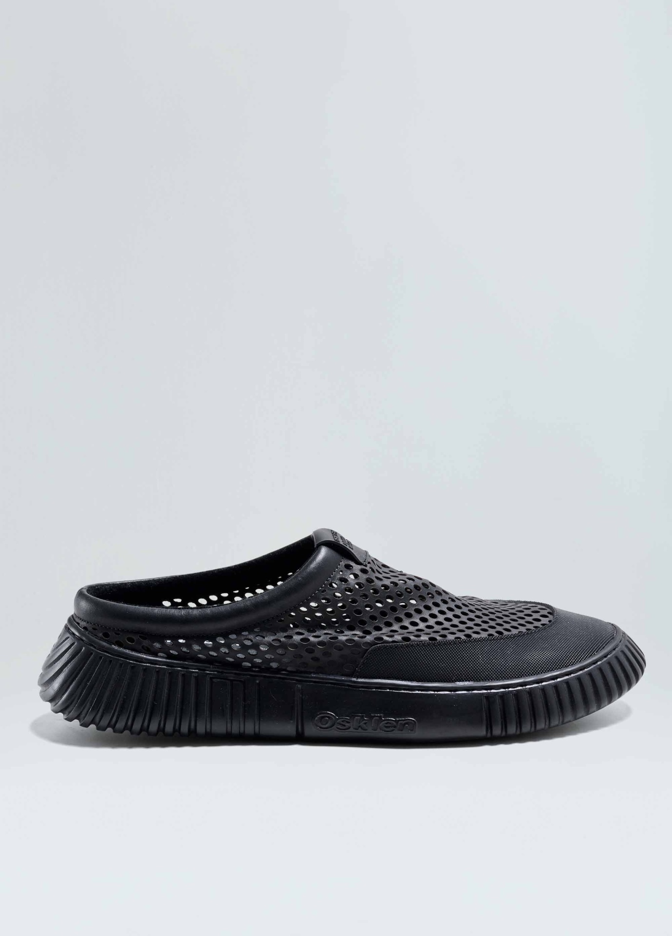 Tênis Arp(X) em couro bovino com microfuros feitos a laser. Recorte de borracha texturizada com recicle em sua composição no bico. Assinatura em etiqueta de borracha personalizada Osklen. Modelo mule slip-on com elástico para facilitar o calce. Forro parcial e palmilha em couro bovino. Solado de EVA costurado ao cabedal com design exclusivo Osklen, produzido com mais de 70% de carbono de base biológica, oriundo da cana de açúcar plantada e cultivada no Brasil. Produto Regenerate Life e Re-Design Waste.