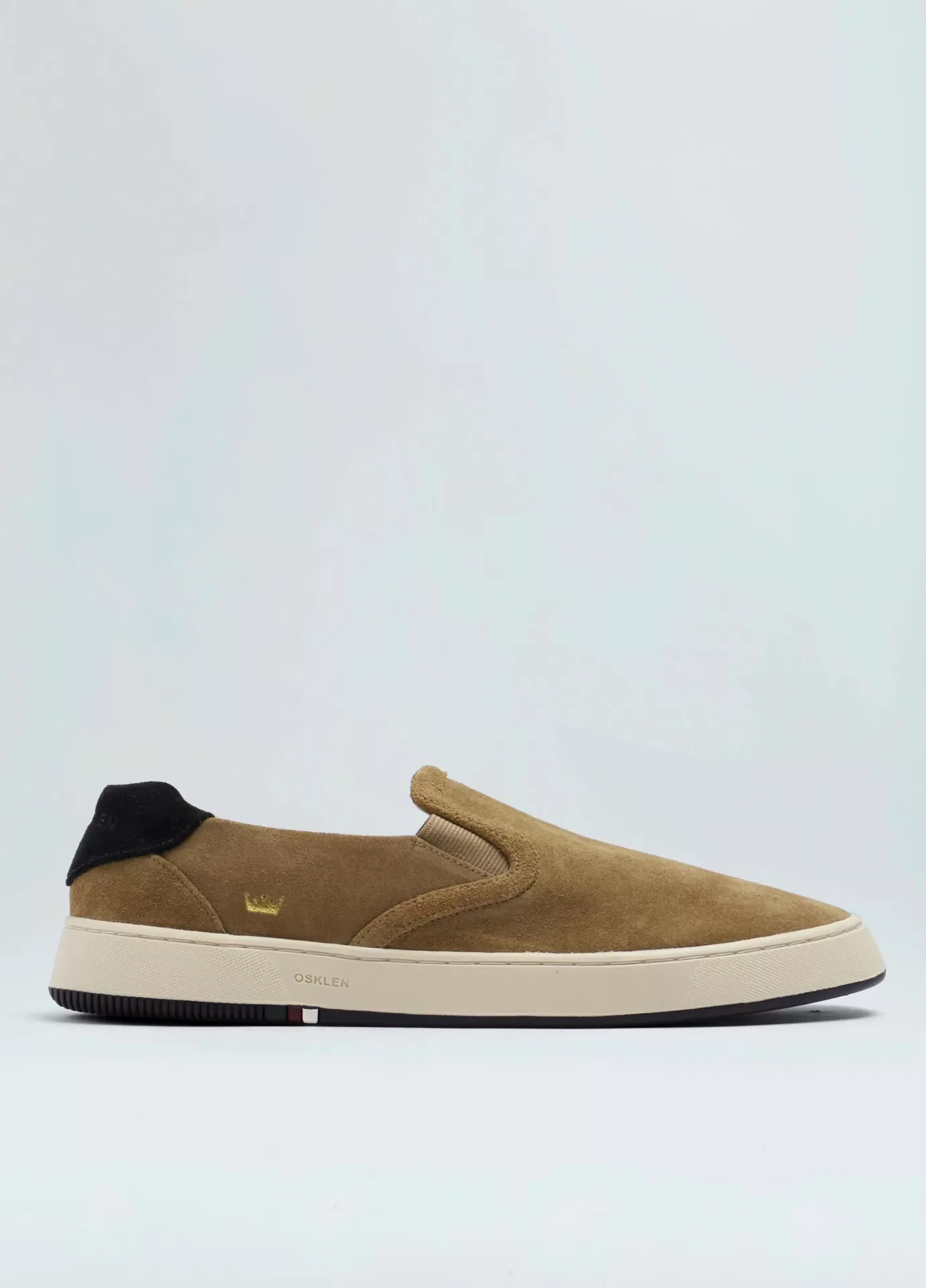 Tênis Soho Bossanova em camurça bovina. Modelo slip on com elásticos para facilitar o calce. Forro e palmilha em couro bovino. Solado de borracha costurado ao cabedal com design exclusivo Osklen. Produto Re-Design Waste. A partir do Inverno 21 o solado passou a ser produzido com no mínimo 10% de material reciclado.