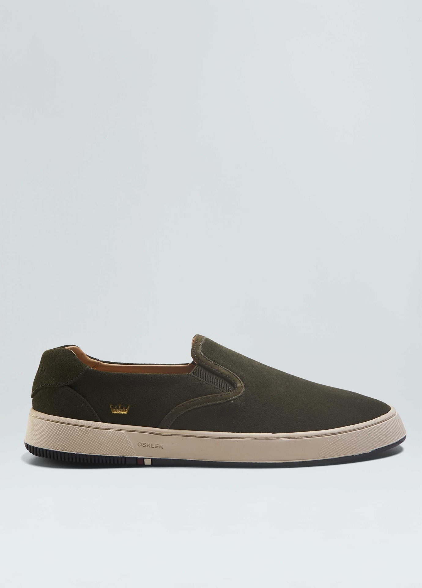 Tênis Soho Bossanova em camurça bovina. Modelo slip on com elásticos para facilitar o calce. Forro e palmilha em couro bovino. Solado de borracha costurado ao cabedal com design exclusivo Osklen. Produto Re-Design Waste. A partir do Inverno 21 o solado passou a ser produzido com no mínimo 10% de material reciclado.