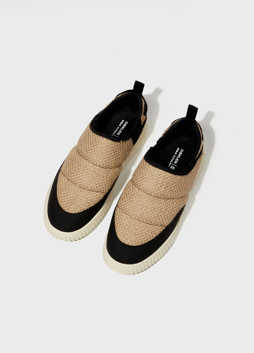 Tênis arp(x) em juta com recorte de borracha texturizada no bico. a juta é uma planta