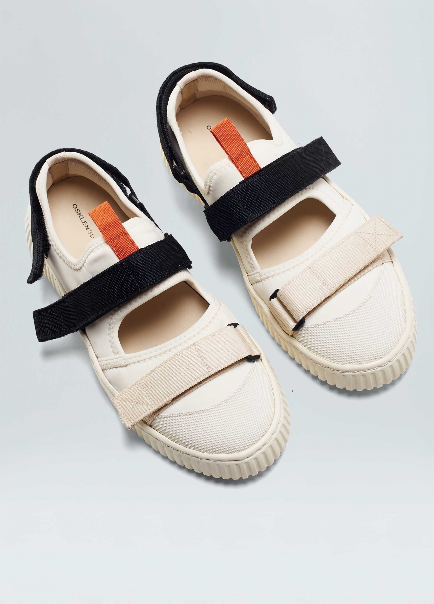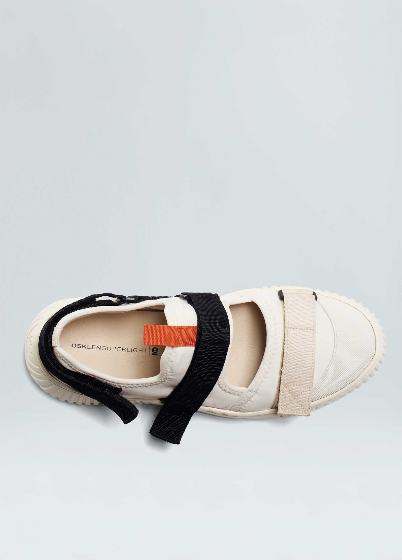 Tênis Arp(X) em material elástico com recorte de borracha texturizada no bico. Modelo sem amarração com fitas de regulagem e velcro. Detalhe vazado no cabedal. Forro esportivo. Palmilha em couro bovino. Solado de EVA costurado ao cabedal com design exclusivo Osklen, produzido com mais de 70% de carbono de base biológica, oriundo da cana de açúcar plantada e cultivada no Brasil. Produto Regenerate Life.