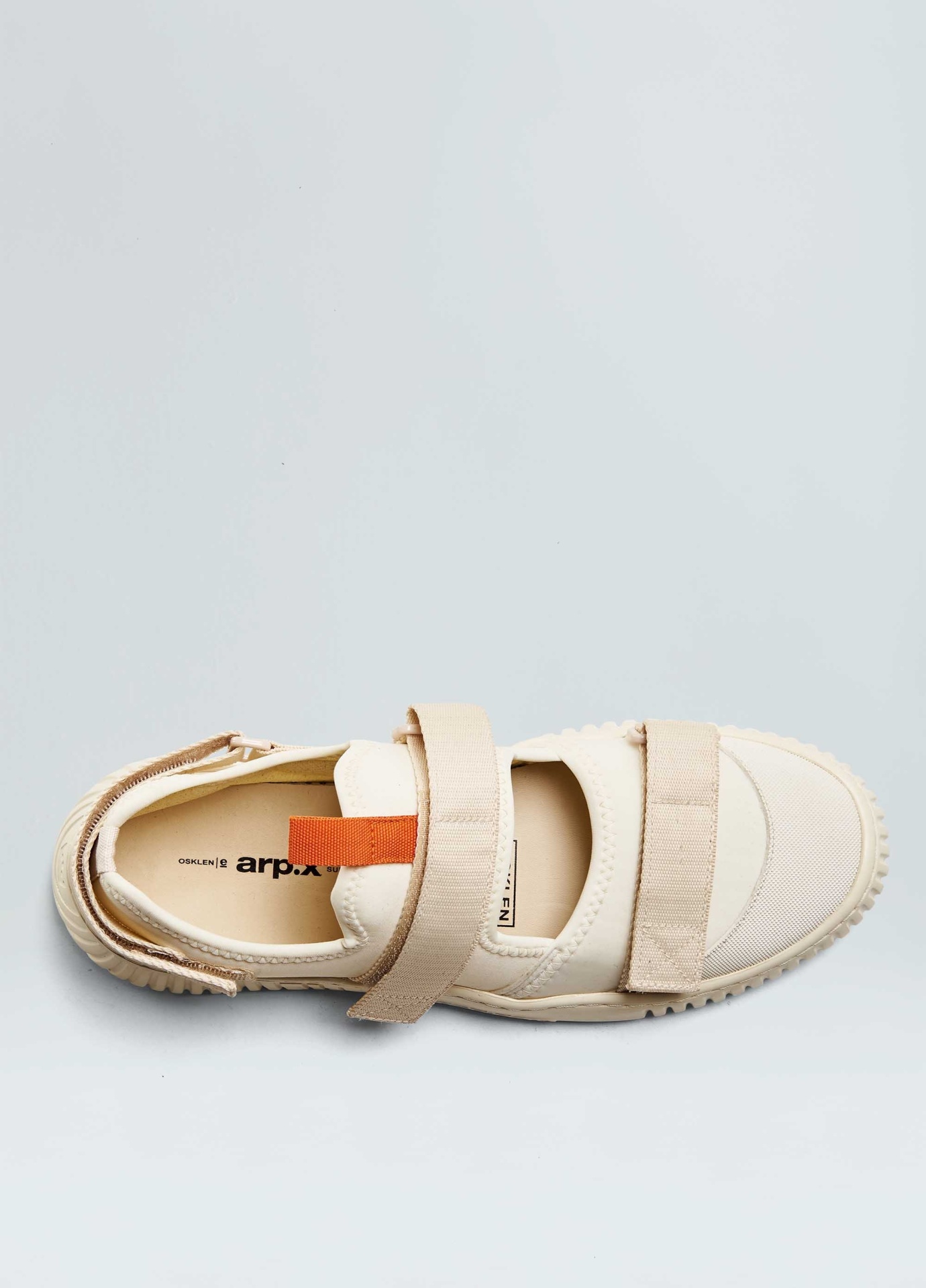 Tênis Arp(X) em material elástico com recorte de borracha texturizada no bico. Modelo sem amarração com fitas de regulagem e velcro. Detalhe vazado no cabedal. Forro esportivo. Palmilha em couro bovino. Solado de EVA costurado ao cabedal com design exclusivo Osklen, produzido com mais de 70% de carbono de base biológica, oriundo da cana de açúcar plantada e cultivada no Brasil. Produto Regenerate Life.