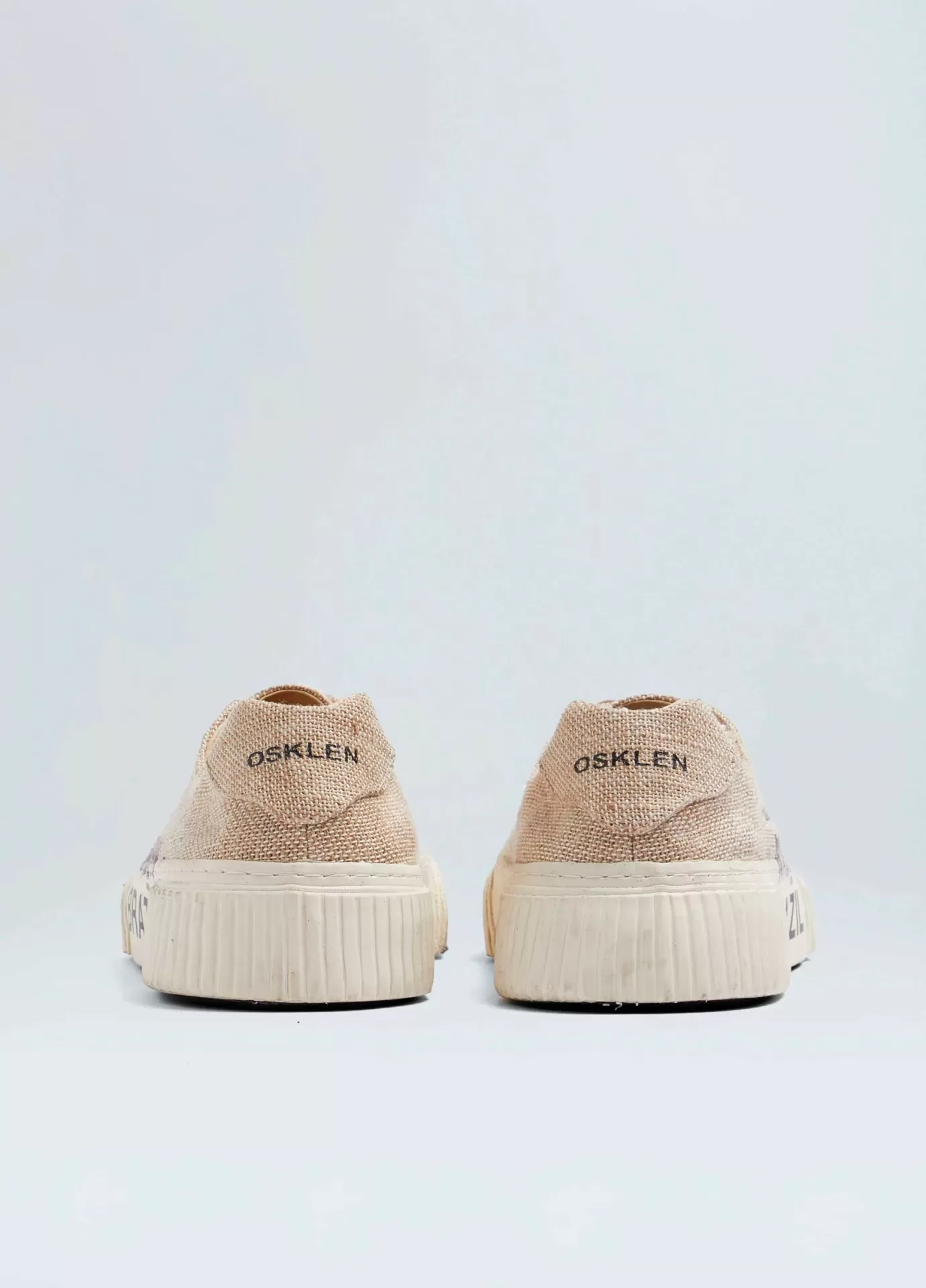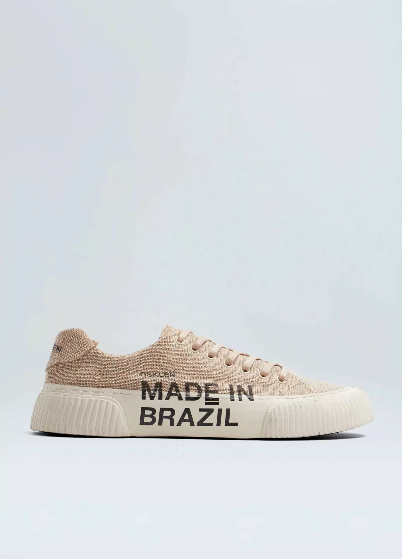 Tênis vulcanizado em juta da amazônia. silk osklen made in brazil na lateral externa. modelo de amarração com cadarço de algodão. forro e palmilha em couro bovino. solado flatform de borracha costurado ao cabedal com design exclusivo osklen, produzido com no mínimo 10% de material reciclado. esse produto carrega as 3 bandeiras de sustentabilidade da marca: regenerate life, respect our people, e re-design waste.