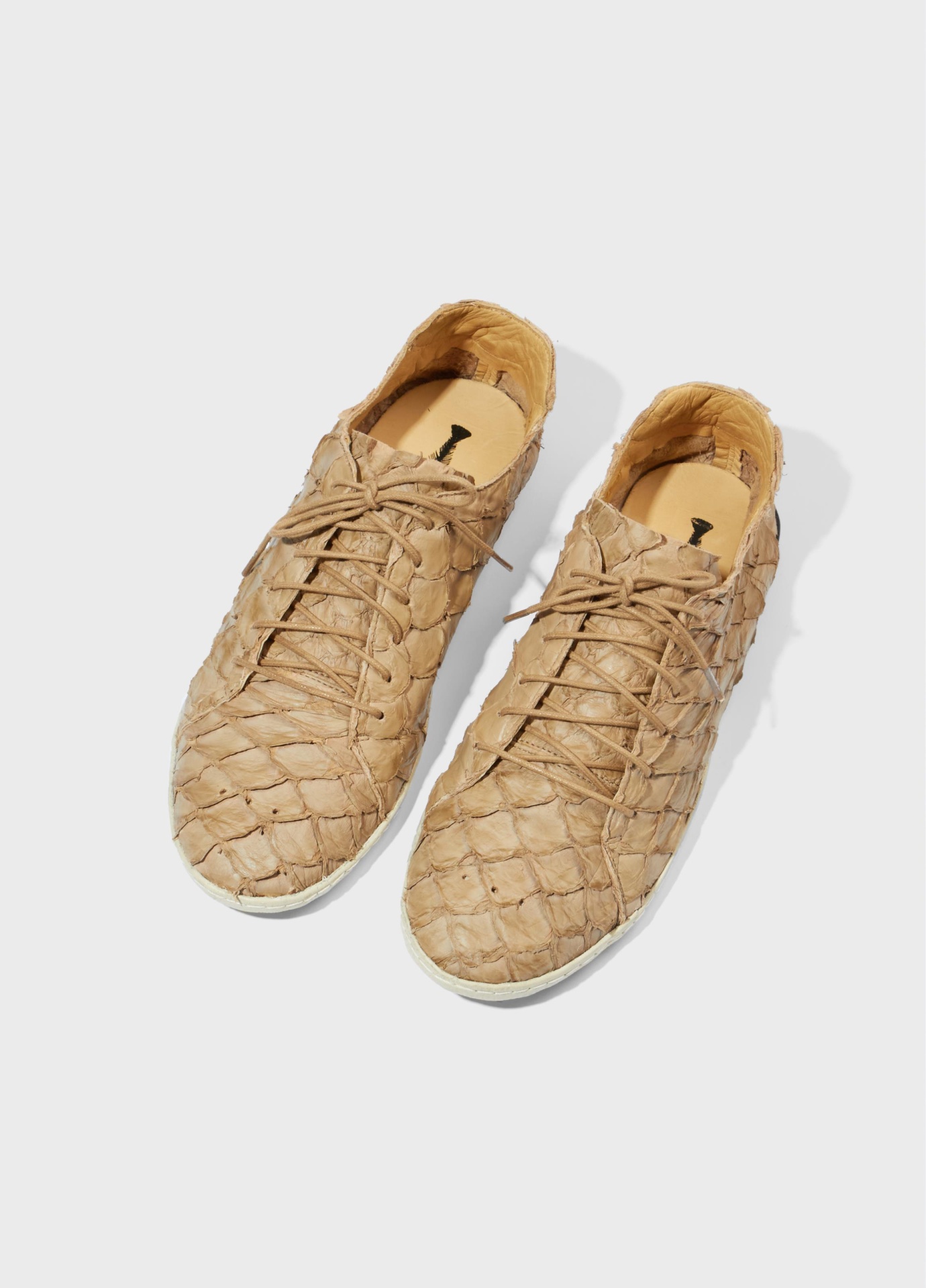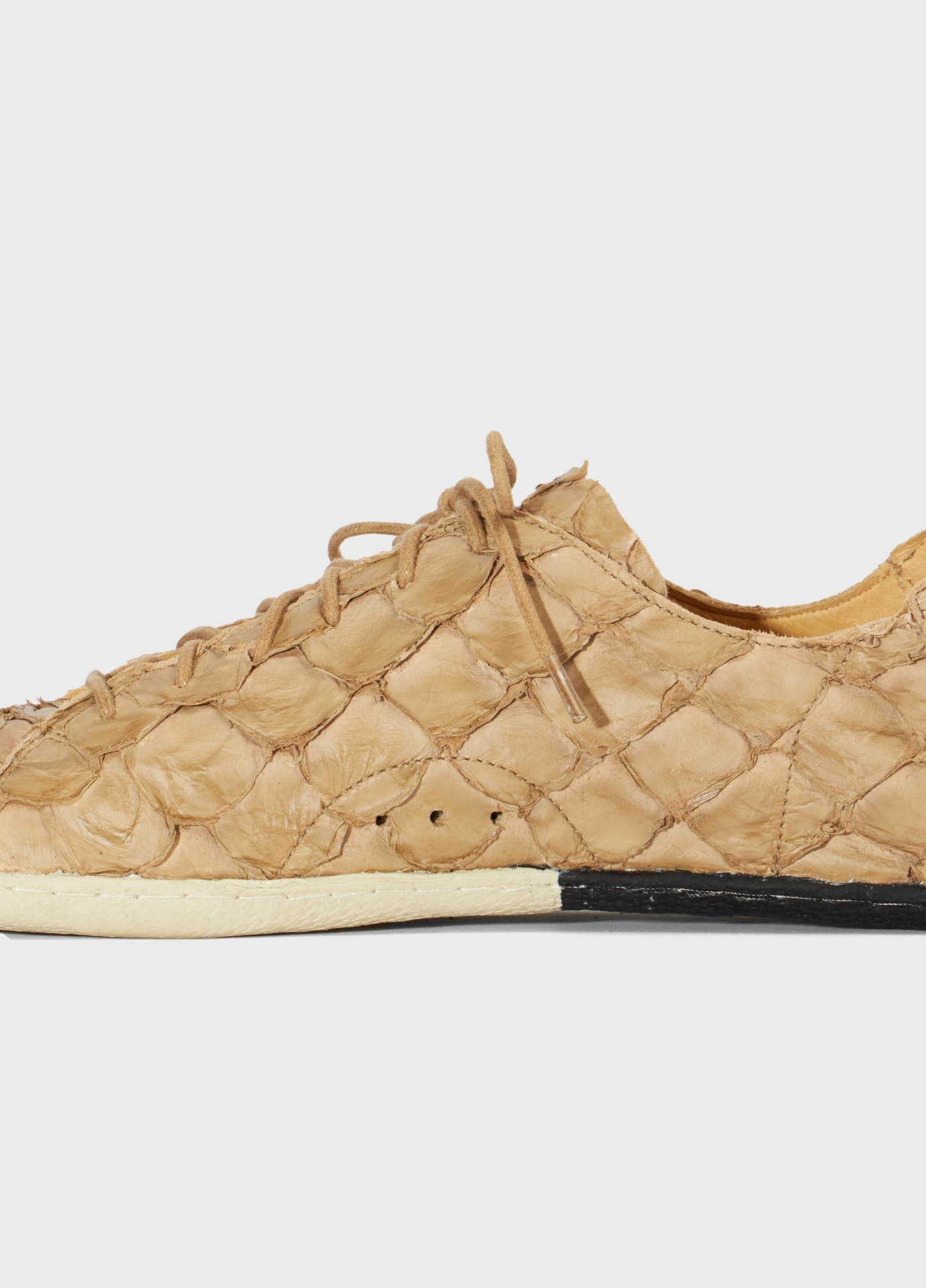 Tênis handmade em couro de pirarucu com visual desestruturado. produto regenerate lif