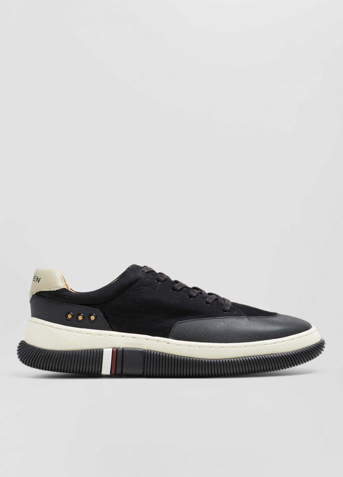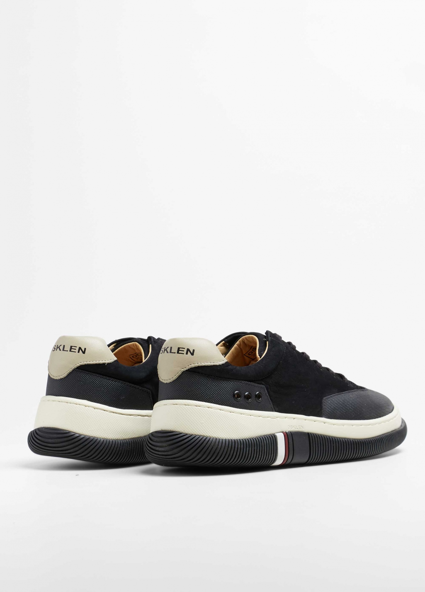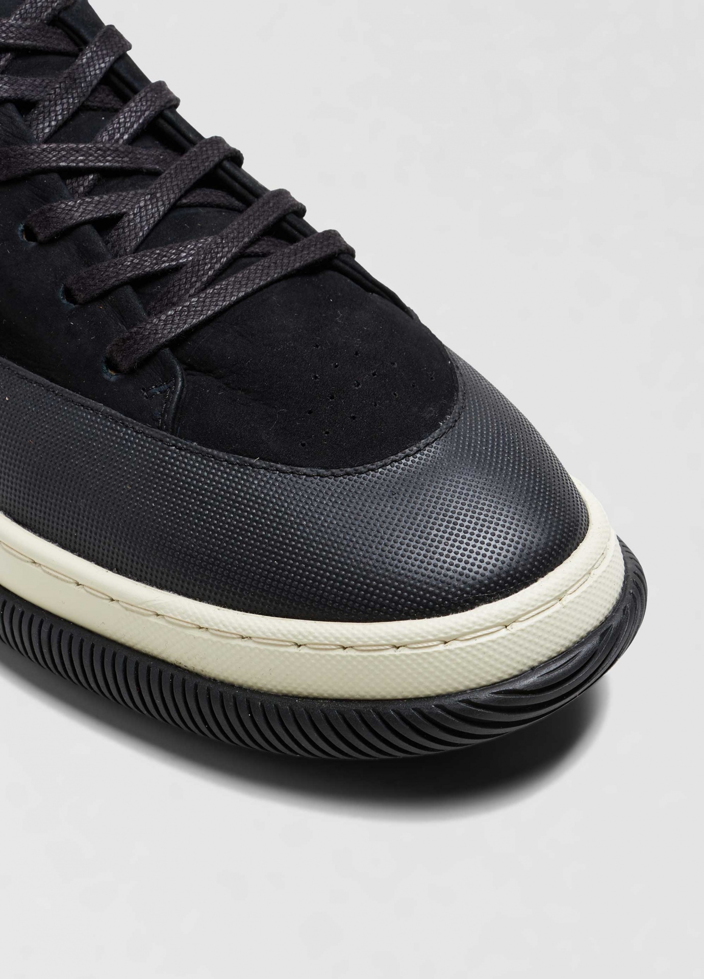 Tênis hybrid em couro bovino com toque aveludado e recortes de borracha texturizada no bico e na traseira. Modelo de amarração com cadarço de algodão. Forro e palmilha em couro bovino. Solado de eva e borracha costurado ao cabedal com design exclusivo osklen. Produto re-design waste. A partir do inverno 21 o solado passou a ser produzido com no mínimo 10% de material reciclado.