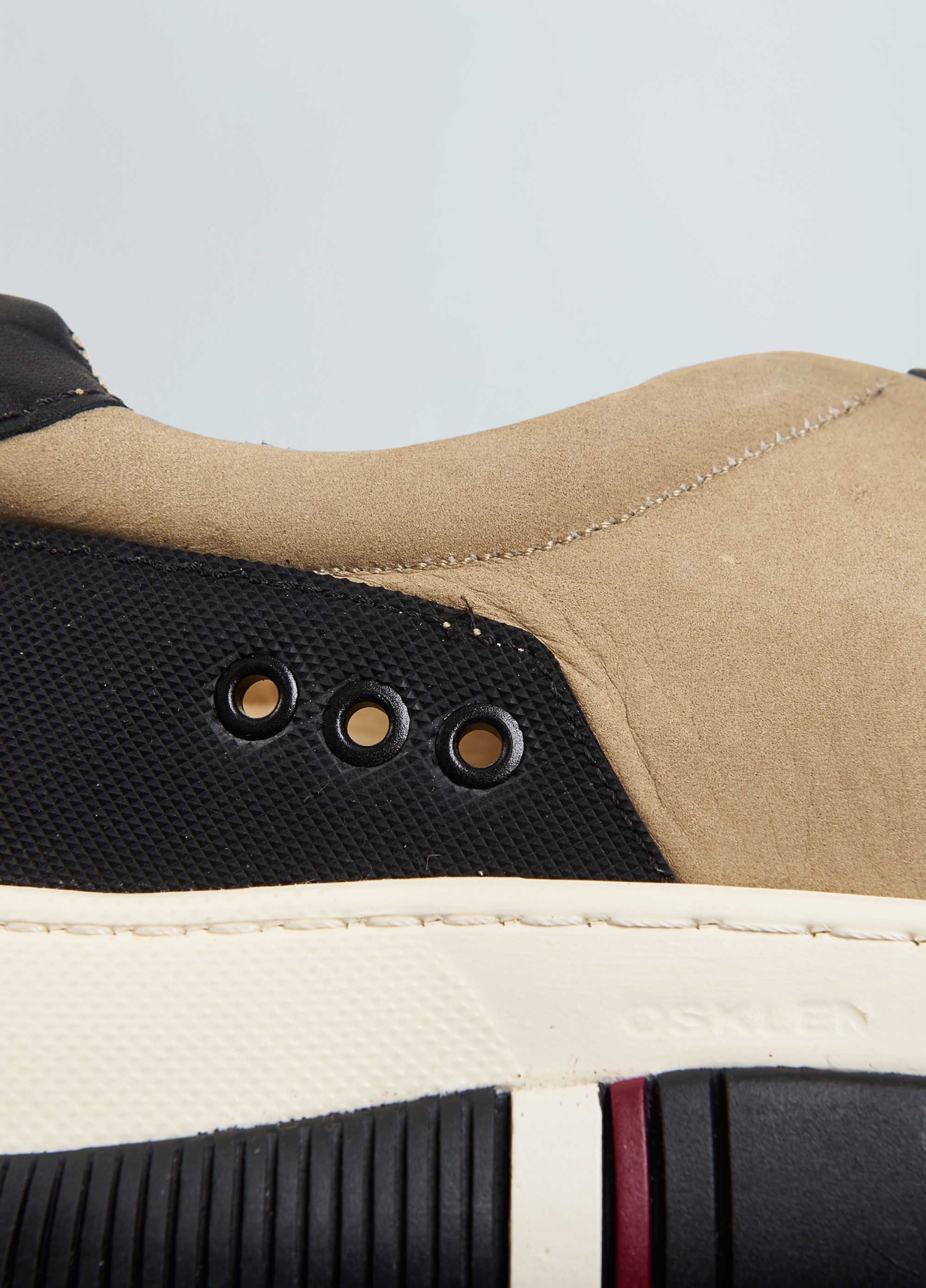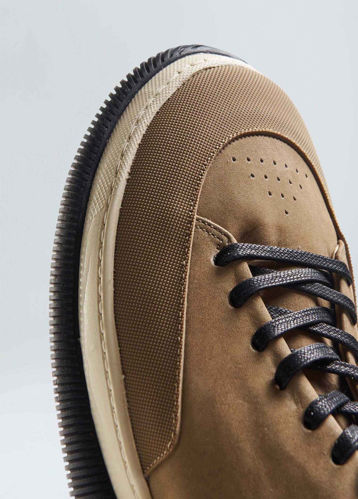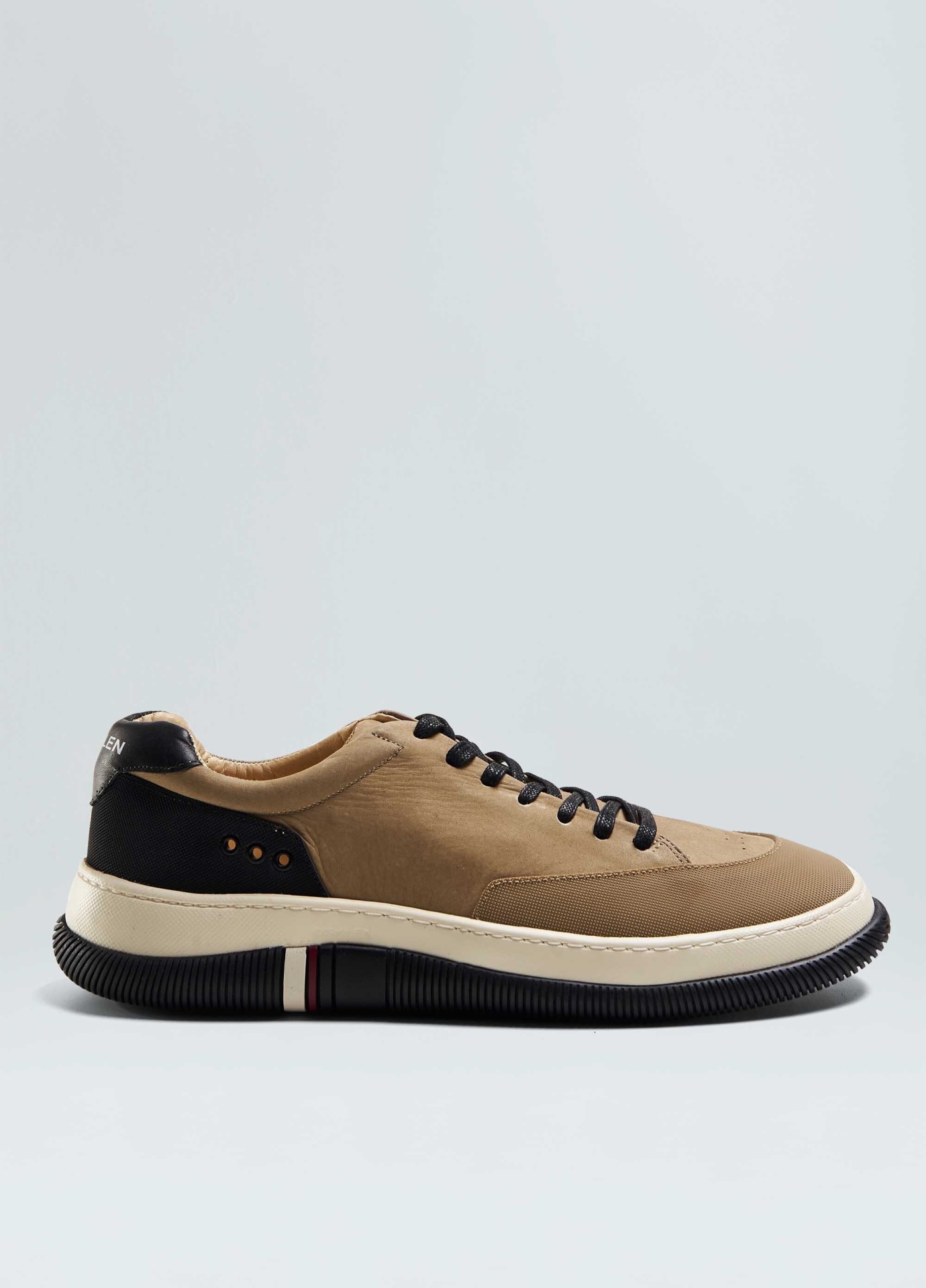 Info Tênis Hybrid em couro bovino com toque aveludado e recortes de borracha texturiz