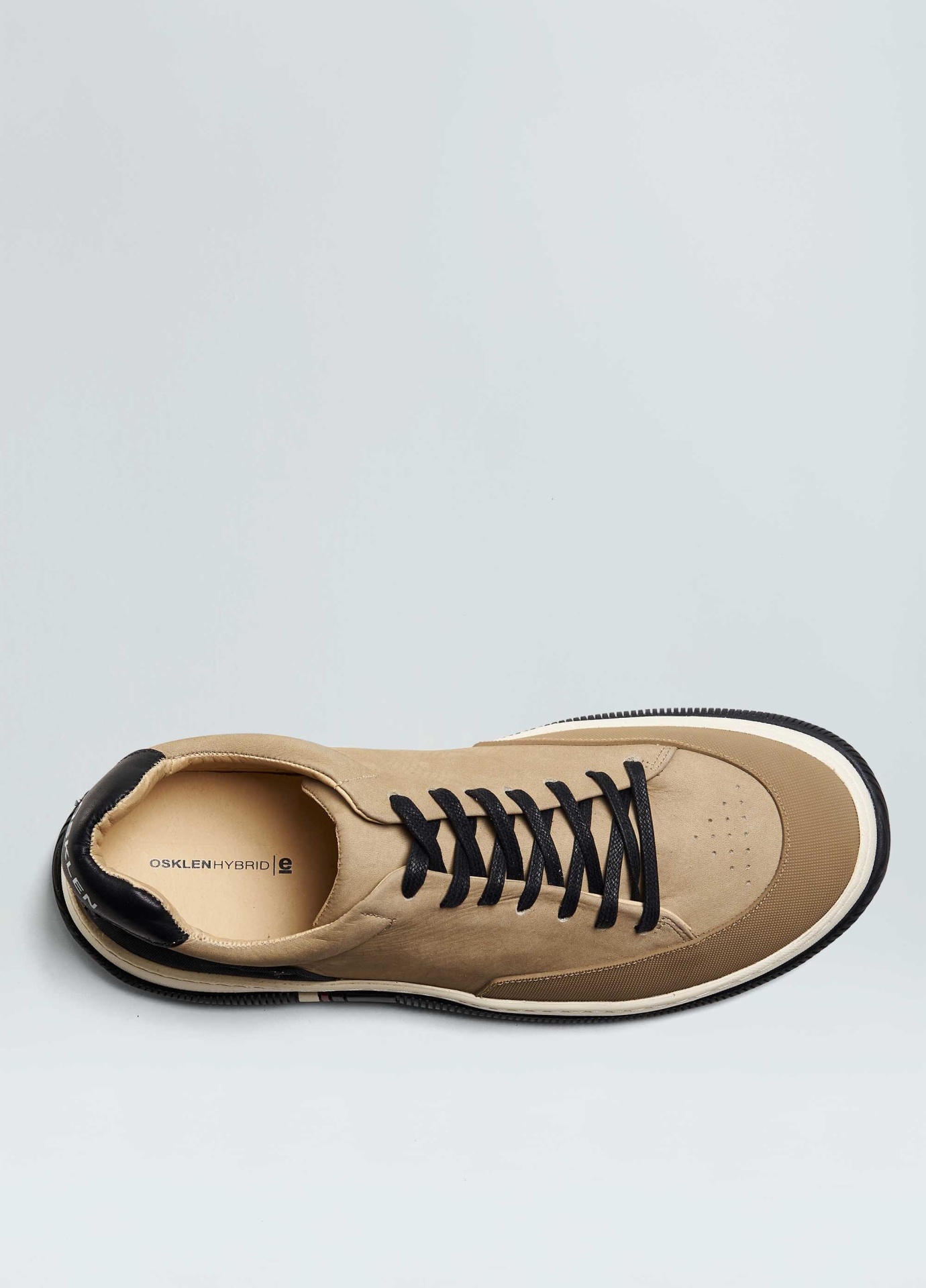 Tênis Hybrid em couro bovino com toque aveludado e recortes de borracha texturizada no bico e na traseira. Modelo de amarração com cadarço de algodão. Forro e palmilha em couro bovino. Solado de EVA e borracha costurado ao cabedal com design exclusivo Osklen. Produto Re-Design Waste. A partir do Inverno 21 o solado passou a ser produzido com no mínimo 10% de material reciclado.