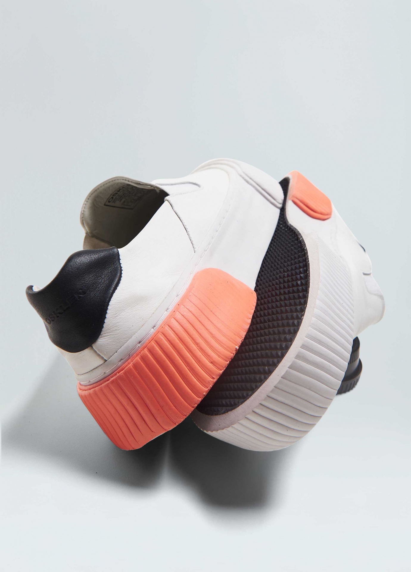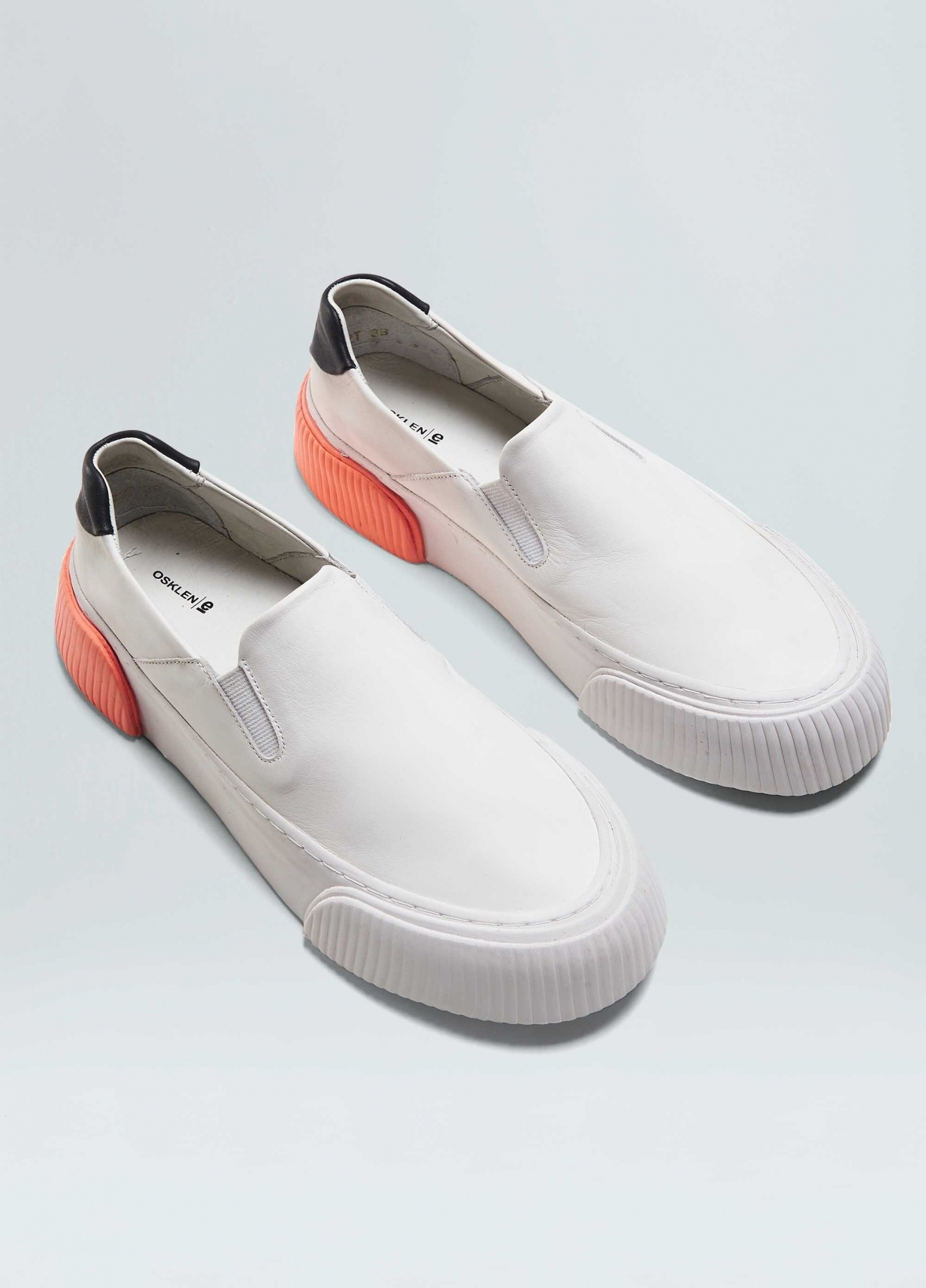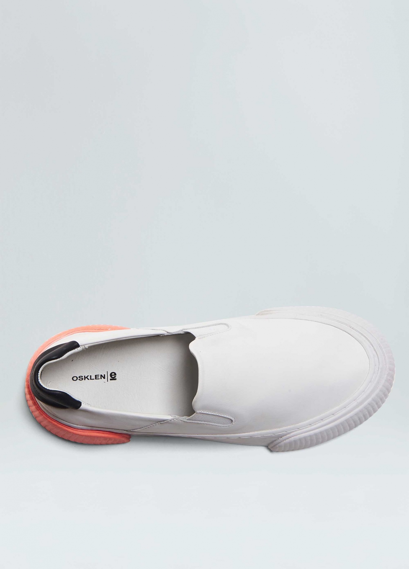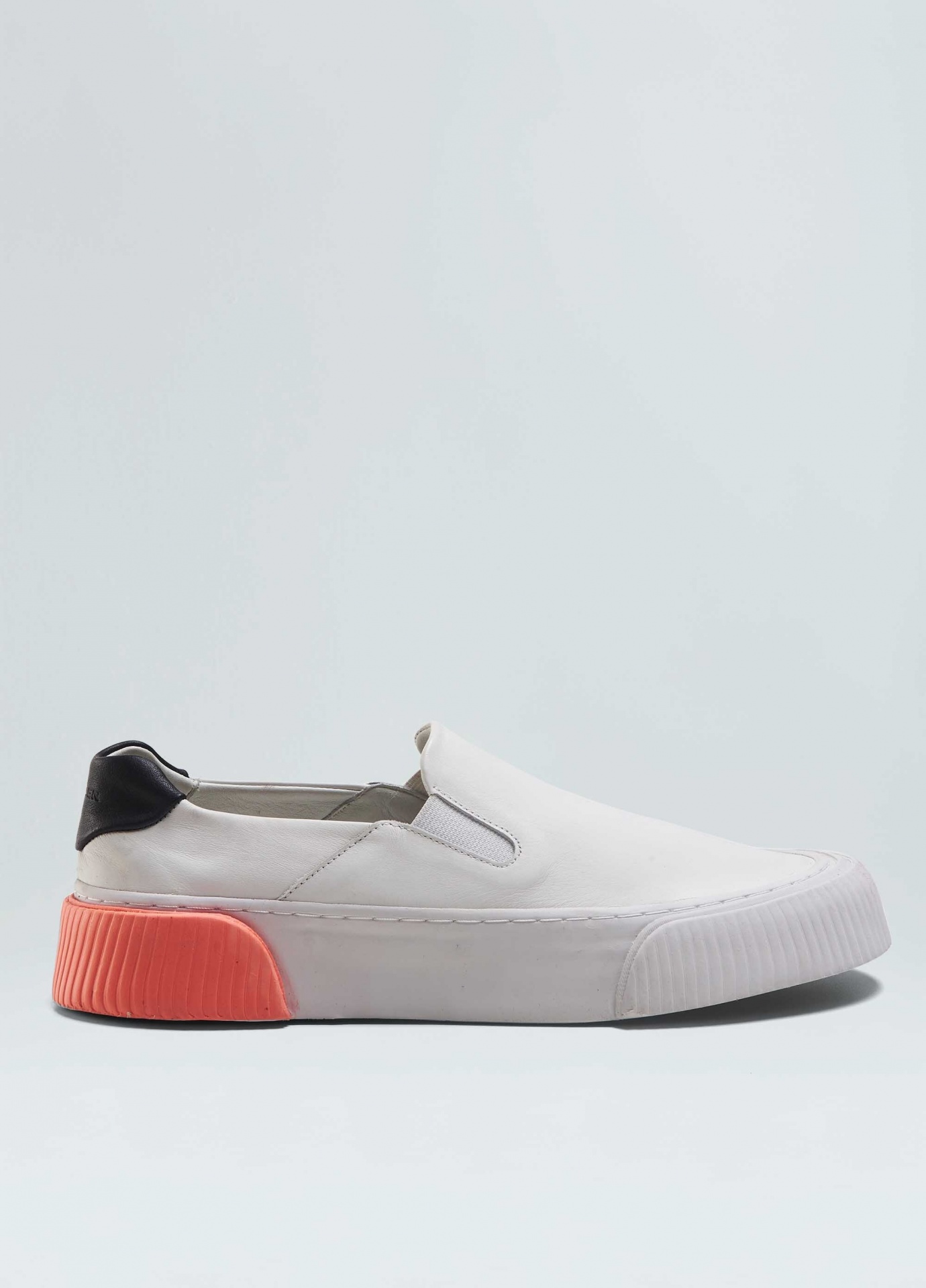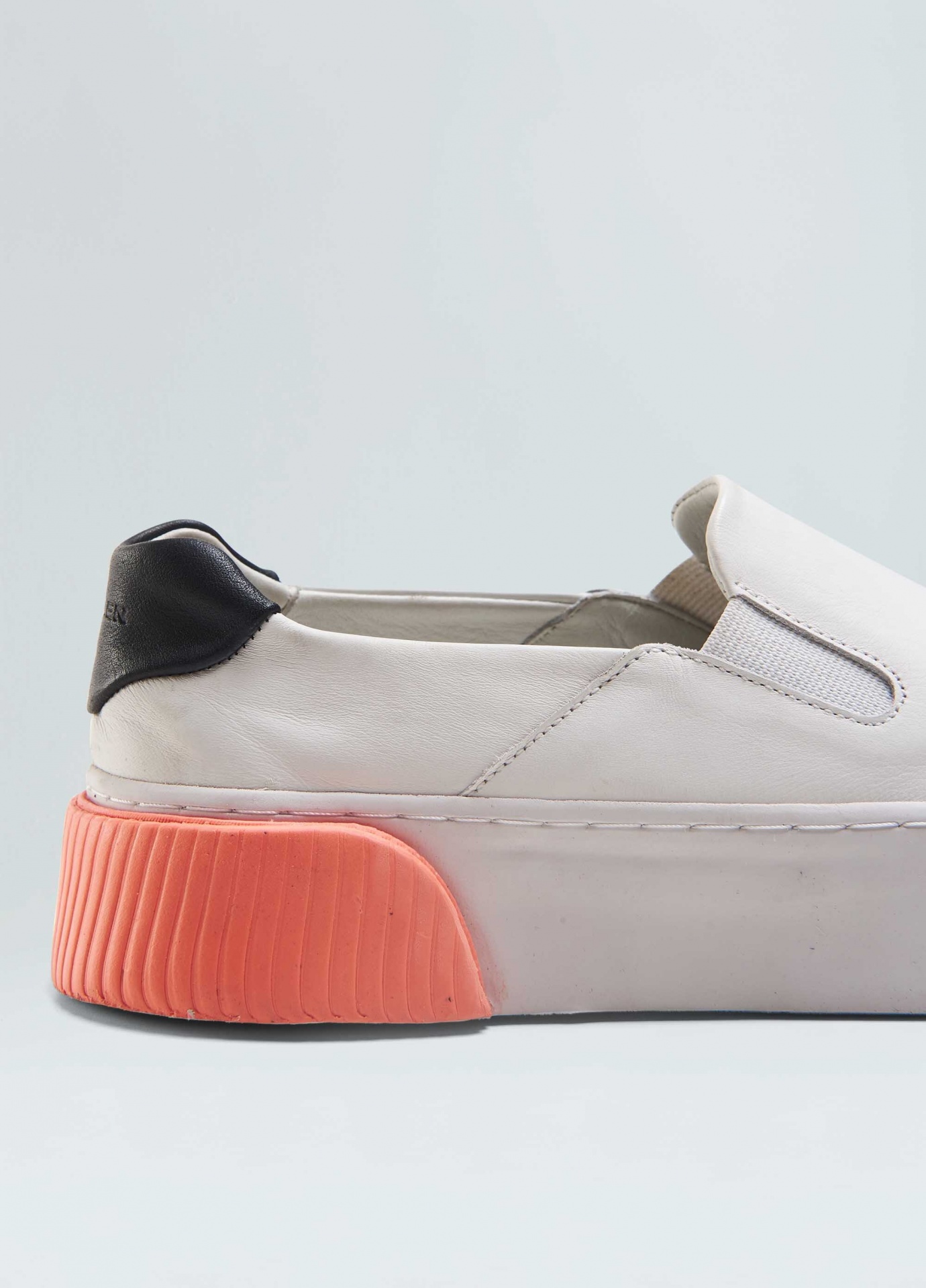 Tênis vulcanizado em couro bovino. Modelo slip on com elásticos para facilitar o calce. Forro e palmilha em couro bovino. Solado flatform de borracha costurado ao cabedal com sobreposições de texturas diferentes no bico e na traseira. Produto Re-Design Waste. A partir do Inverno 21 o solado passou a ser produzido com no mínimo 10% de material reciclado.
