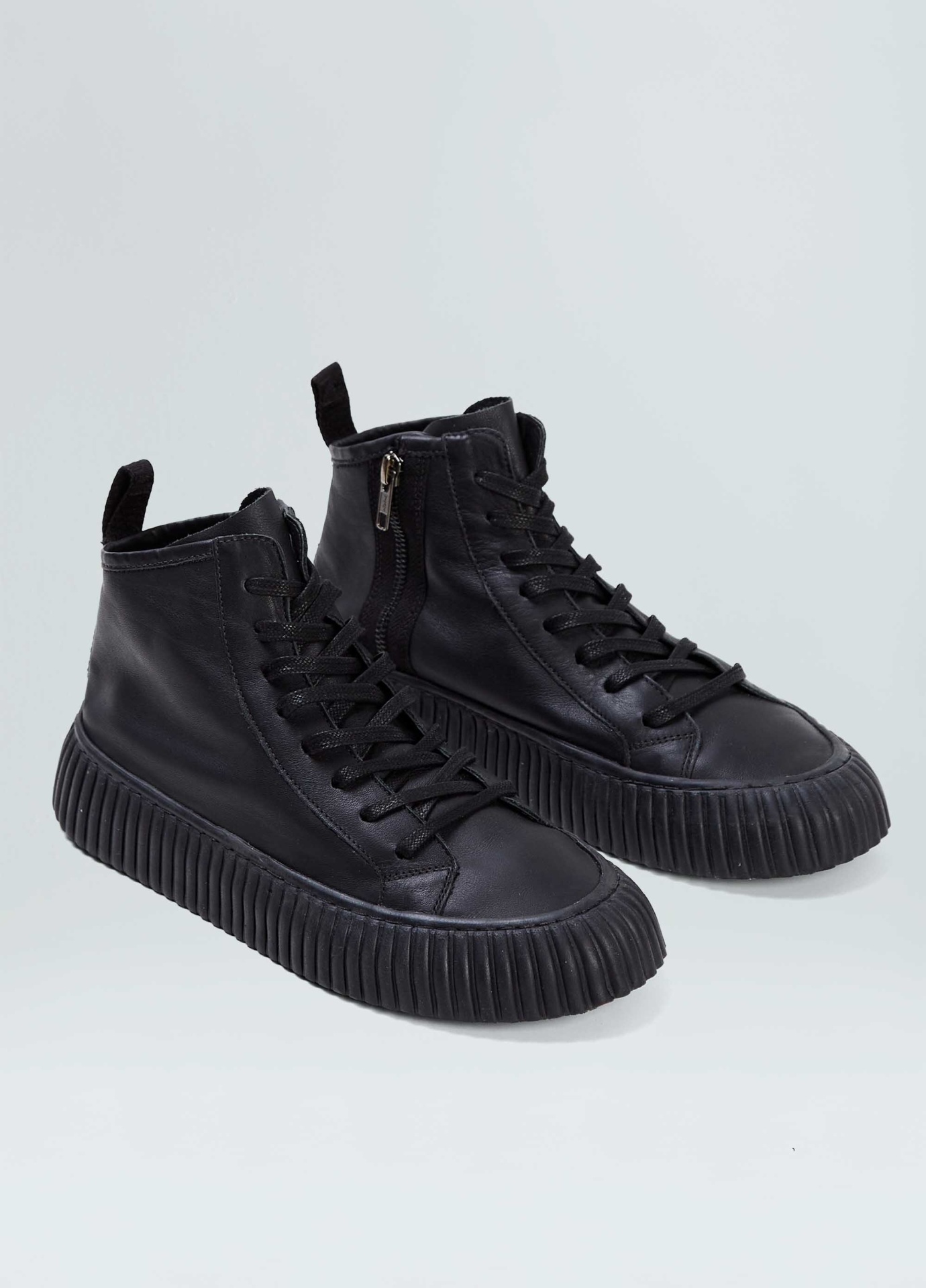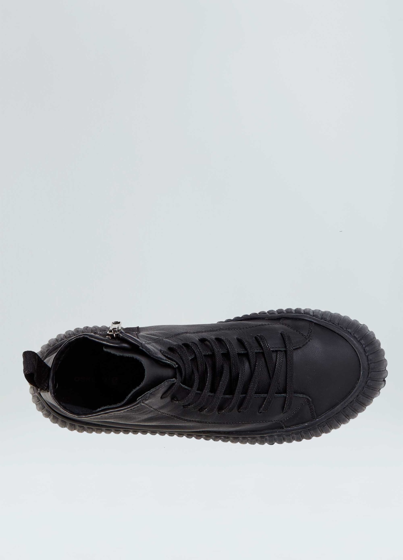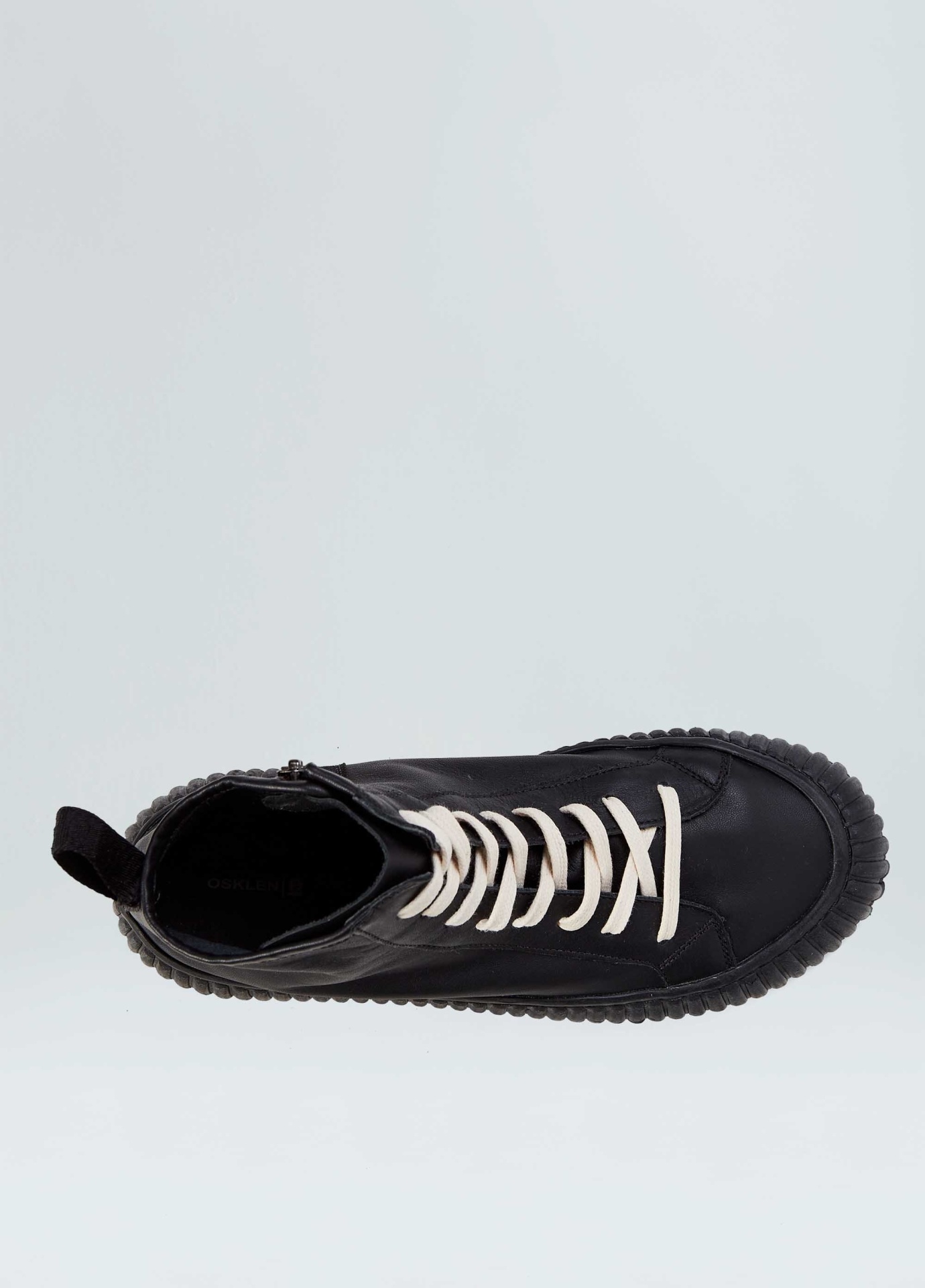 Tênis vulcanizado cano alto em couro bovino. Fita puxador personalizada osklen. Modelo de amarração com cadarço de algodão e zíper na lateral interna para facilitar o calce. Forro e palmilha em couro bovino. Solado flatform de borracha costurado ao cabedal com design exclusivo osklen, produzido com no mínimo 10% de material reciclado. Produto re-design waste.