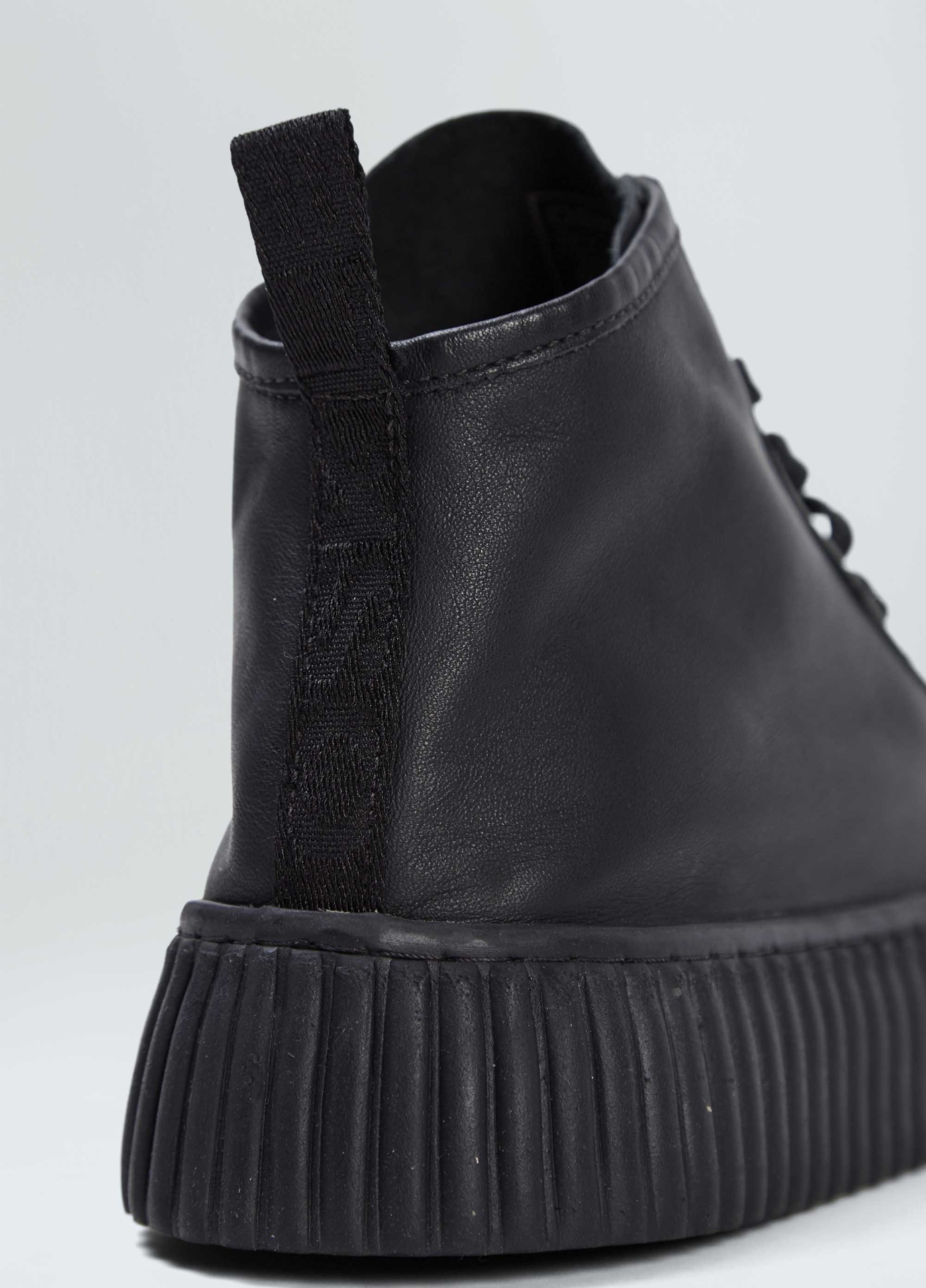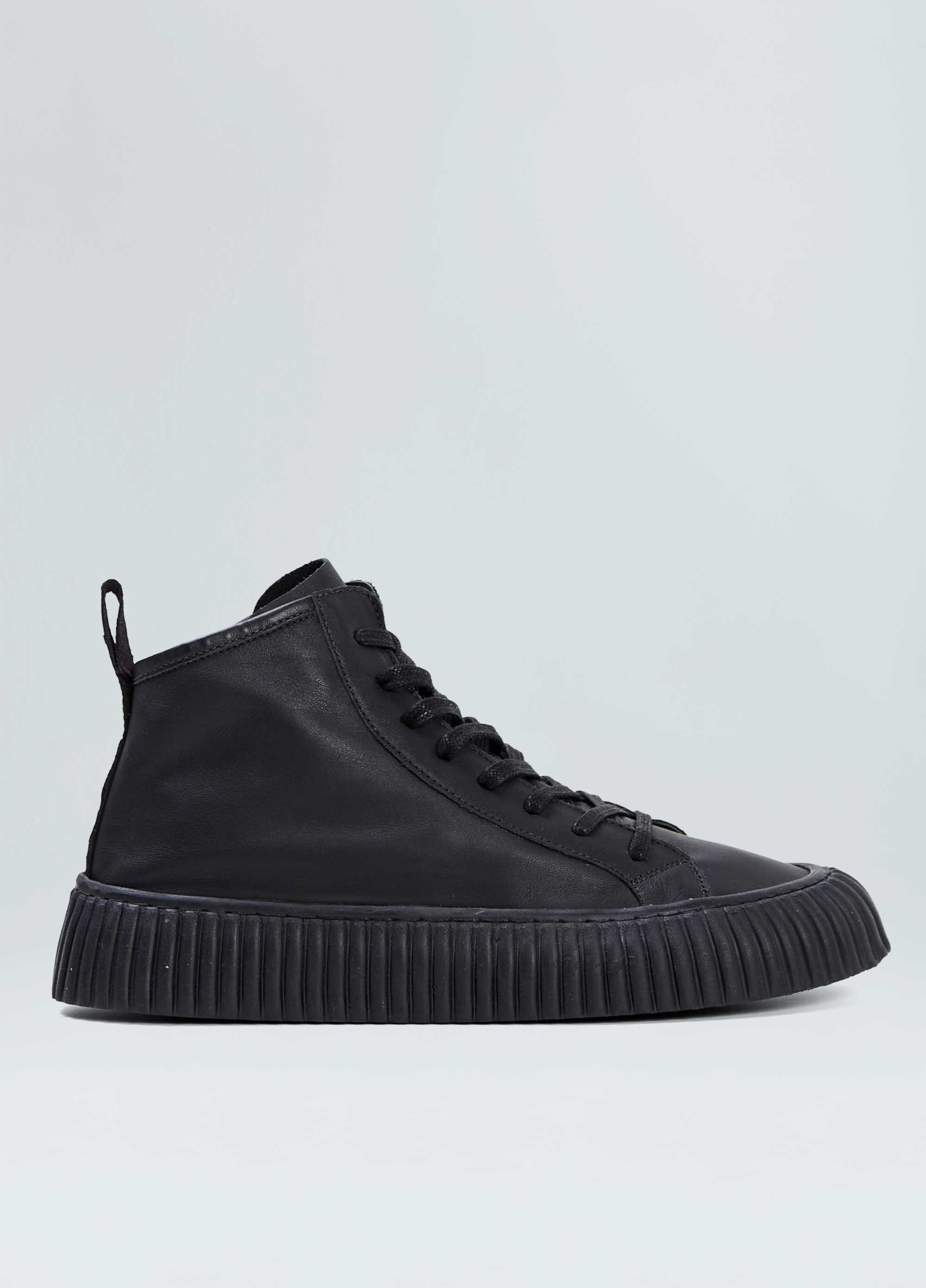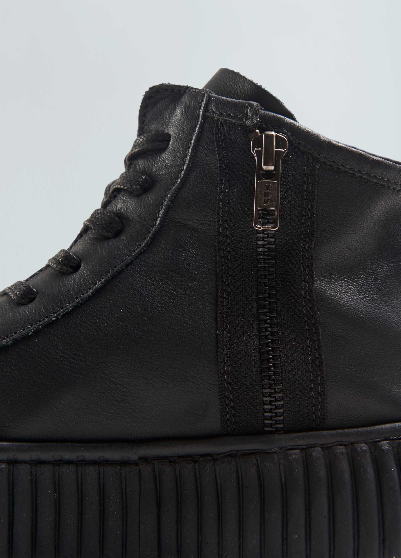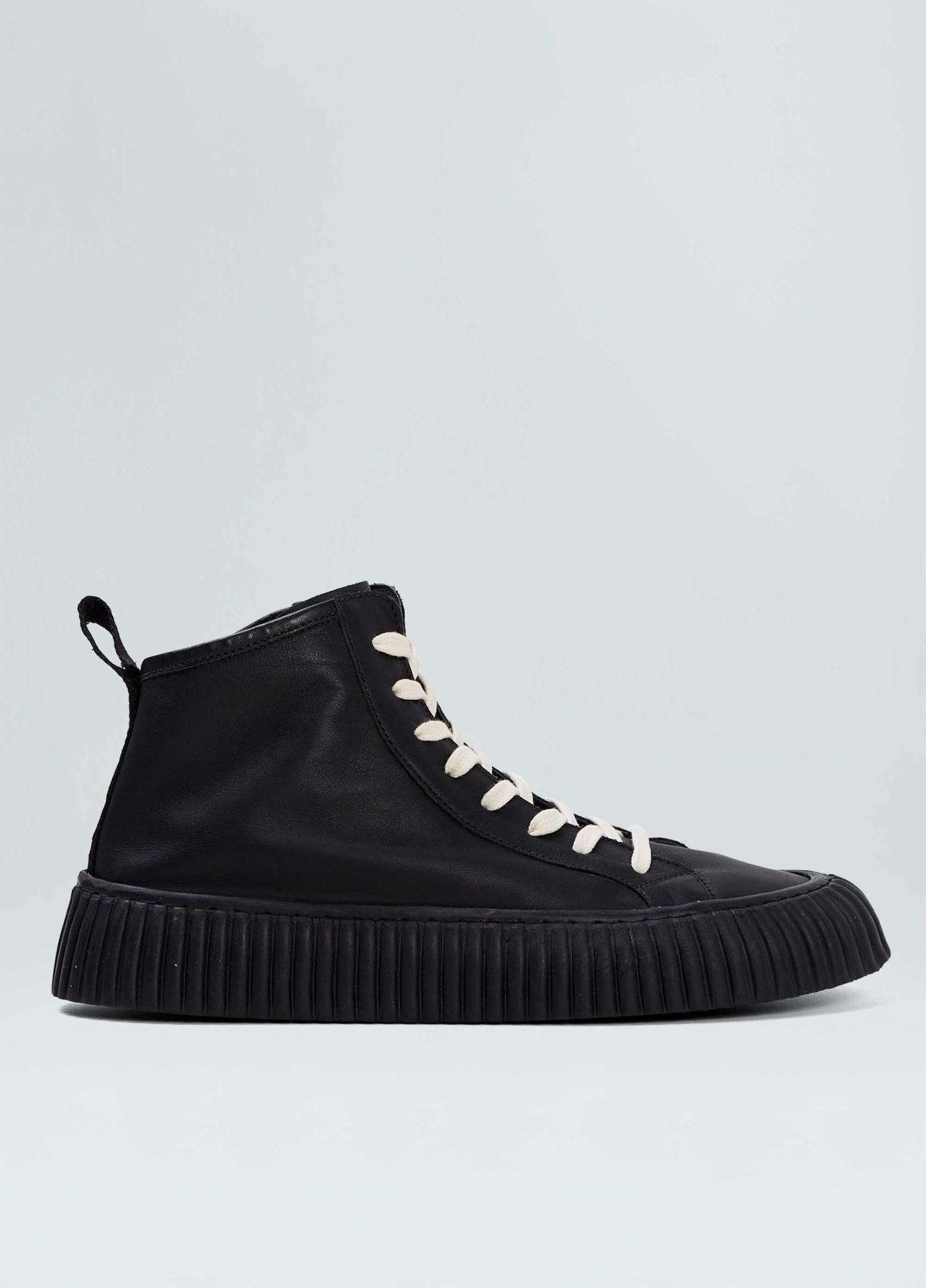 Tênis vulcanizado cano alto em couro bovino. Fita puxador personalizada osklen. Modelo de amarração com cadarço de algodão e zíper na lateral interna para facilitar o calce. Forro e palmilha em couro bovino. Solado flatform de borracha costurado ao cabedal com design exclusivo osklen, produzido com no mínimo 10% de material reciclado. Produto re-design waste.