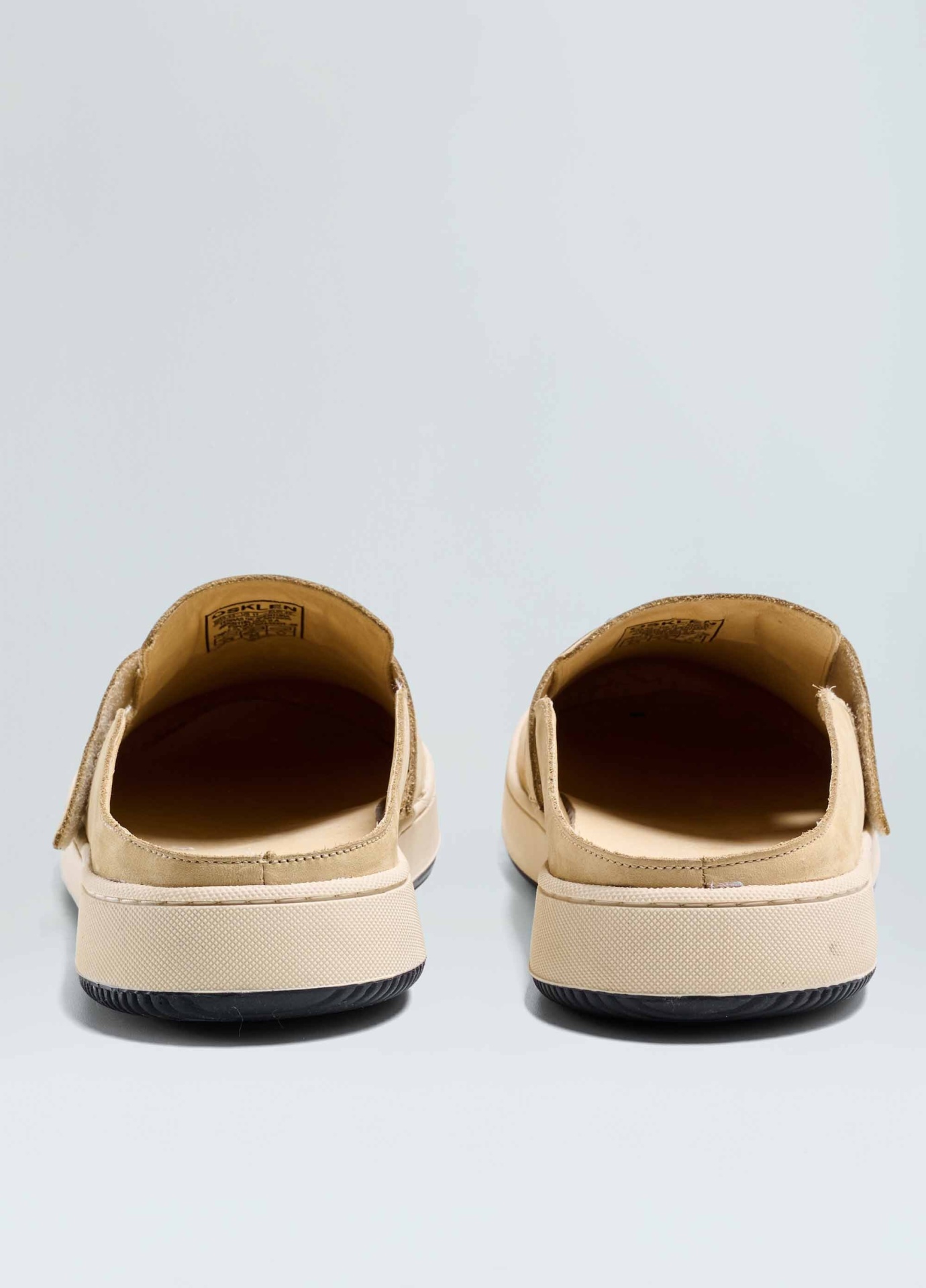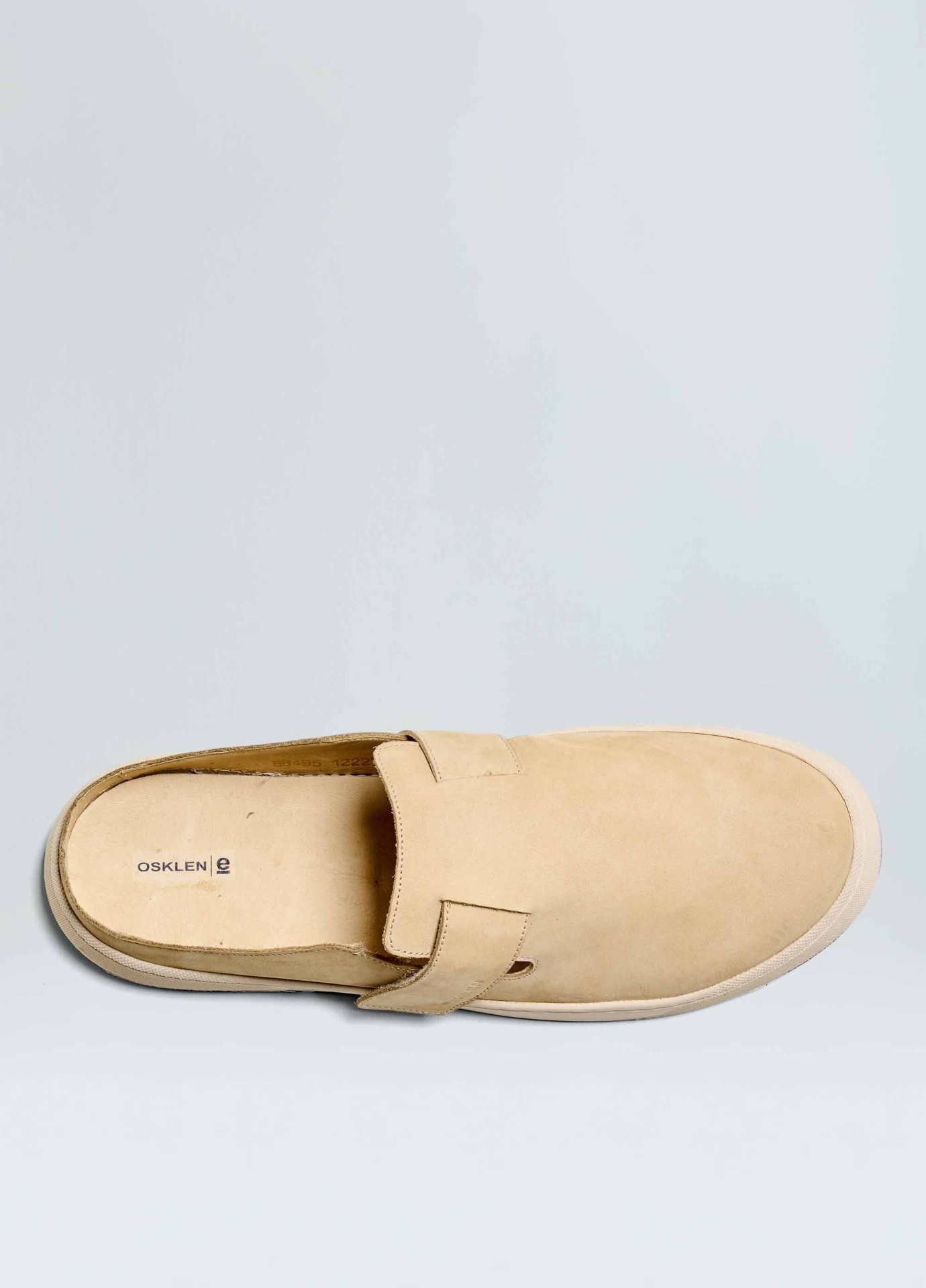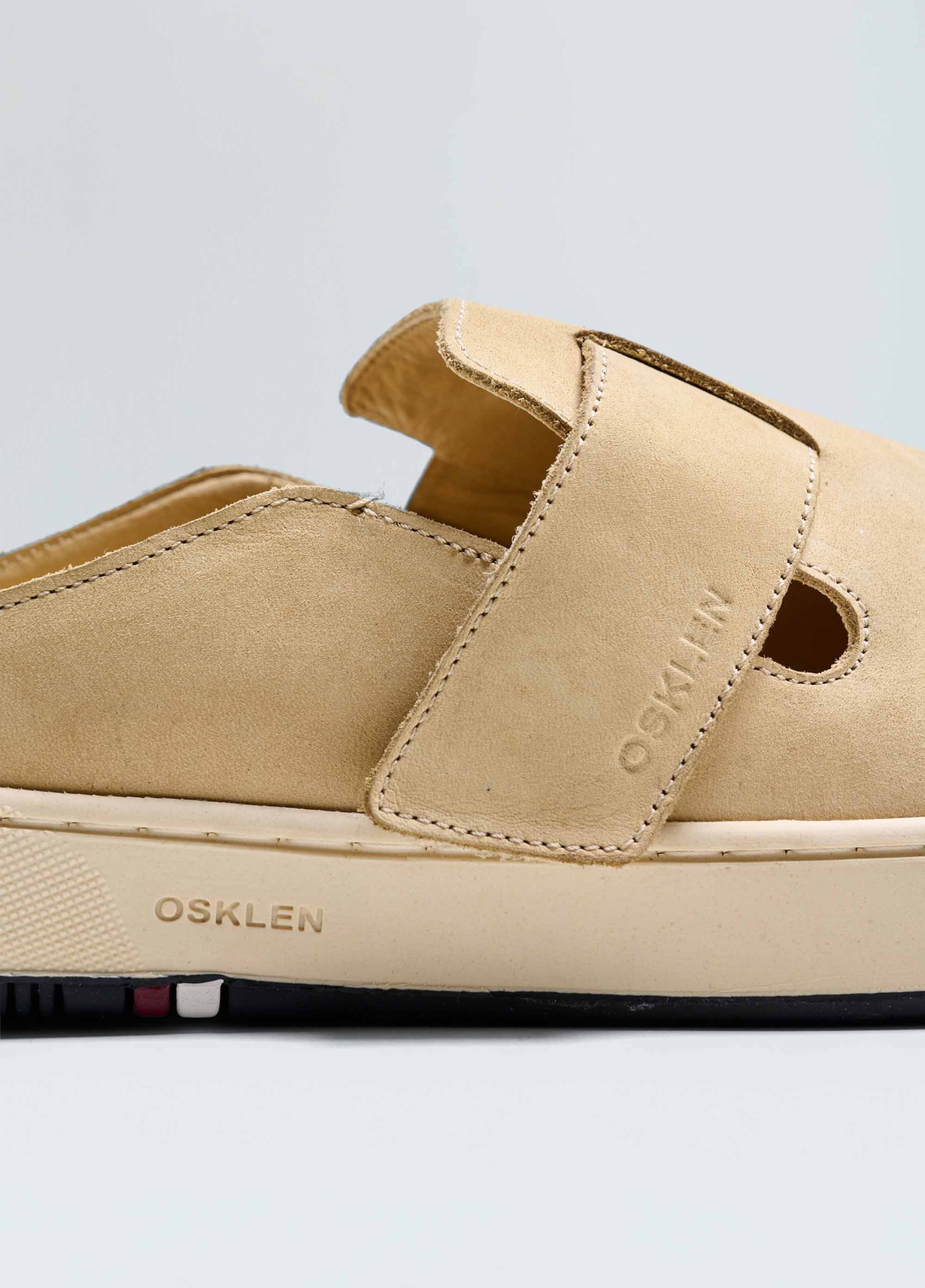 Tênis Soho em couro bovino com toque aveludado. Modelo mule slip-on com elástico e fechamento em velcro para facilitar o calce. Forro e palmilha em couro bovino. Solado de borracha costurado ao cabedal com design exclusivo Osklen, produzido com no mínimo 10% de material reciclado. Produto Re-Design Waste.