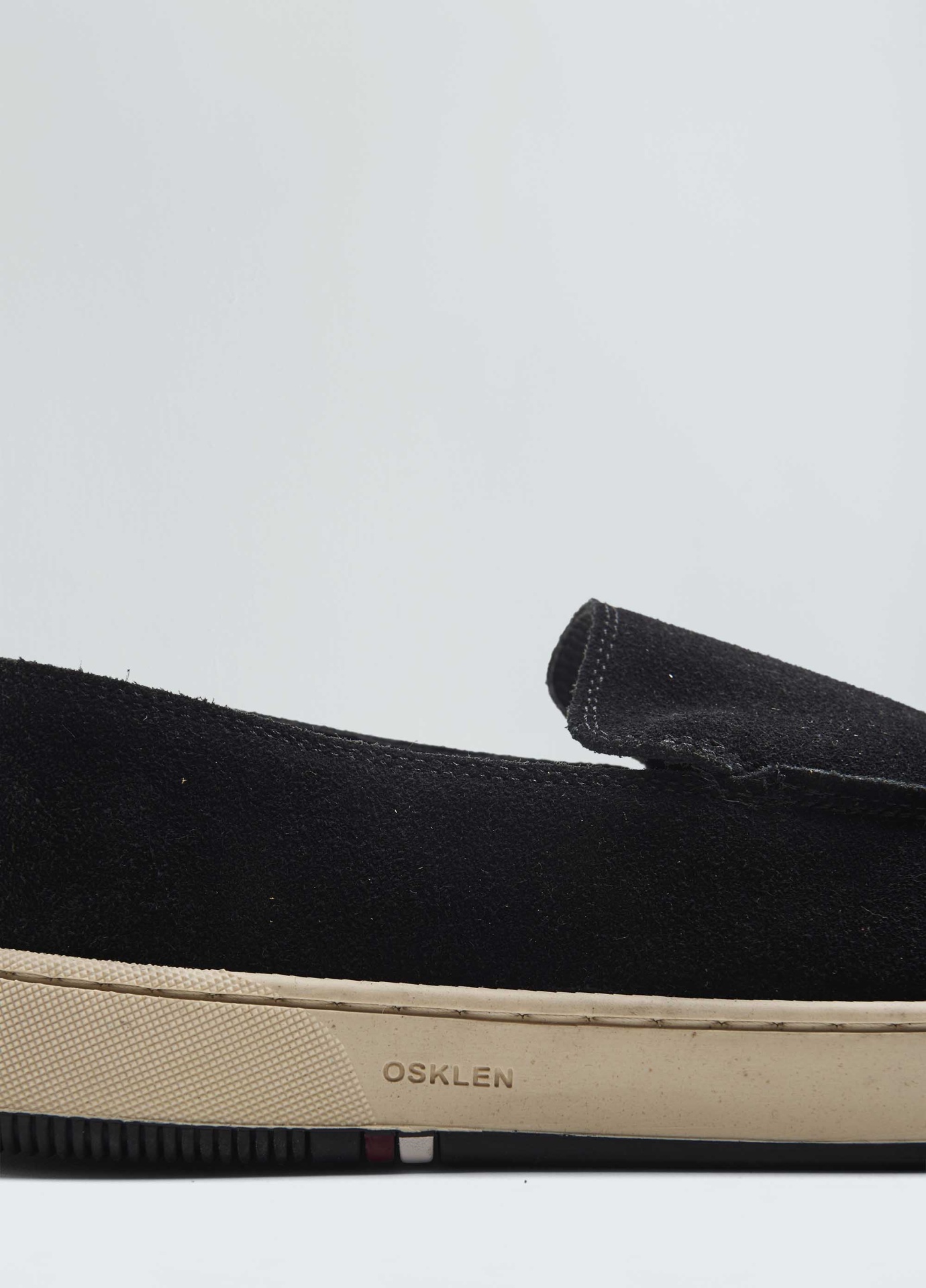 Tênis Soho em camurça bovina com detalhe de costura ao topo. Modelo slip on. Forro e palmilha em couro bovino. Solado de borracha costurado ao cabedal com design exclusivo Osklen, produzido com no mínimo 10% de material reciclado. Produto Re-Design Waste.