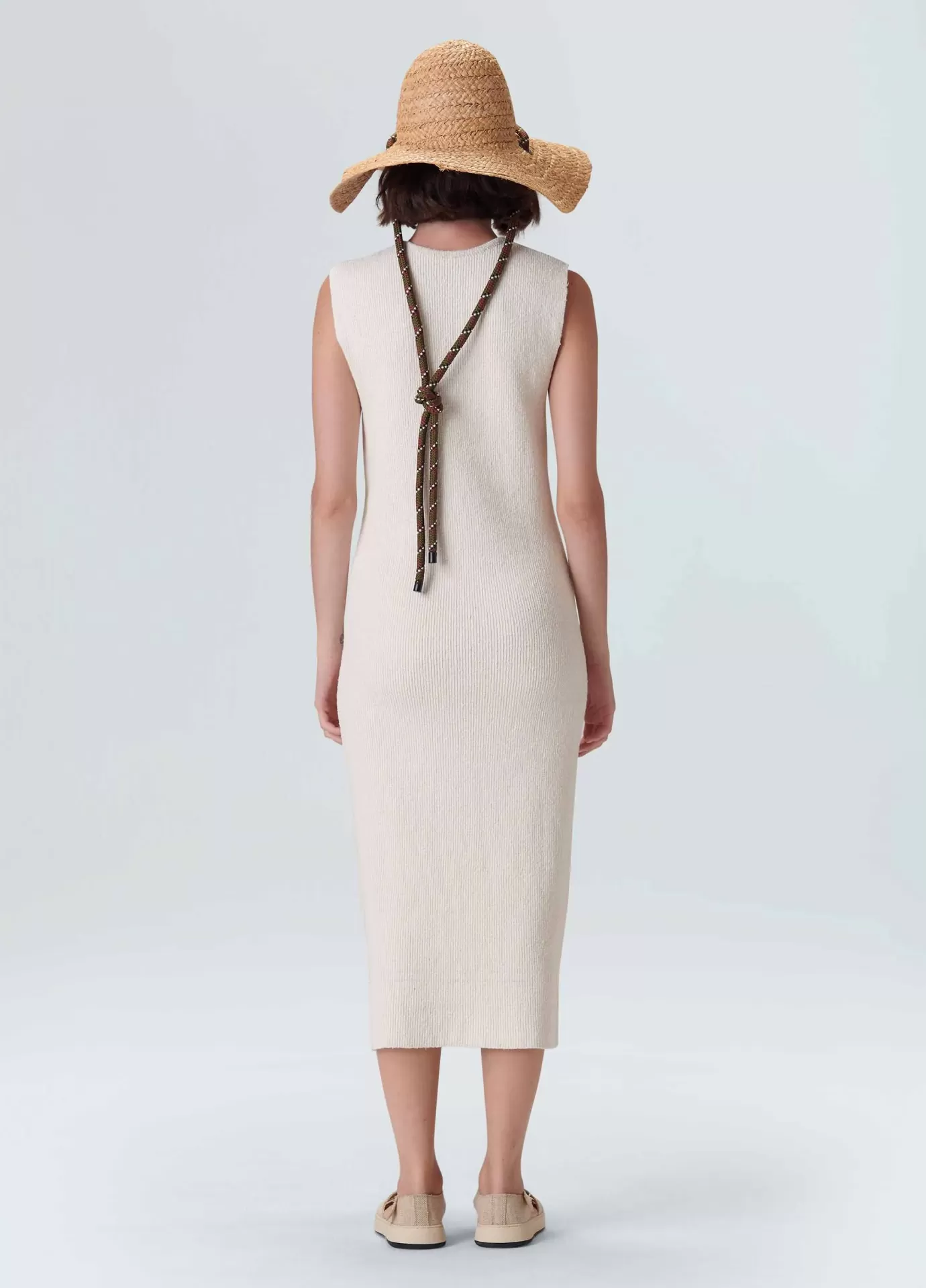 descriçãoVestido de tricot com fio de algodão reciclado. modelagem justa no corpo
