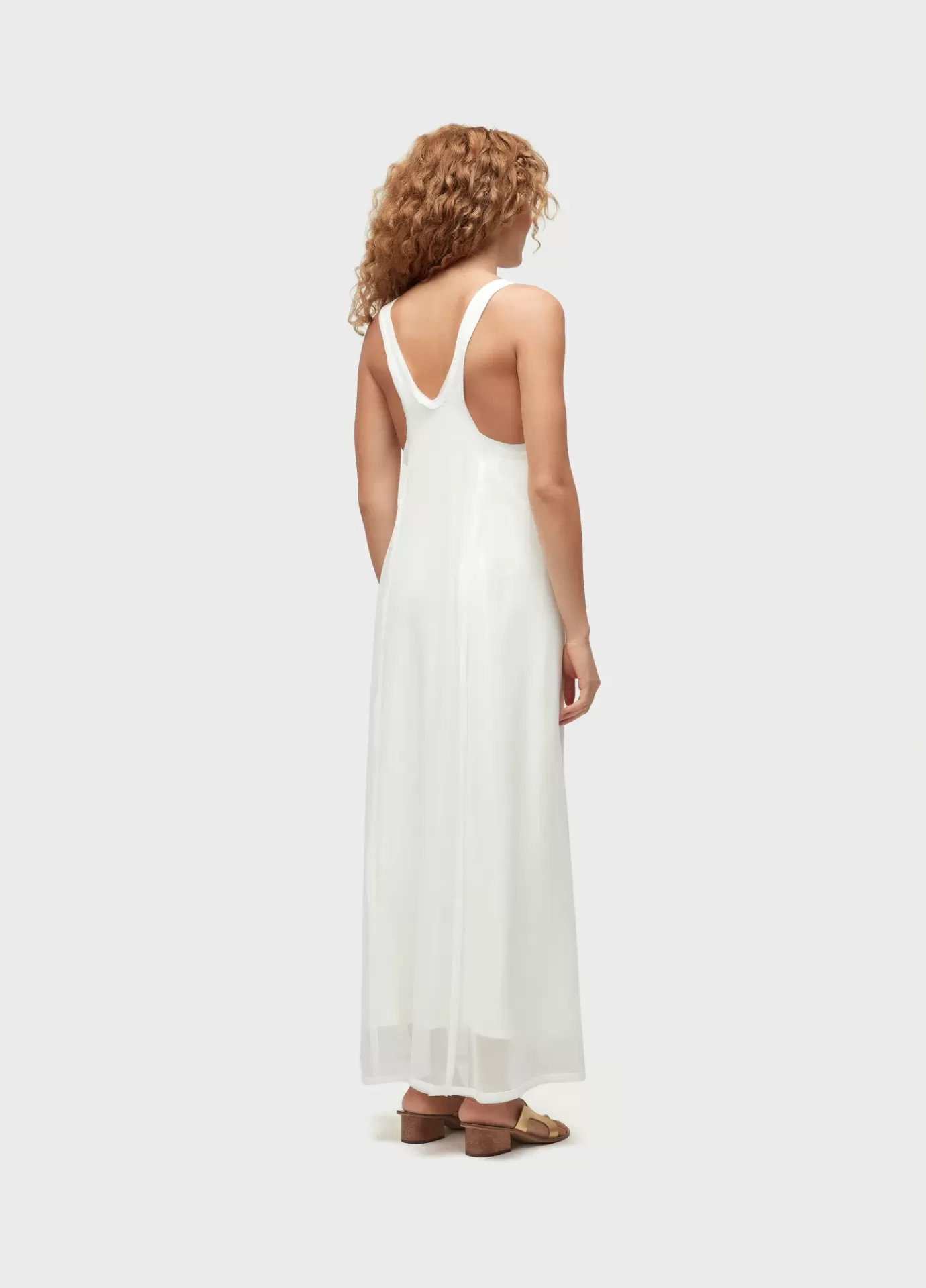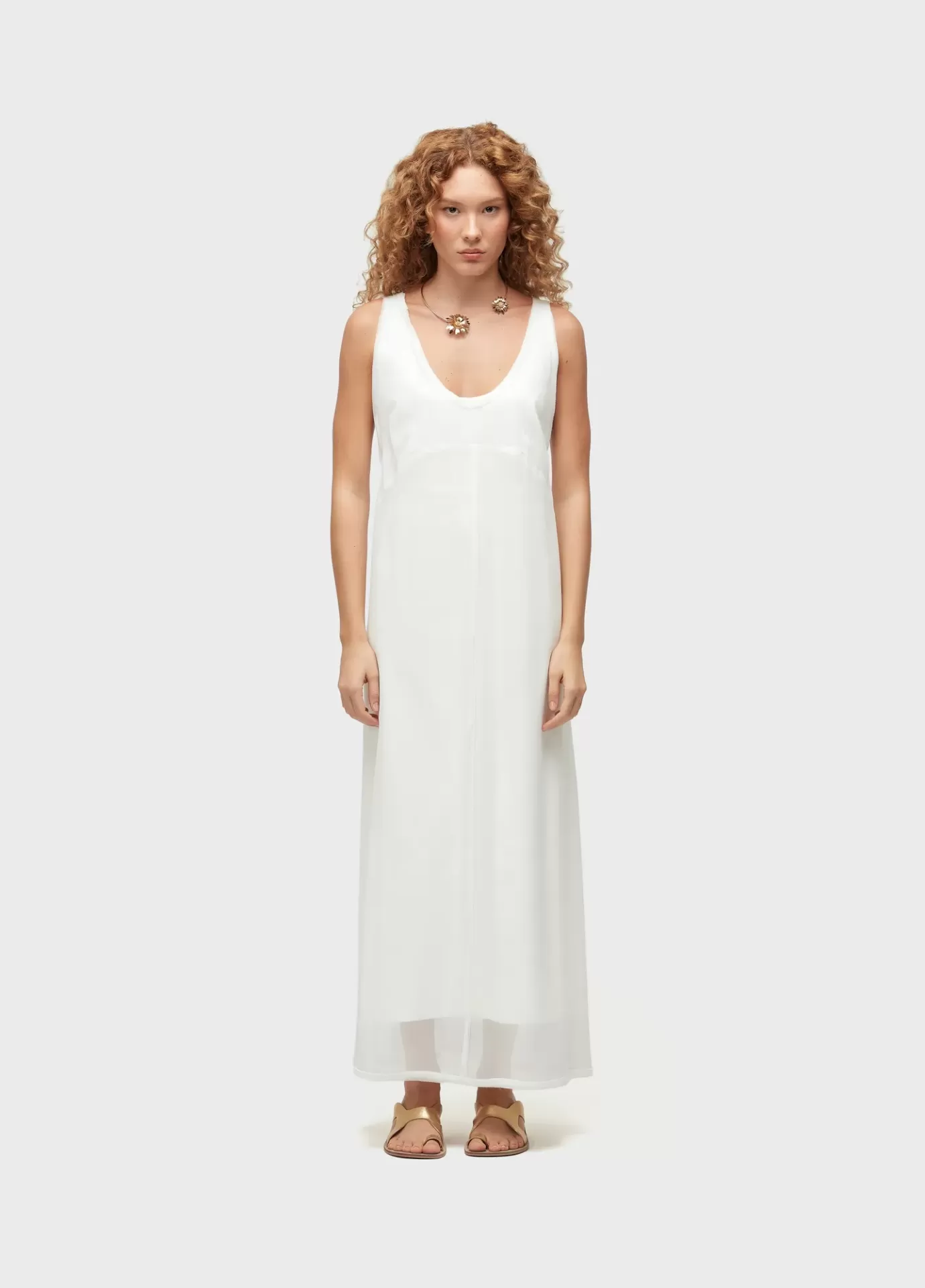 vestido longo feminino; ggt 100% viscose com combinação de malha; modelagem clássica com recorte na cintura, acabamentos em viés e um vestido de malha como combinação; caimento fluido